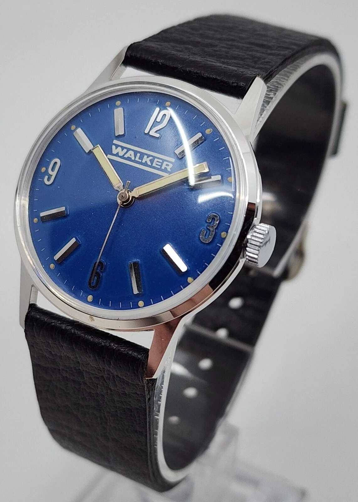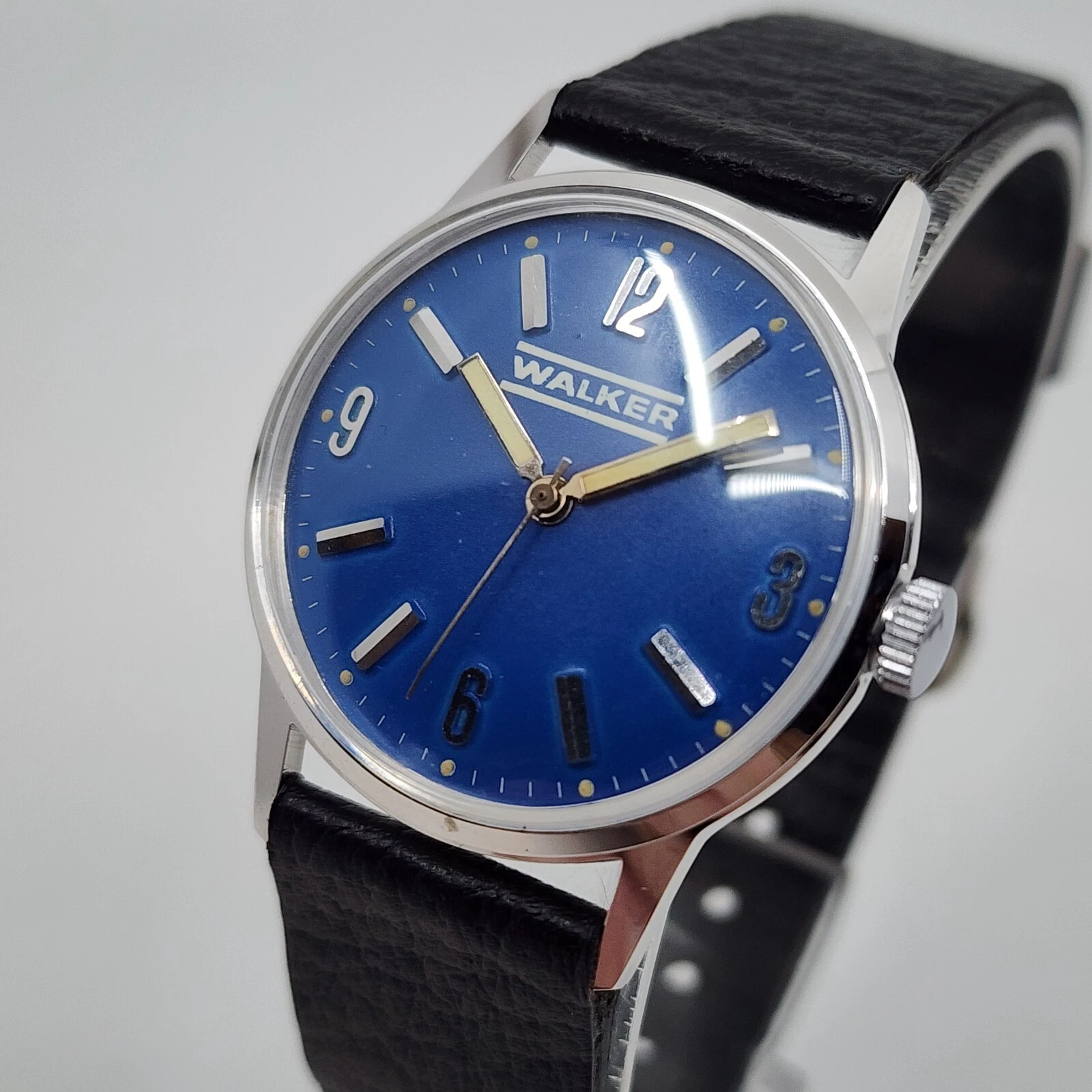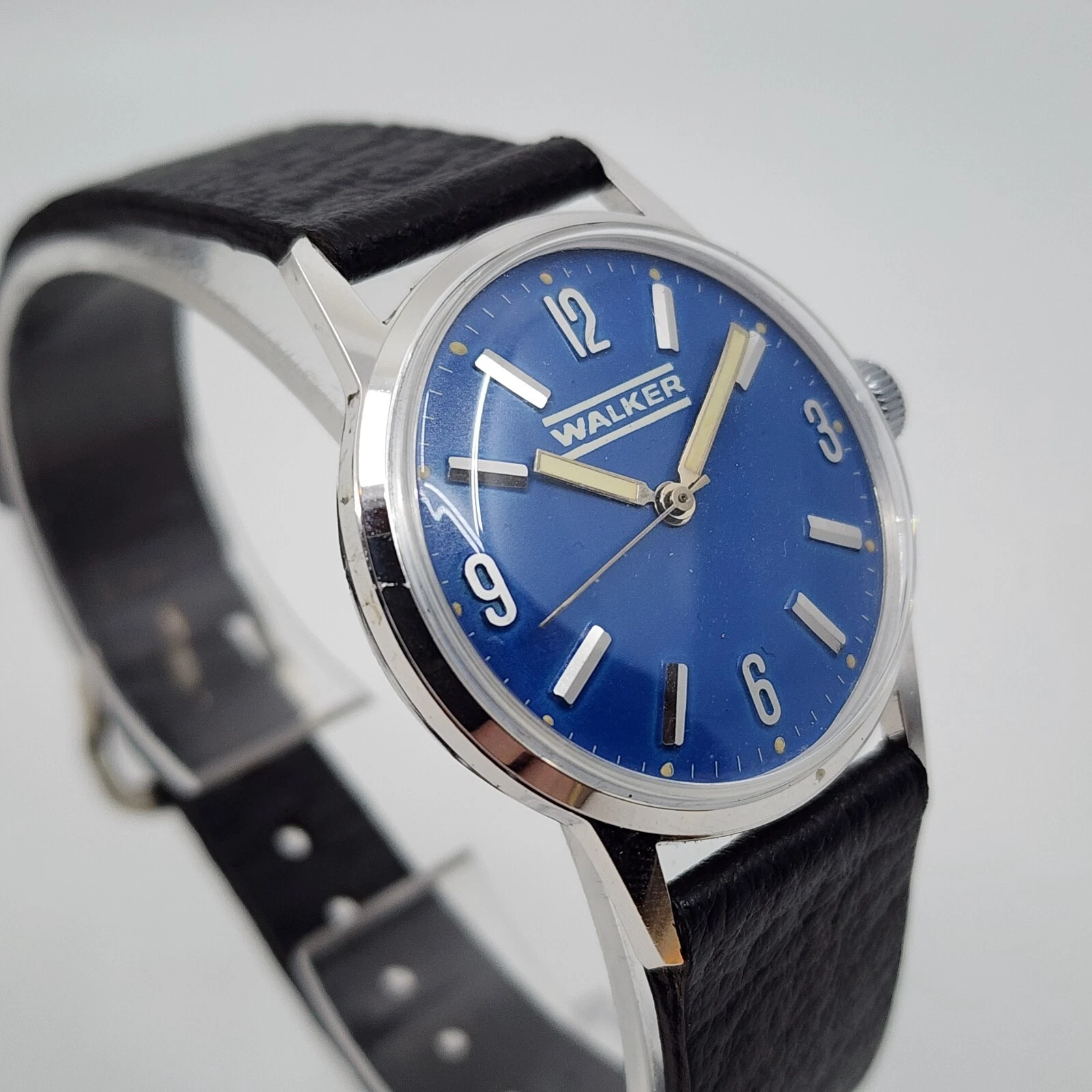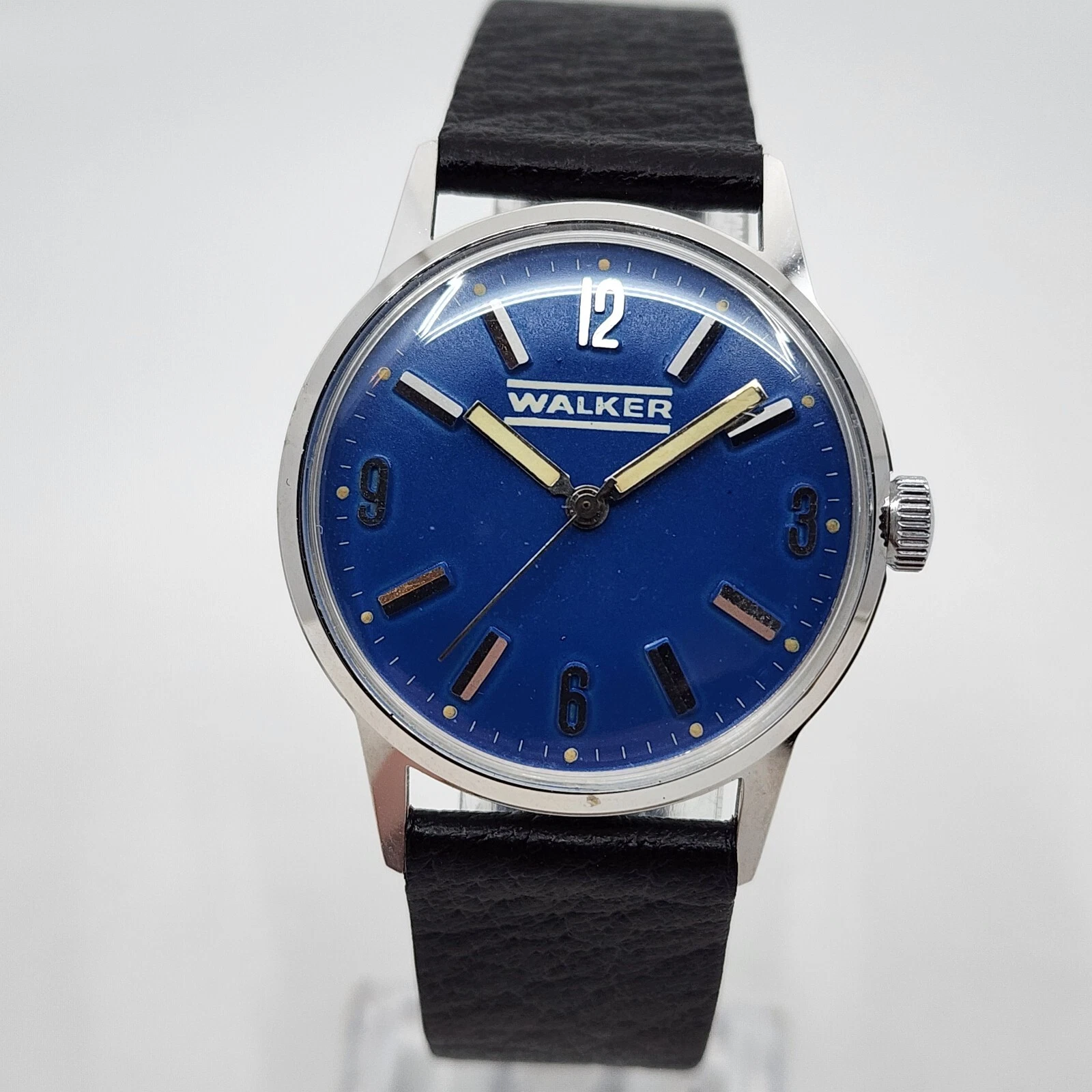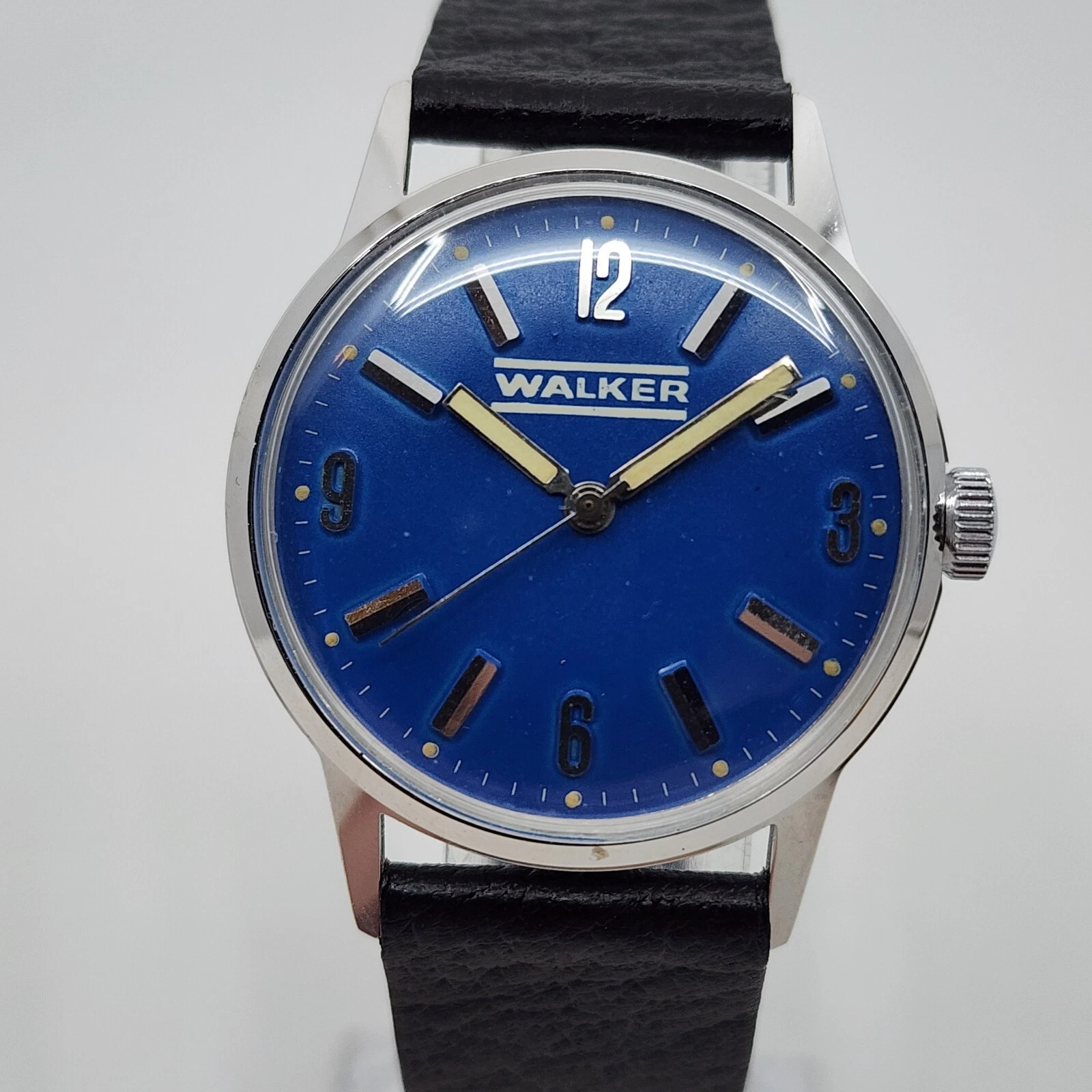 Vintage Walker manual Wind Blue Dial Steel Mechanical Watch Running Great