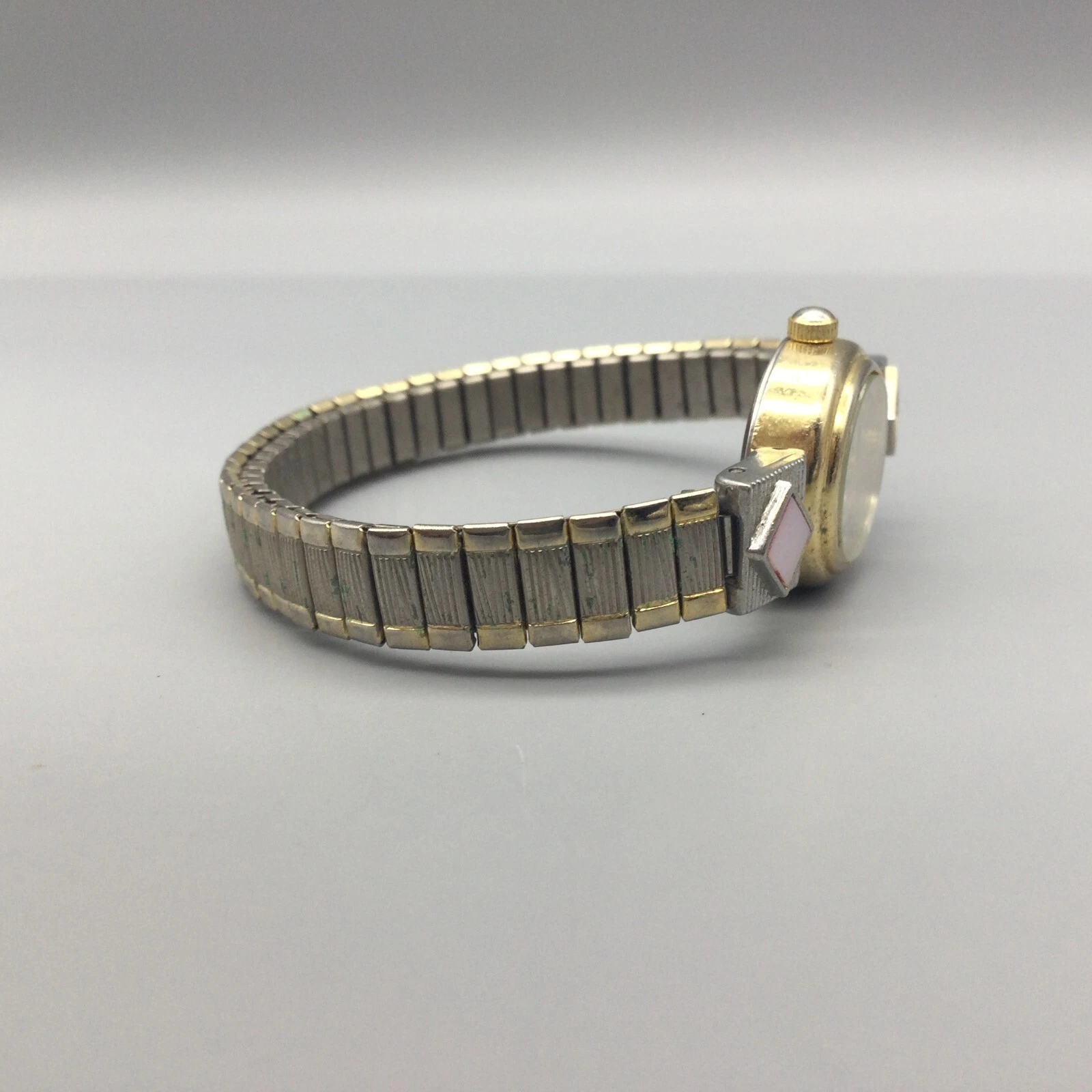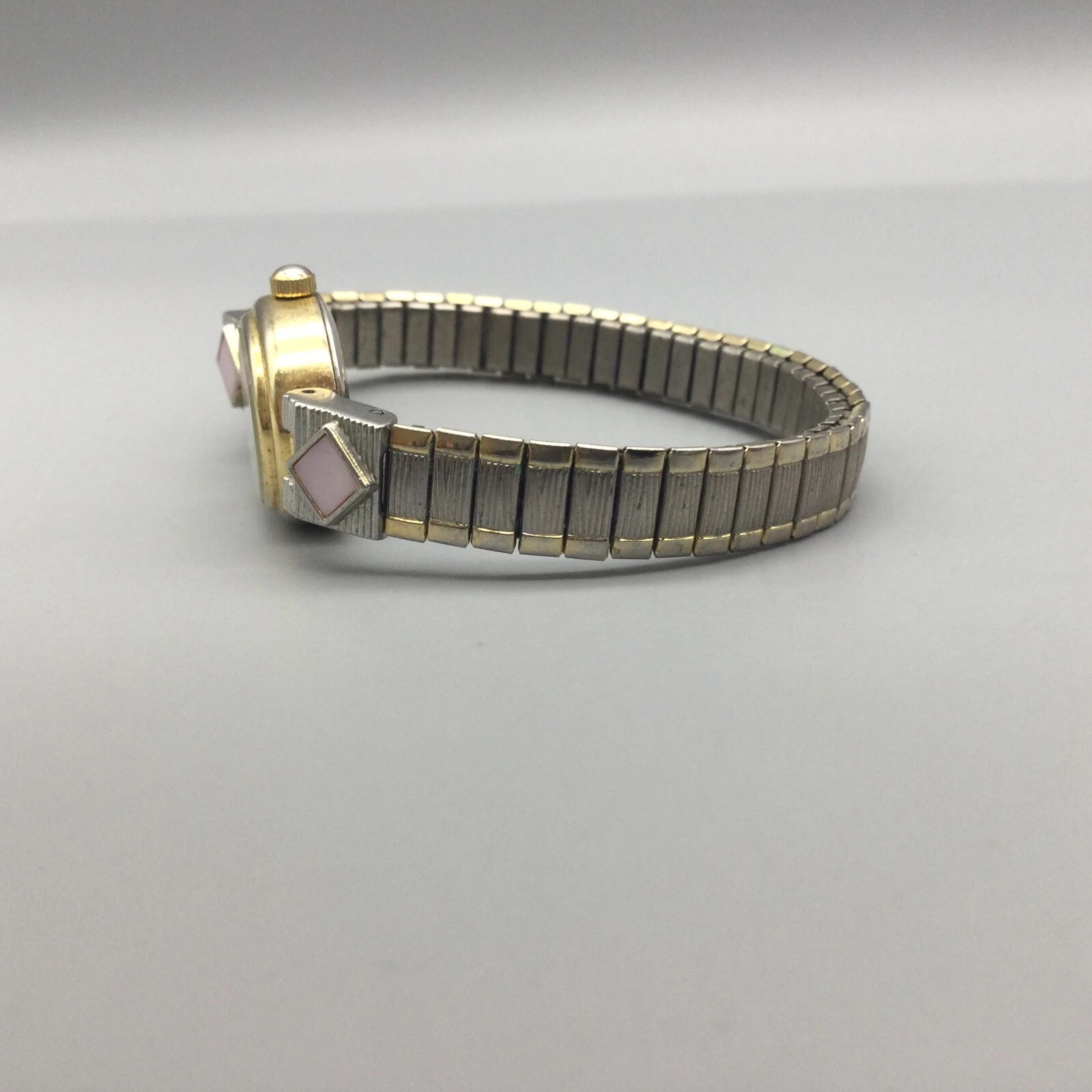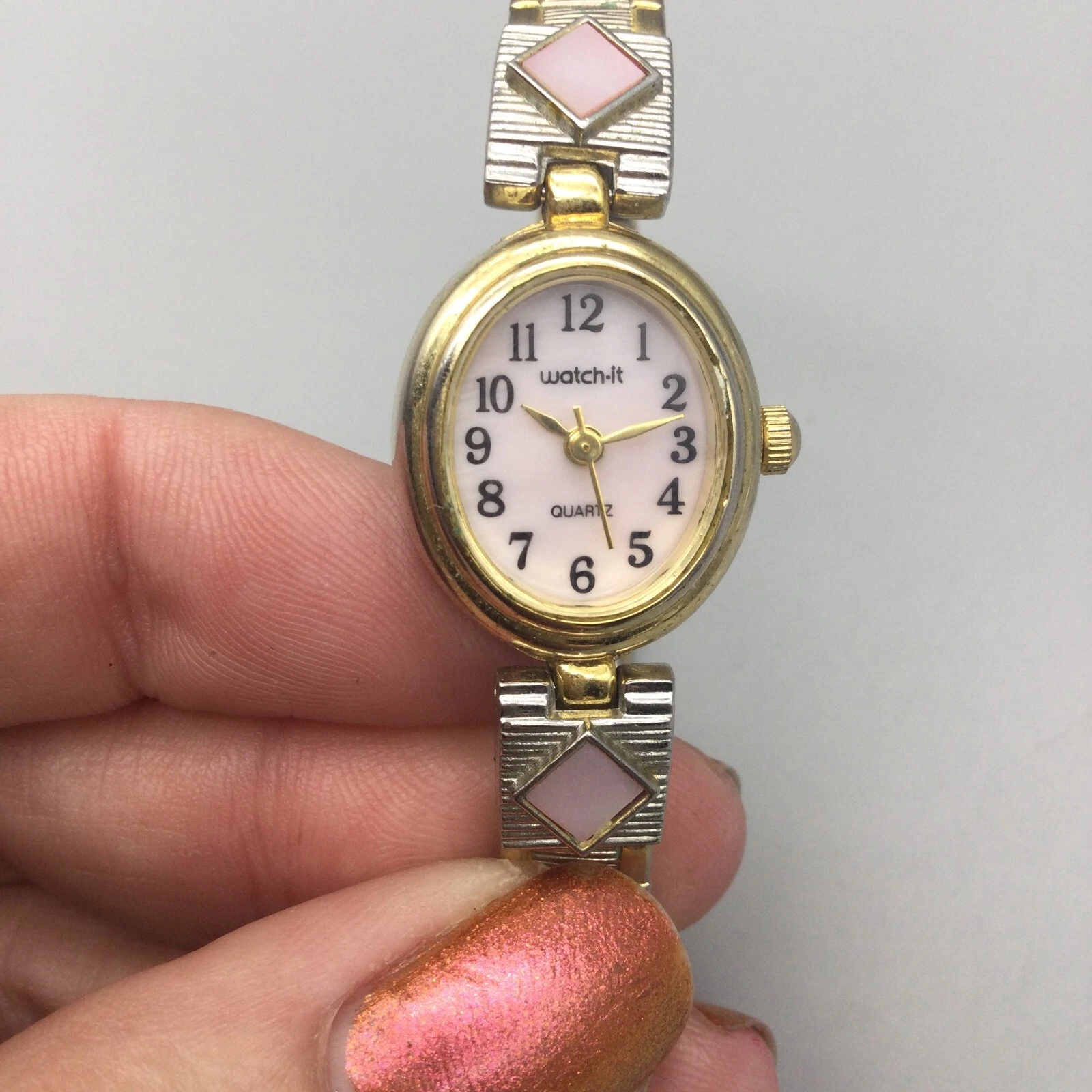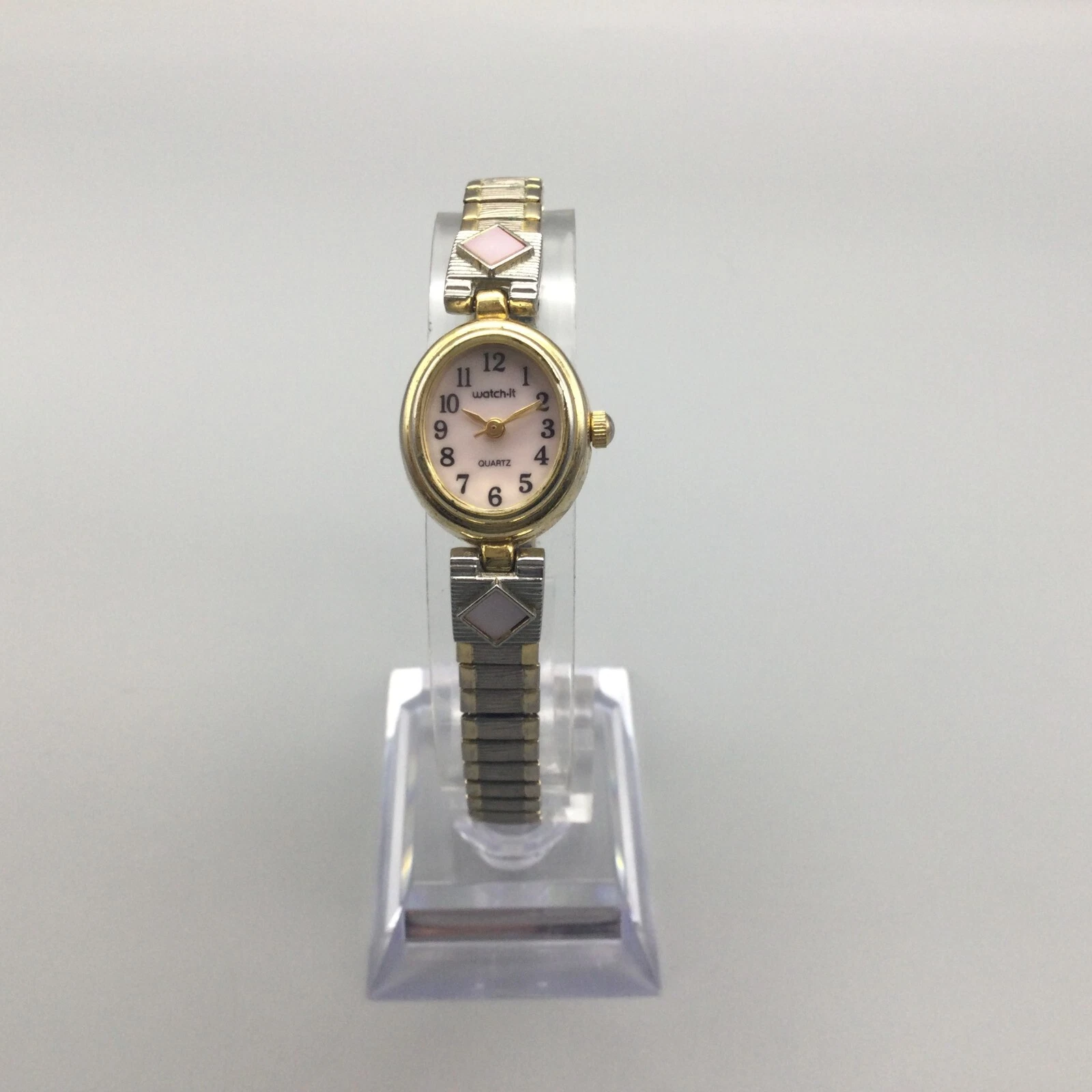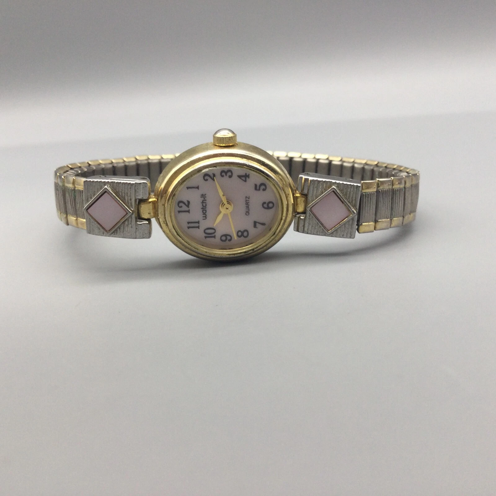 Vtg Watch It Watch Women 18mm Gold Tone Oval Pink MOP Dial Stretch New Battery