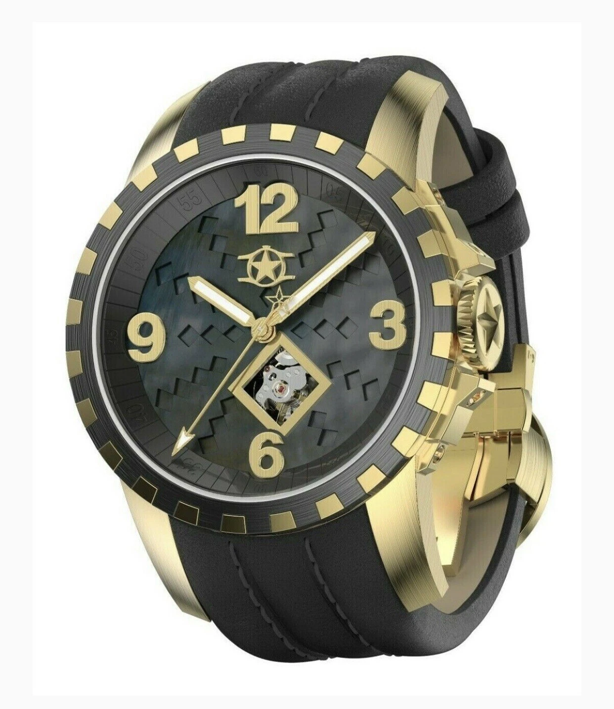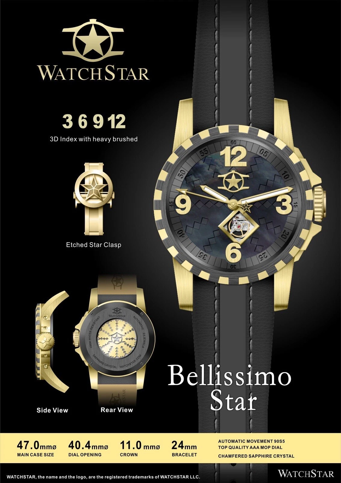 Watchstar Bellisimo Star Black Open Heart Automatic Watch