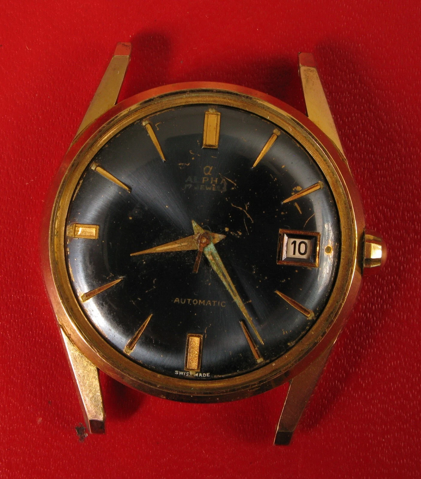 VINTAGE ALPHA GOLD TONE AUTOMATIC MENS WATCH WRISTWATCH !