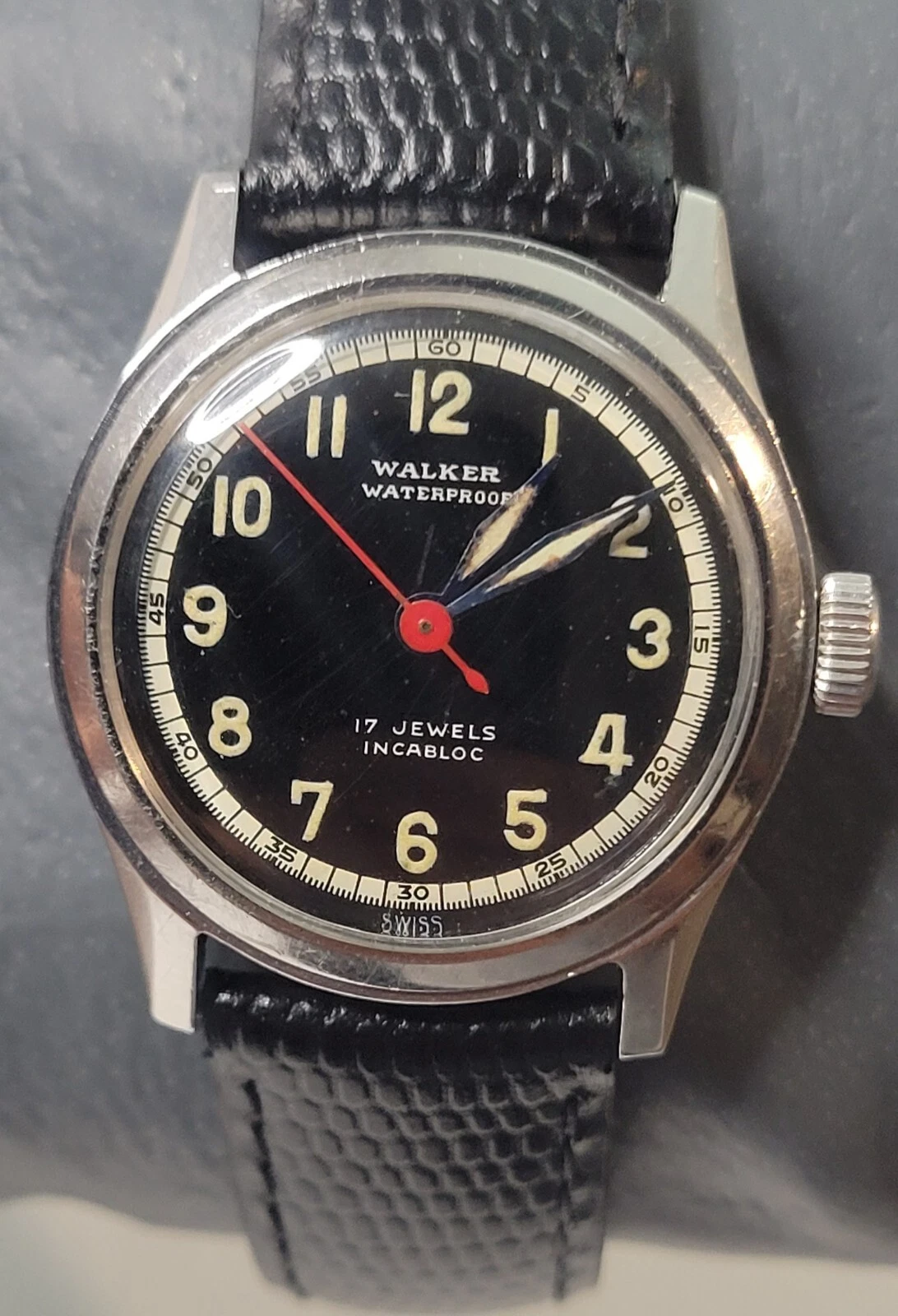 1950's Walker 28mm Military 17 Jewels Swiss Manual Men's Watch Working
