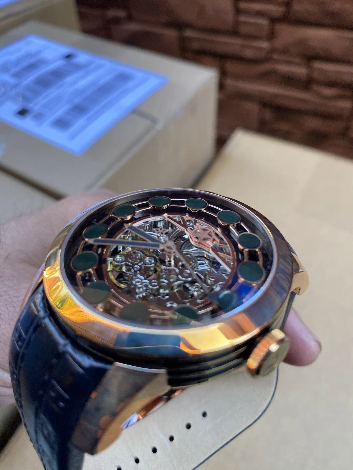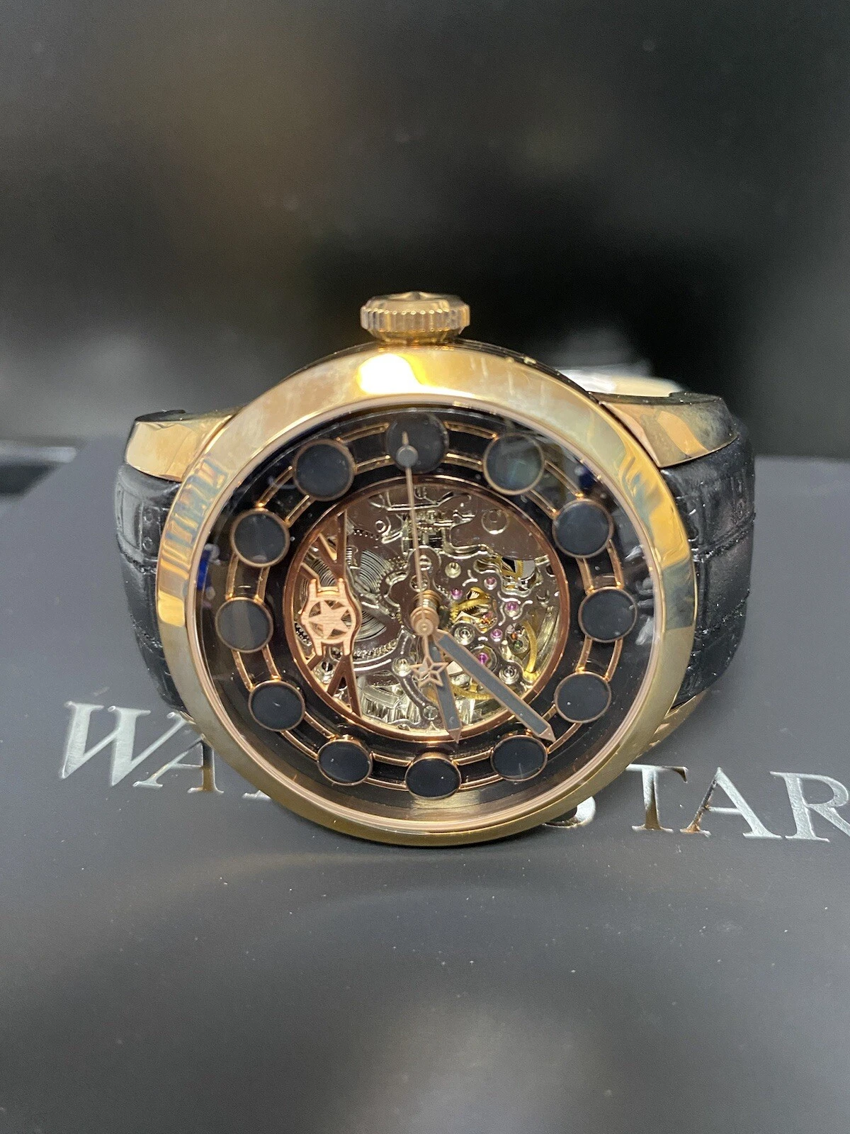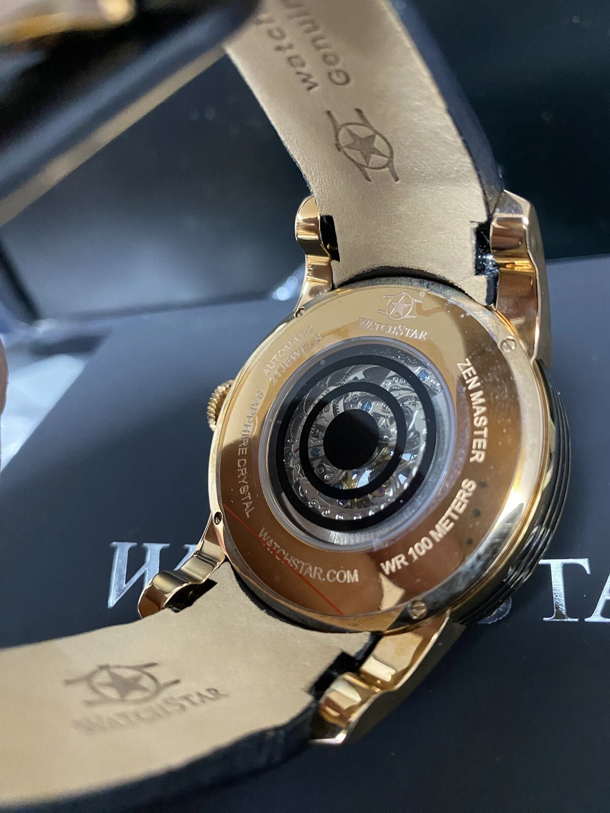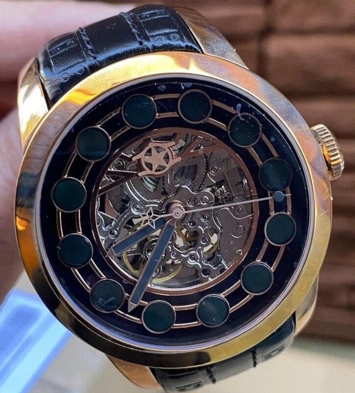 Watchstar Zen Mater Black Automatic Skeleton Leather Rose Case buckle Watch