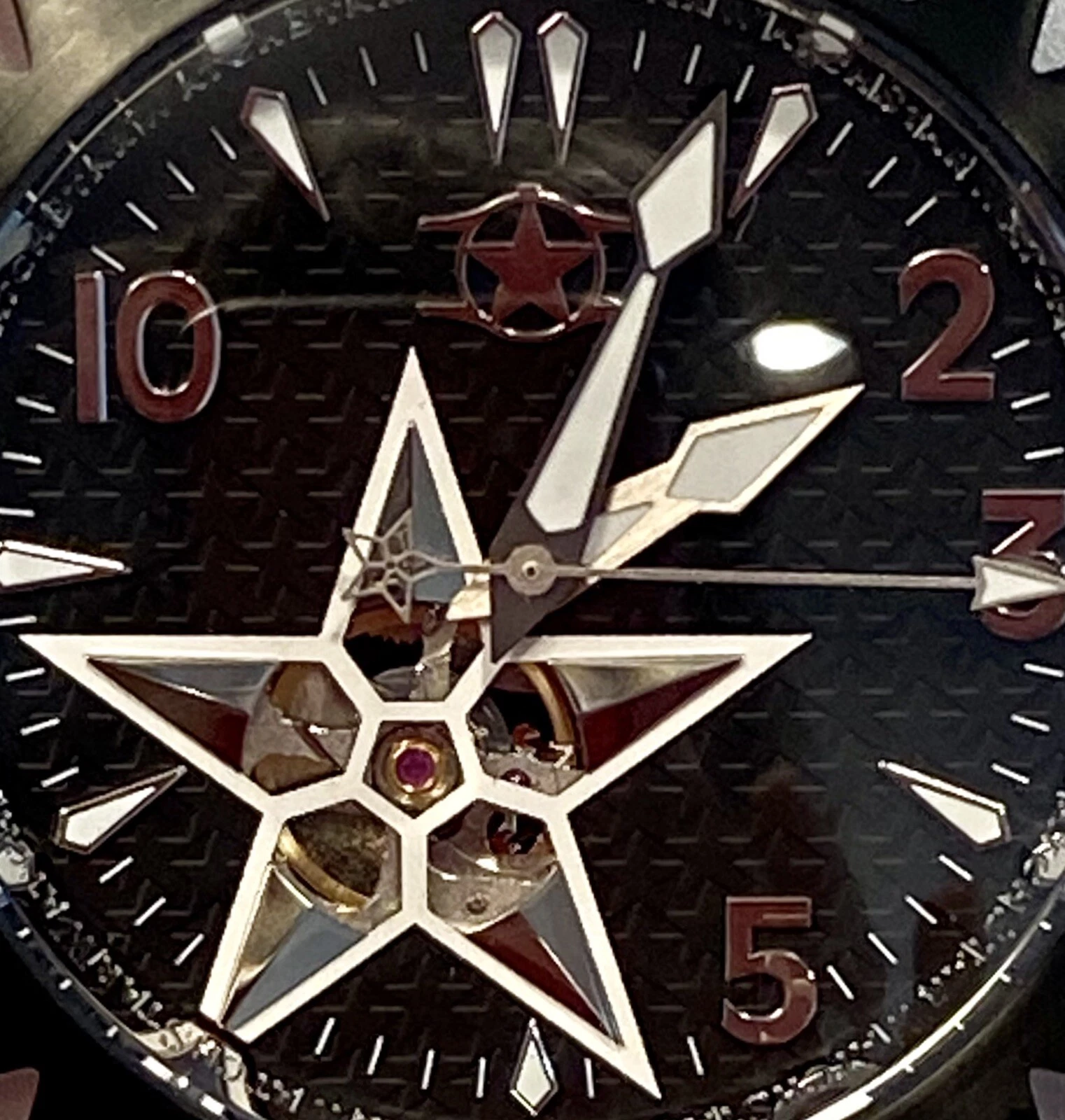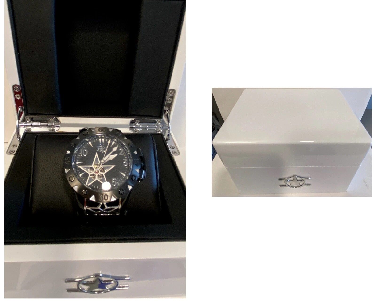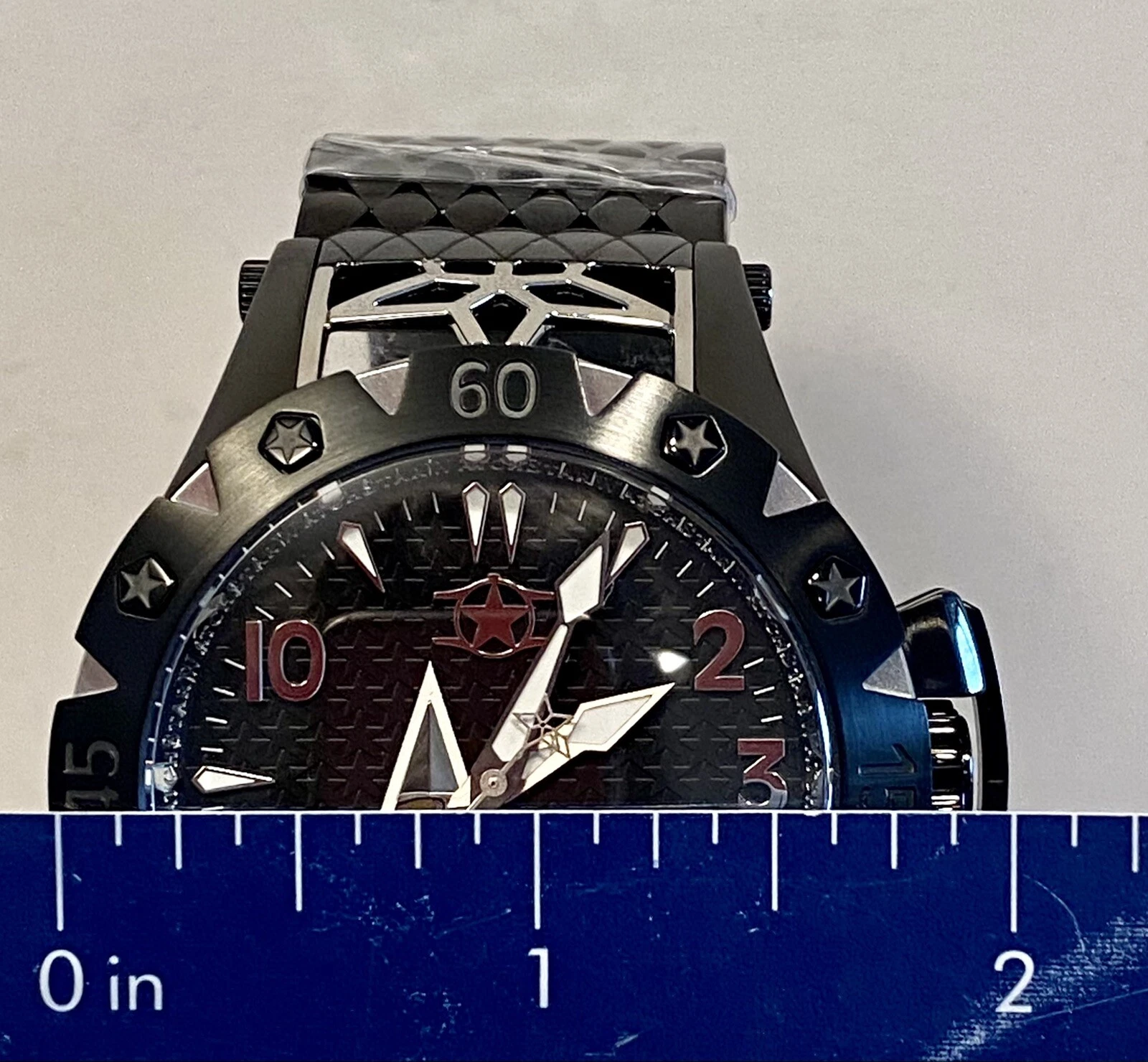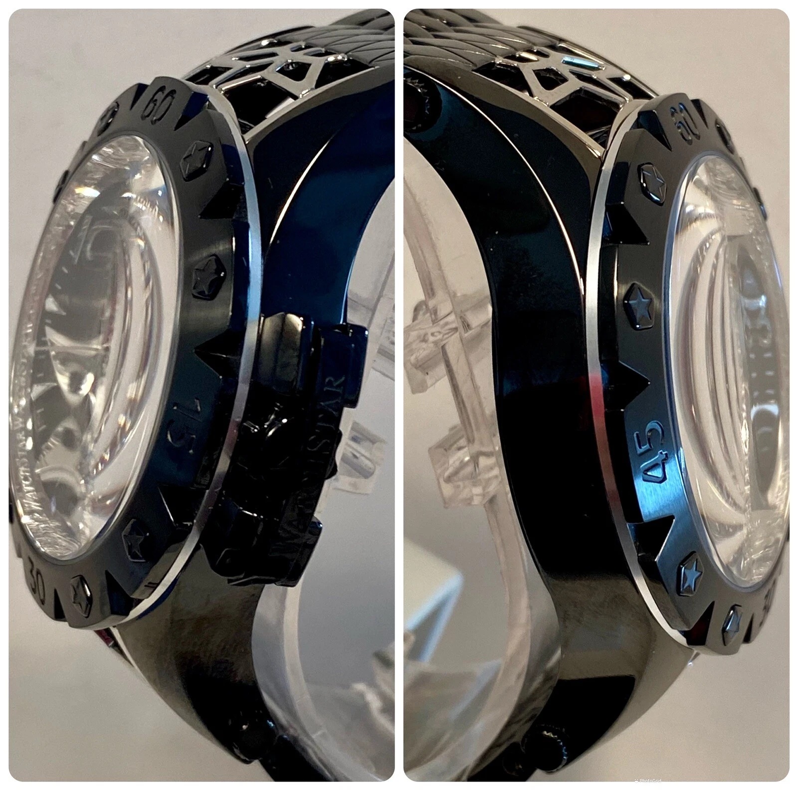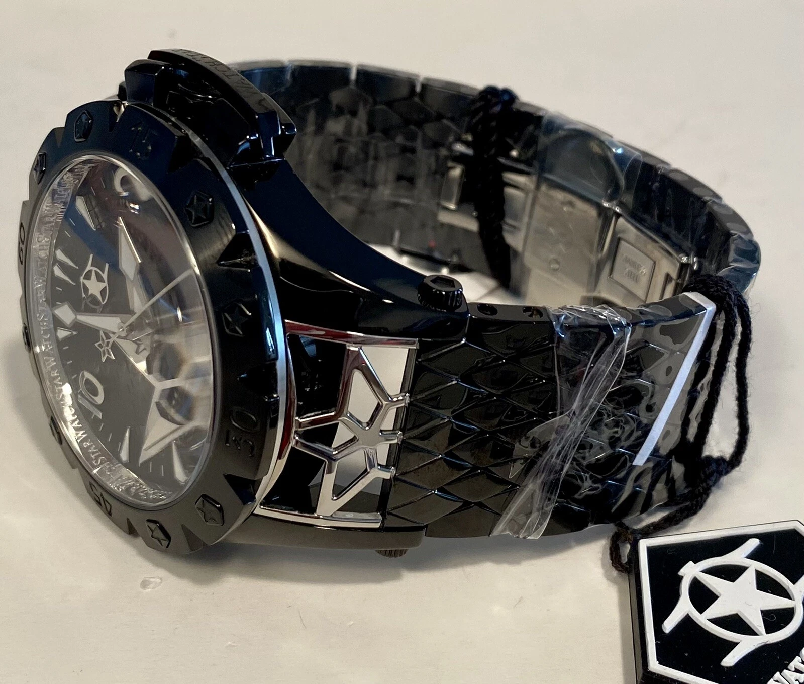 48mm Auto AMERICAN STAR Black 6-Diamond Link Bracelet WatchStar Mens Watch