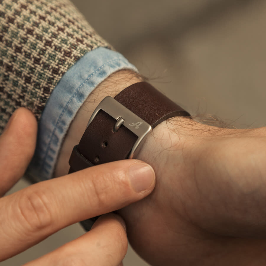 Silver-tone stainless steel case with a brown leather strap. Fixed silver-tone stainless steel bezel. White dial with black hands and Arabic numeral & index hour markers. Minute markers around the outer rim. Dial Type: Analog. Date display at the 3 o'clock position. Automatic movement. Scratch resistant sapphire crystal. Pull / push crown. Transparent case back. Round case shape, case size: 44 mm, case thickness: 12 mm. Band width: 22 mm, band length: 8 inches. Tang clasp. Water resistant at 50 meters / 165 feet. Functions: date, hour, minute, second. Additional Info: hours, minutes and seconds hands. date and second time zone. 1919 Gmt Series. Luxury watch style. Allemano 1919 GMT Automatic White Dial Men's Watch GMT A 1919 SP-PW.