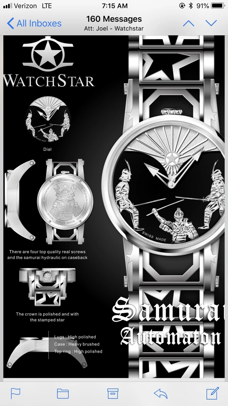 Watchstar Automaton Swiss Made Patented Soprad Animated Samurai Fighter Watch