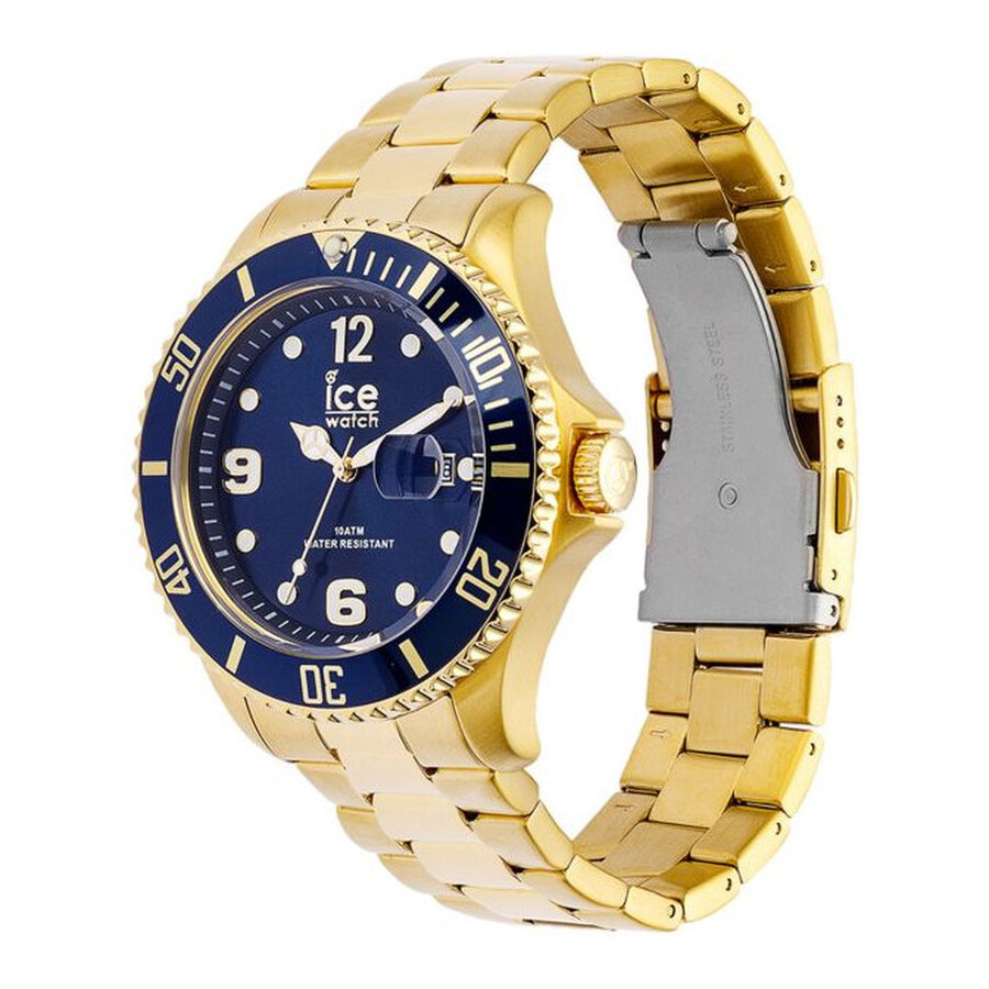 About Open Box Specials: Jomashop offers deep discounts on open box items (used item with some signs of wear) with our money back guarantee. Jomashop.com will provide a full refund minus the cost of shipping for the item if you are not satisfied with your open box purchase. You have 10 days from when your order is shipped out of our warehouse to request a RMA (Return Merchandise Authorization). Jomashop's watch warranty will still apply from your purchase date. Some conditions may apply. Read our full return policy <a href="https://help.jomashop.com/hc/en-us/articles/11923053295771-Returns-and-Exchanges-Policy/" target ="_blank">here.</a><p><p><b><font color="red">Open Box / Irregular Issue: Scratches on bracelet.</font></b><p> Gold-tone stainless steel case and bracelet. Uni-directional rotating gold-tone stainless steel with an inlaid blue ring bezel. Blue dial with luminous gold-tone hands and dot hour markers. Arabic numeral markers at the 6, 9 and 12 o'clock positions. Minute markers around the outer rim. Dial Type: Analog. Luminescent hands and markers. Date display at the 3 o'clock position. Quartz movement. Scratch resistant mineral crystal. Pull / push crown. Solid case back. Round case shape, case size: 44 mm, case thickness: 13 mm. Band width: 20 mm. Fold over clasp with a safety release. Water resistant at 100 meters / 330 feet. Functions: date, hour, minute, second. Sport watch style. Watch label: Japan Movt. Ice Quartz Blue Dial Men's Watch 016762.