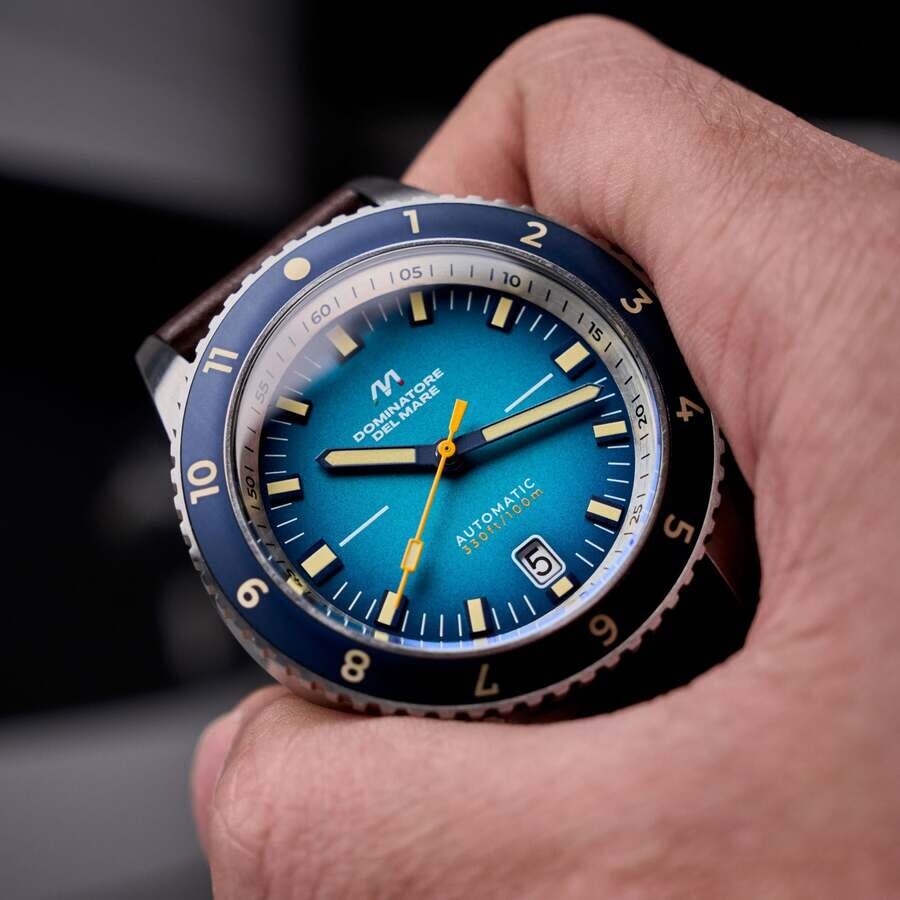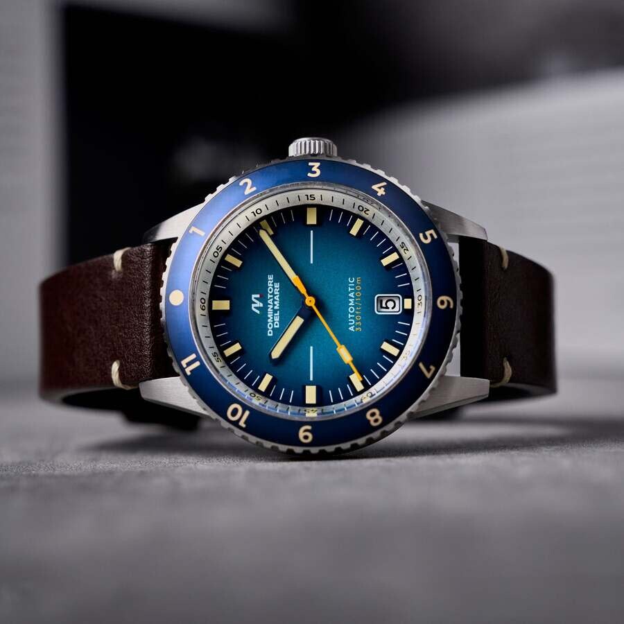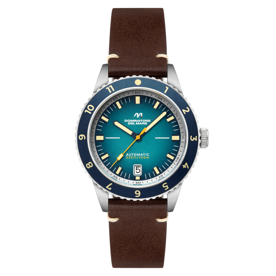 Take a piece of Tropea wherever you go with the Tropea Automatic. Featuring a Seiko NH35 automatic movement, this watch also pays tribute to the remarkable natural and historical landscape of Tropea. With a 42mm stainless steel case and 10 ATM water resistance, it's perfect for dressing up or enjoying water activities. Silver-tone stainless steel case with a brown leather strap. Uni-directional rotating blue stainless steel bezel. Blue dial with blue hands and index hour markers. Minute markers around the outer rim. Dial Type: Analog. Luminescent hands and markers. Date display at the 6 o'clock position. Seiko - NH35 automatic movement. Scratch resistant mineral crystal. Pull / push crown. Solid case back. Round case shape, case size: 42 mm, case thickness: 14 mm. Band width: 20 mm, band length: 8 inches. Buckle clasp. Water resistant at 100 meters / 330 feet. Functions: date, hour, minute, second. Tropea Series. Casual watch style. Dominatore Del Mare Tropea Blue Dial Men's Watch DD-8026-01.