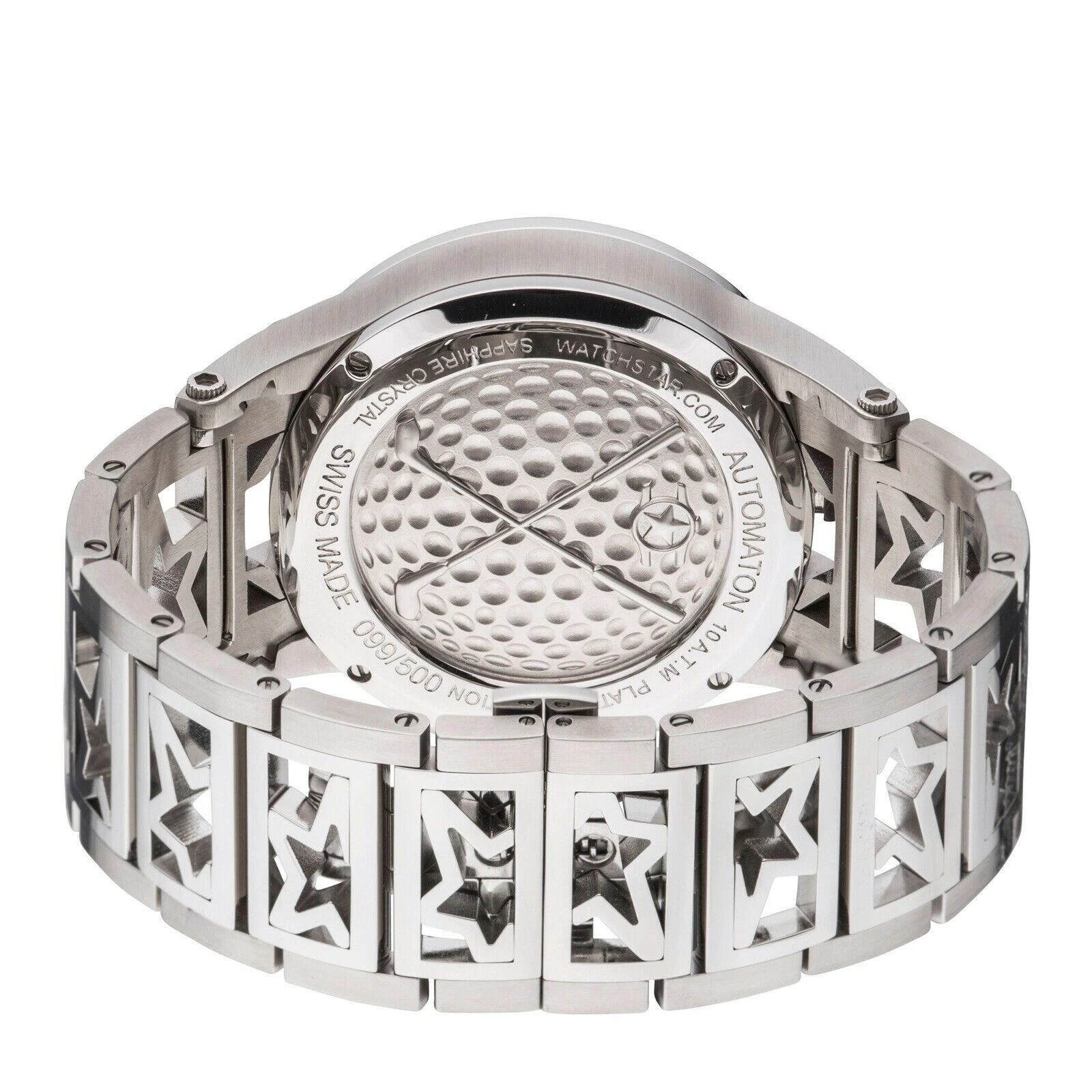 Watchstar Automaton Swiss Made Animated Dial PLatinum Finish 48mm Golf Watch