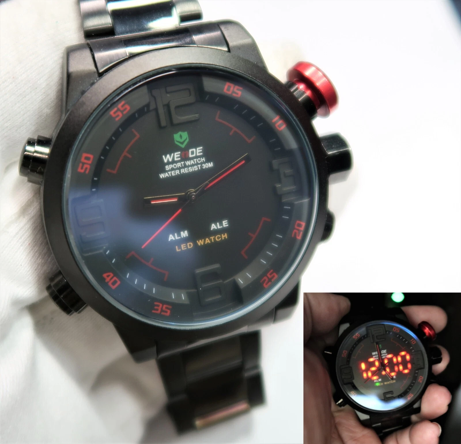 WEIDE, Unique Analog-Digital,RED LED Backlit Dial,BIG MIB NEW MENS WATCH,R15-04