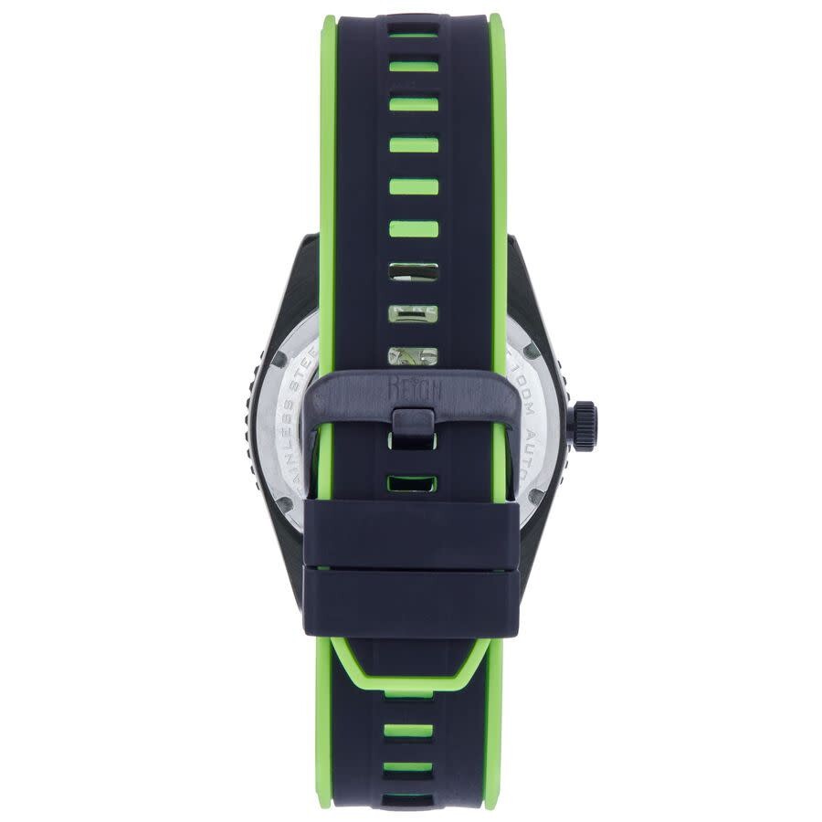 Band Color: Black Rubber; Band Width: 22mm near case; 22mm near clasp/buckle; Bezel Color: Black; Case: Black + Circle-Shaped; Case Finish: Brushed + Stainless Steel; Case Thickness: 14mm; Case Width: 42mm; 45mm with Crown; Clasp / Buckle: Strap Buckle; Dial: Black + Analog; Hand Color: Silver; Movement: Japanese + Automatic; Time Zones: Single; Water Resistance: 10 ATM.