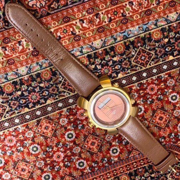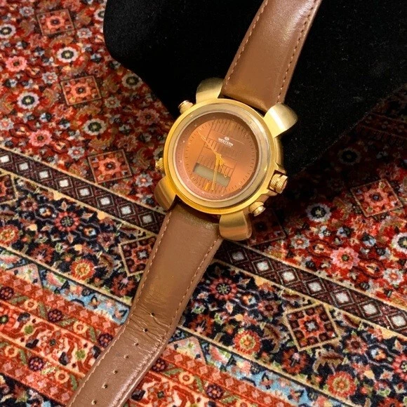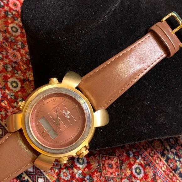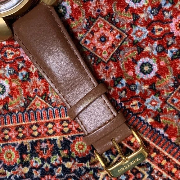 Men's leather band Vintage gold case western watch with genuine brown leather