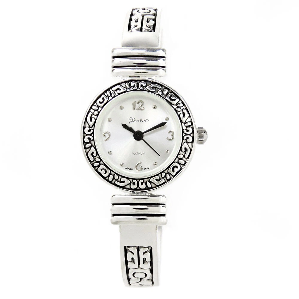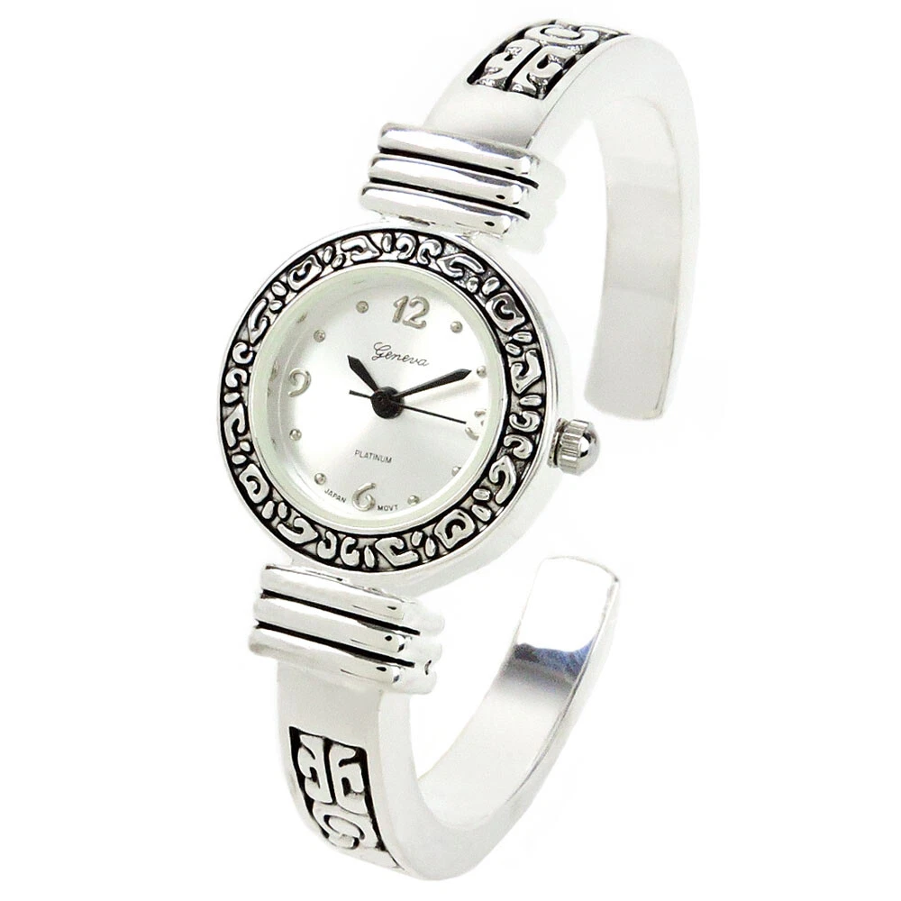 Silver Western Style Decorated Bangle Cuff Watch for Women
