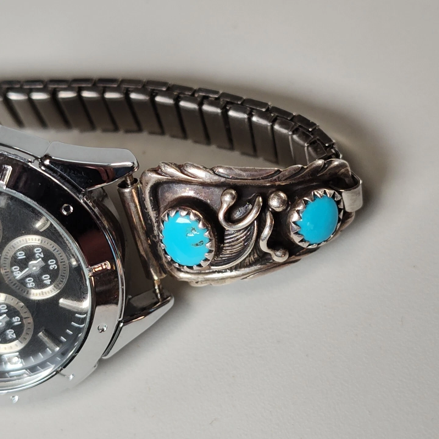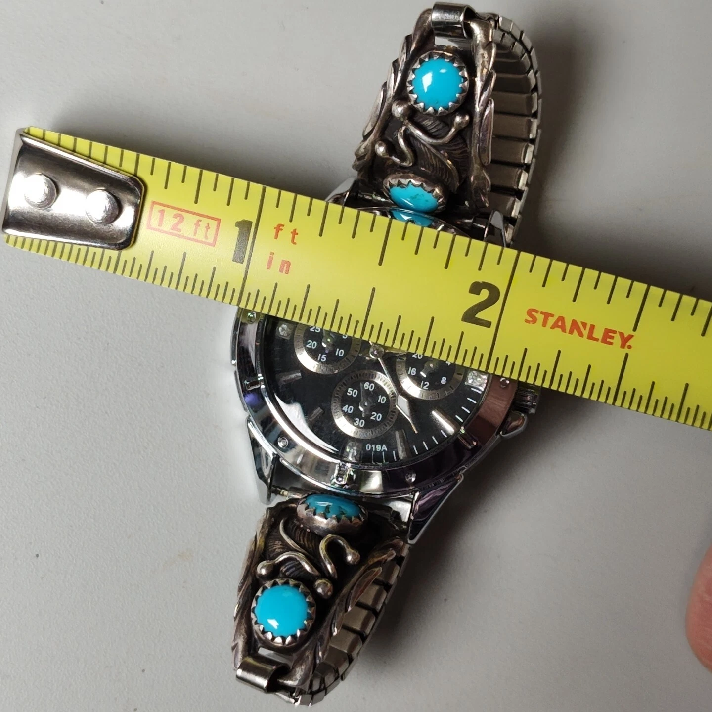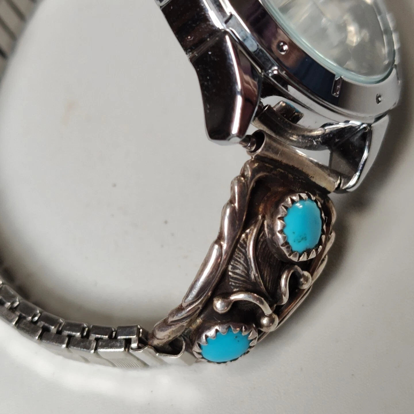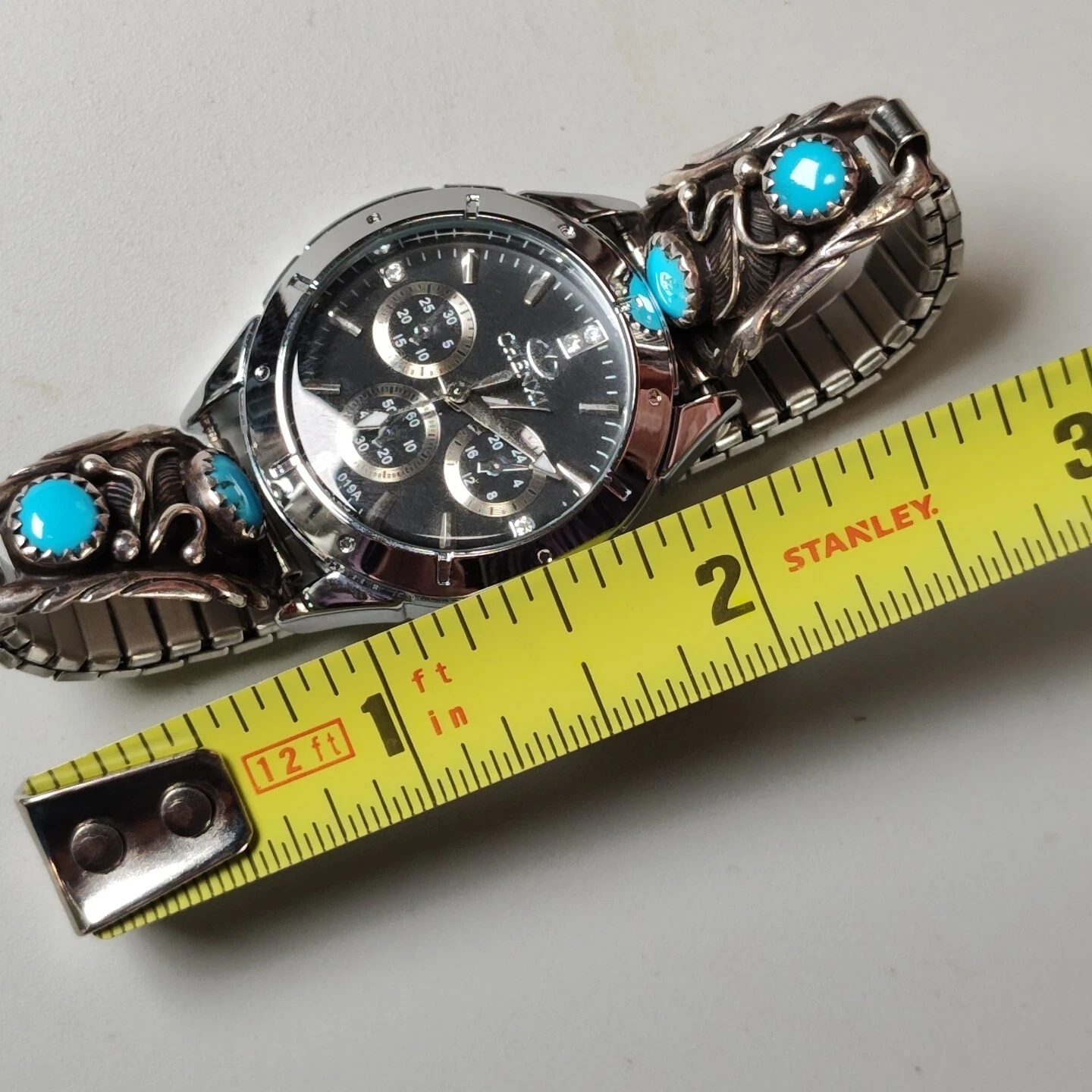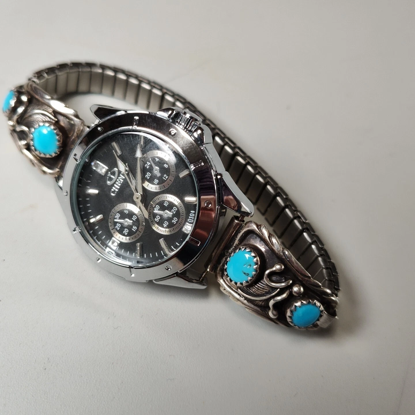 Western Sliver Watch Band With Turquoise - Chenxi W/New Battery