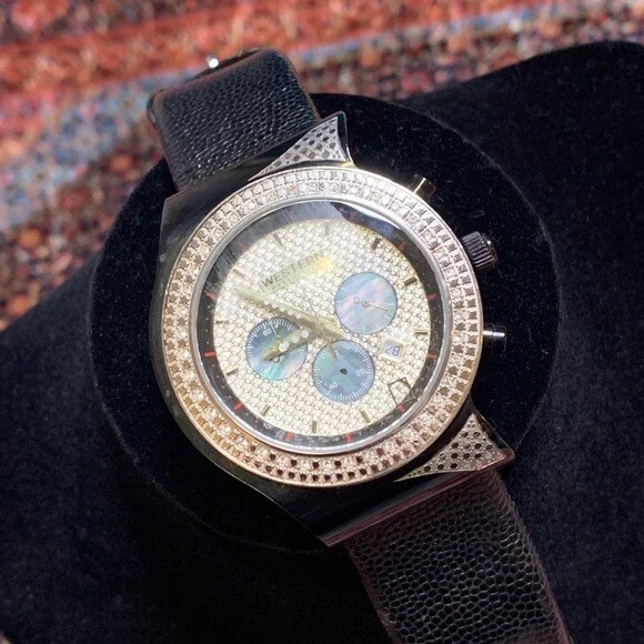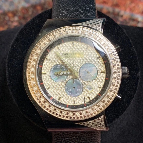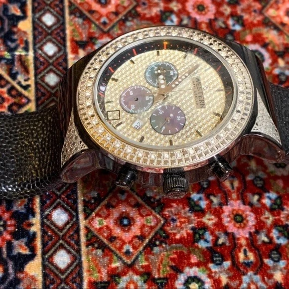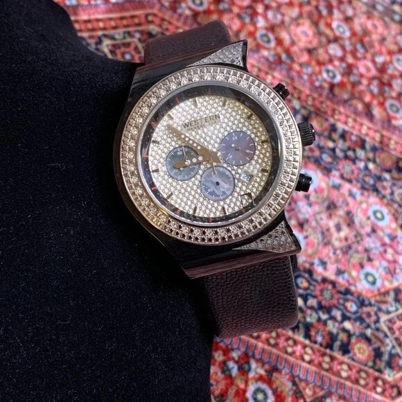 Men's leather band Vintage western watch in stainless steel & rose gold crystal