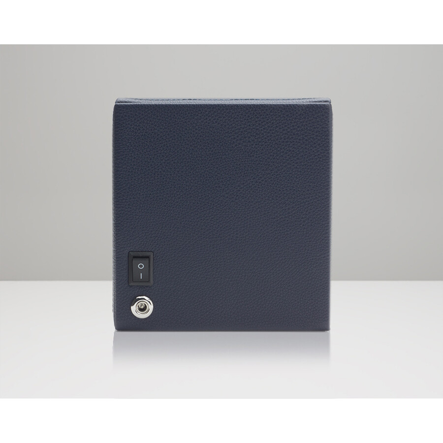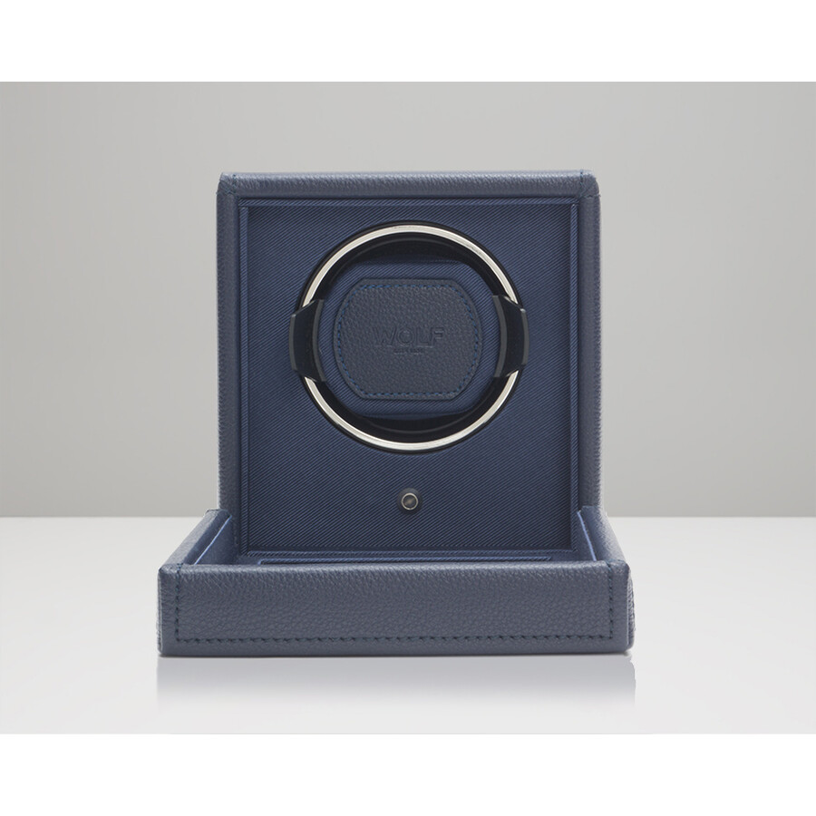 A meticulously engineered watch winder with a sharp design, the Cub includes a navy pebble finish, glass cover, navy grosgrain faceplate, chrome finished hardware and a single winding module. Dimensions: 5.25'W X 6'D X 5.75'H Features: Rotation: 10 second start delay, 900 TPD (Turns Per Day) bi-directionally, patented rotation programs - Intermittent rotation with pause and sleep phases pre-programmed.