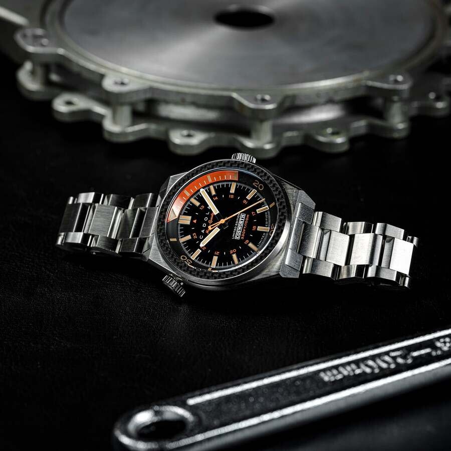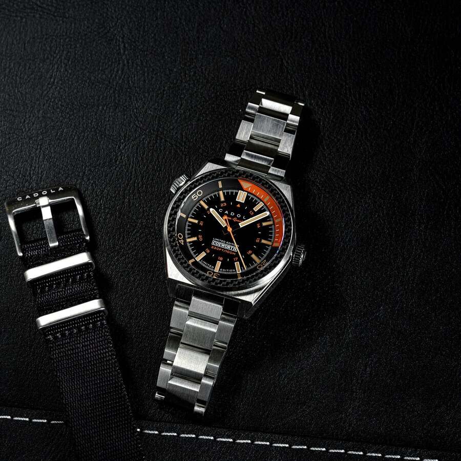 The Costin series from the Cosworth x Cadola range is a sparkling collection of timepieces that inhabit both the spirit and the precision of race-bound watches. This meca-quartz limited edition features the unique Seiko TMI built hybrid movement which delivers the best of quartz precision with the sweep charm and character of a mechanical timepiece. Silver-tone stainless steel case and bracelet. Fixed black stainless steel bezel. Black dial with silver-tone hands and Arabic numeral & index hour markers. Minute markers around the outer rim. Dial Type: Analog. Luminescent hands and markers. Seiko - VH31 quartz movement. Scratch resistant mineral crystal. Pull / push crown. Solid case back. Round case shape, case size: 42 mm, case thickness: 14 mm. Band width: 20 mm, band length: 8 inches. Fold over clasp with a safety release. Water resistant at 100 meters / 330 feet. Functions: hour, minute, second. Paddock Series. Casual watch style. Cadola Paddock Quartz Black Dial Men's Watch CD-1039-11.