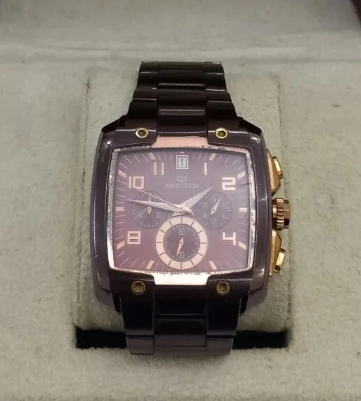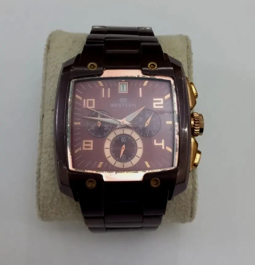 WRISTWATCH⌚ WESTERN Men's Stainless Brown Battery operated water resistant