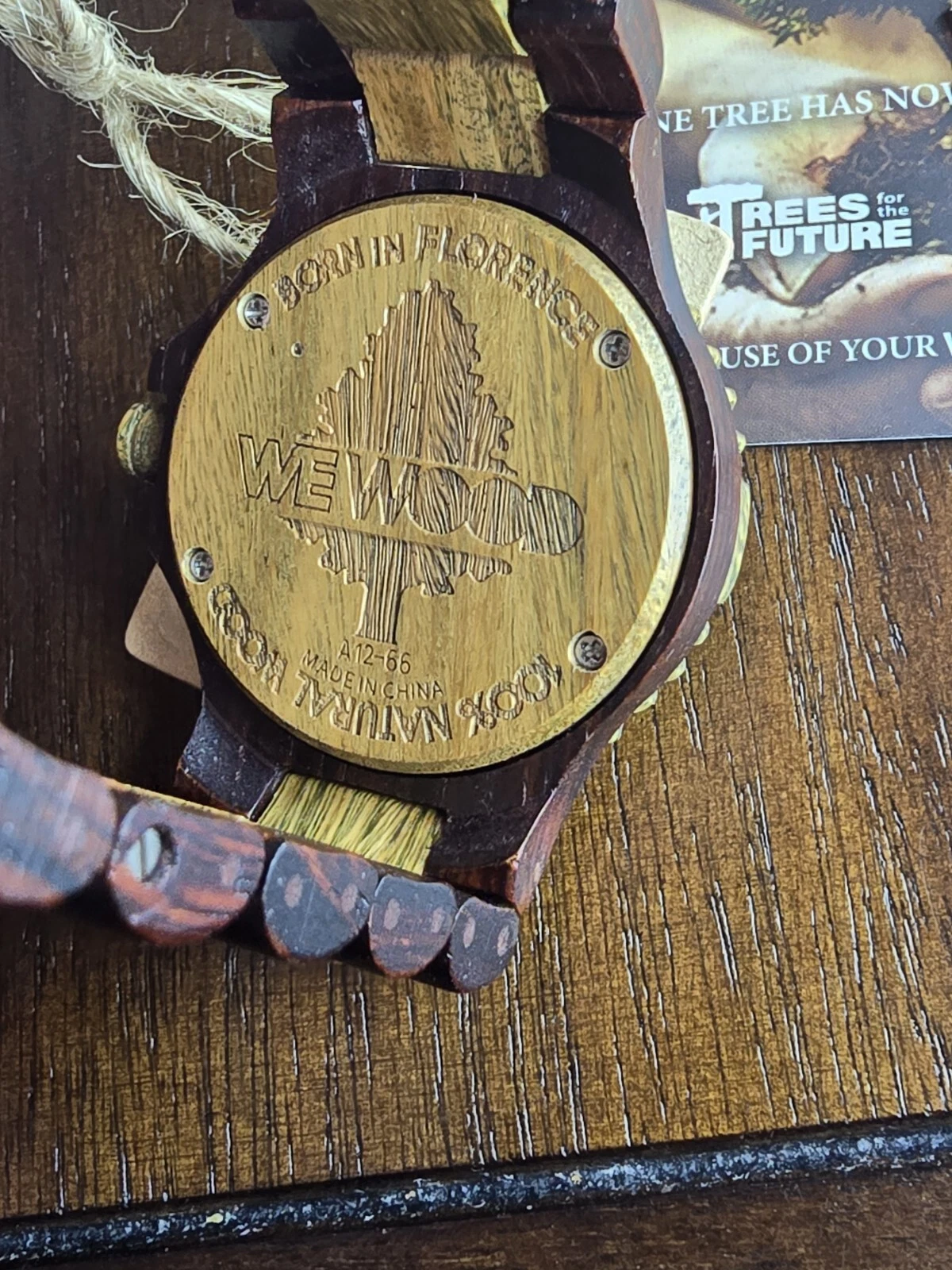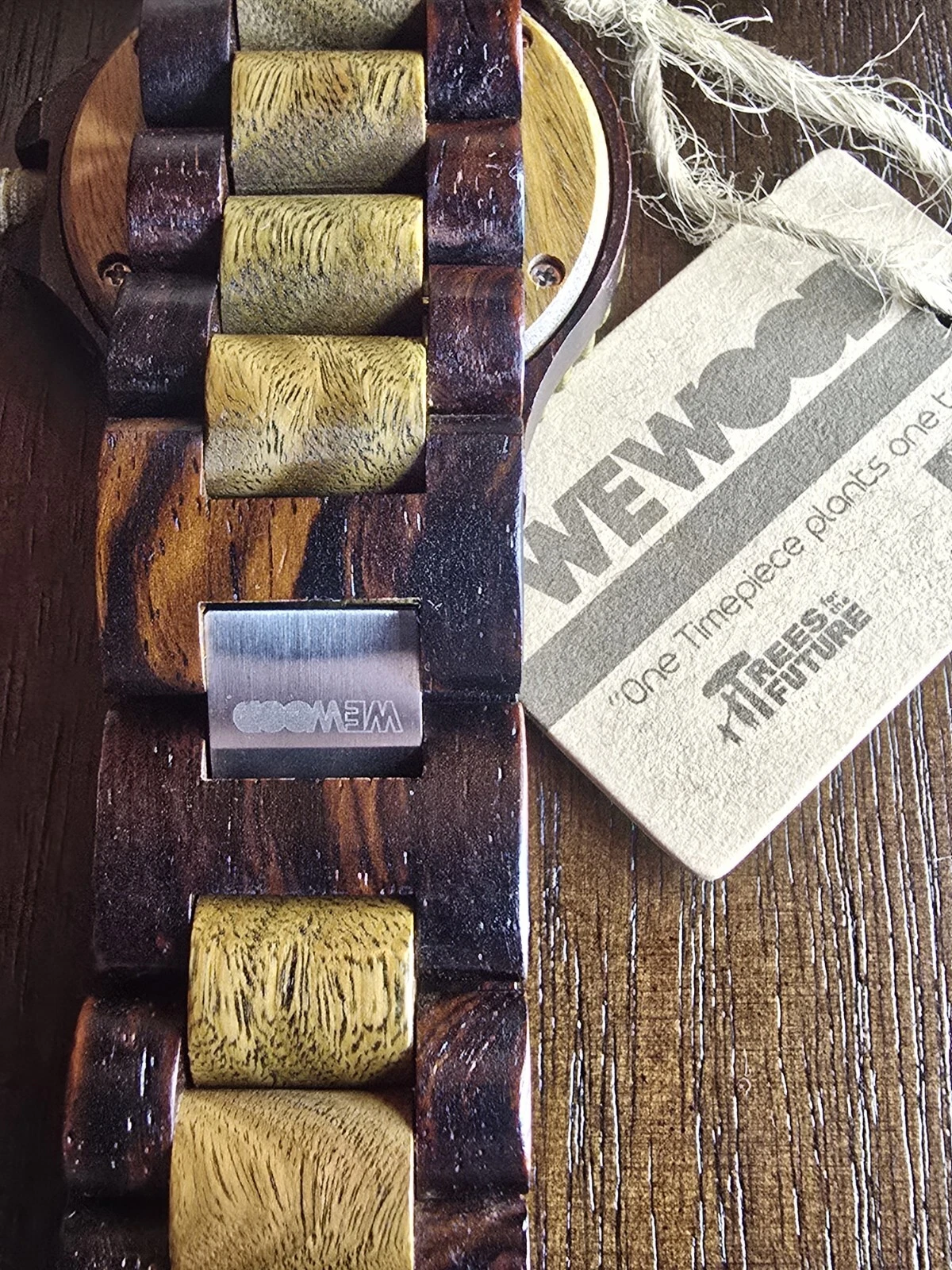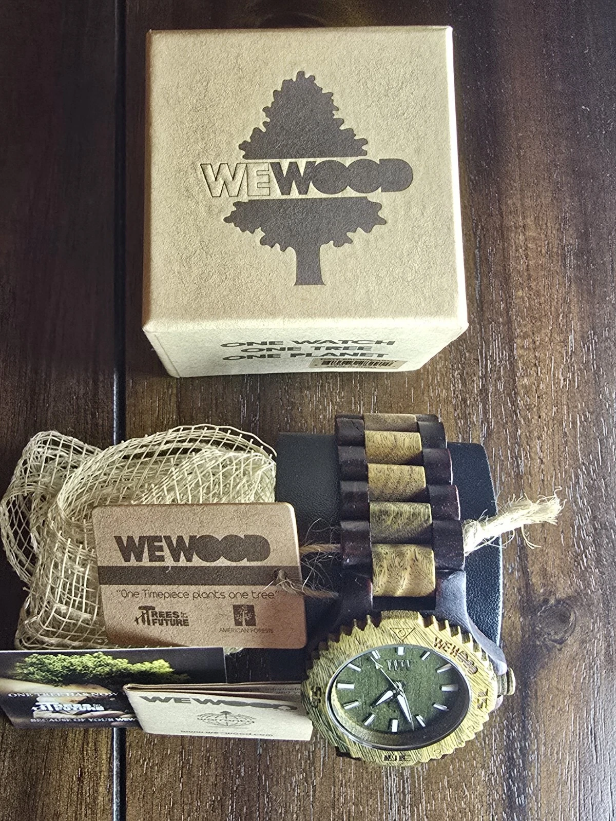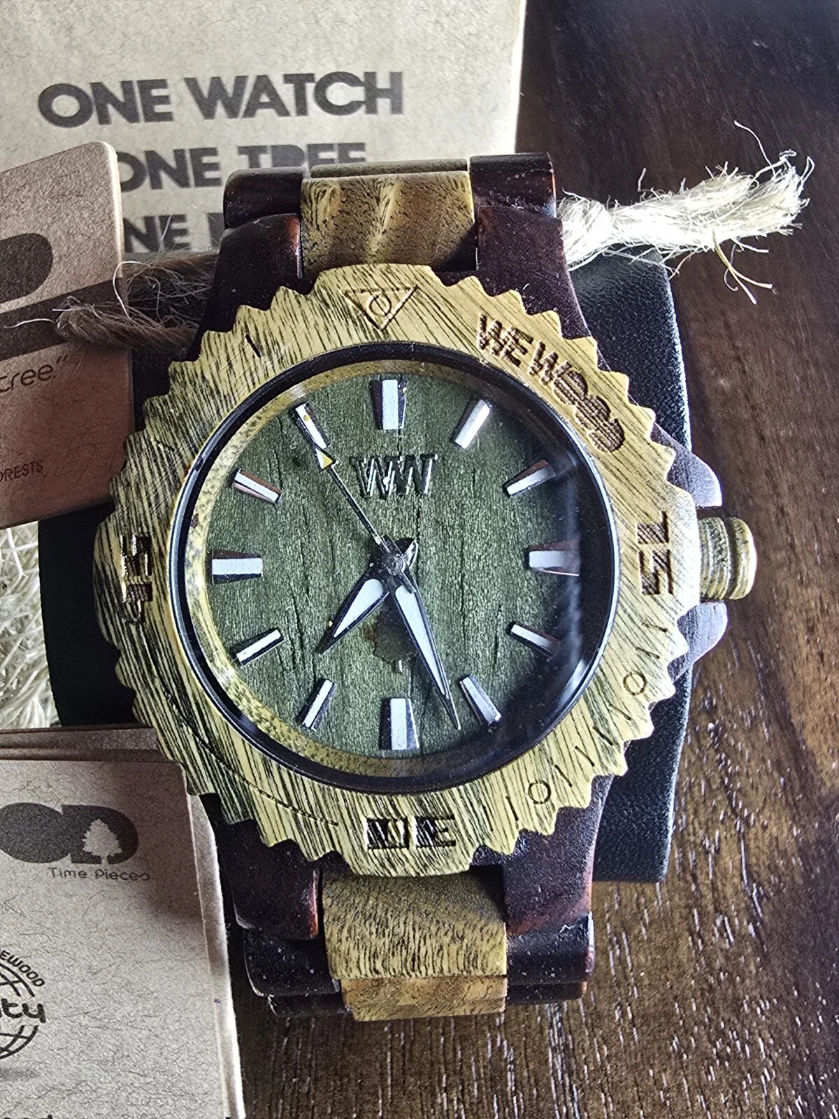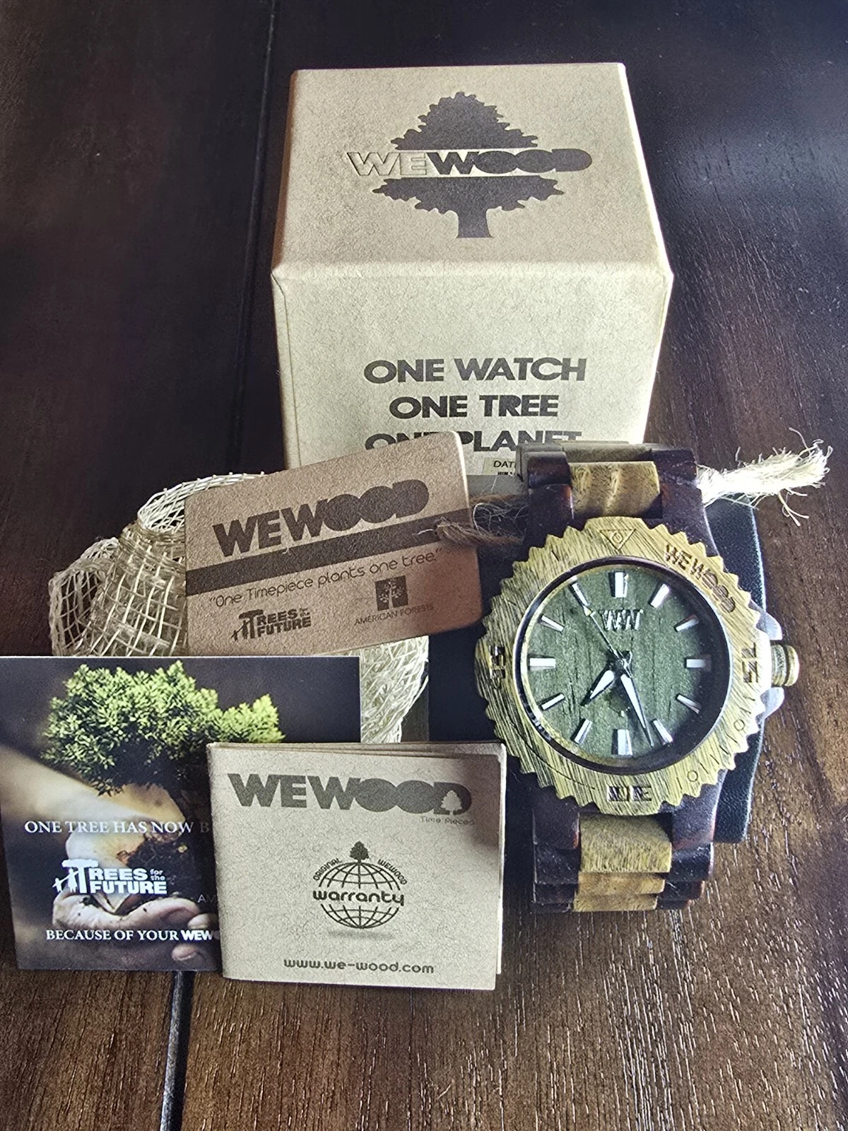 WeWood Watch Men 40mm Green Dial Brown Wood Wooden Day Date Needs Battery