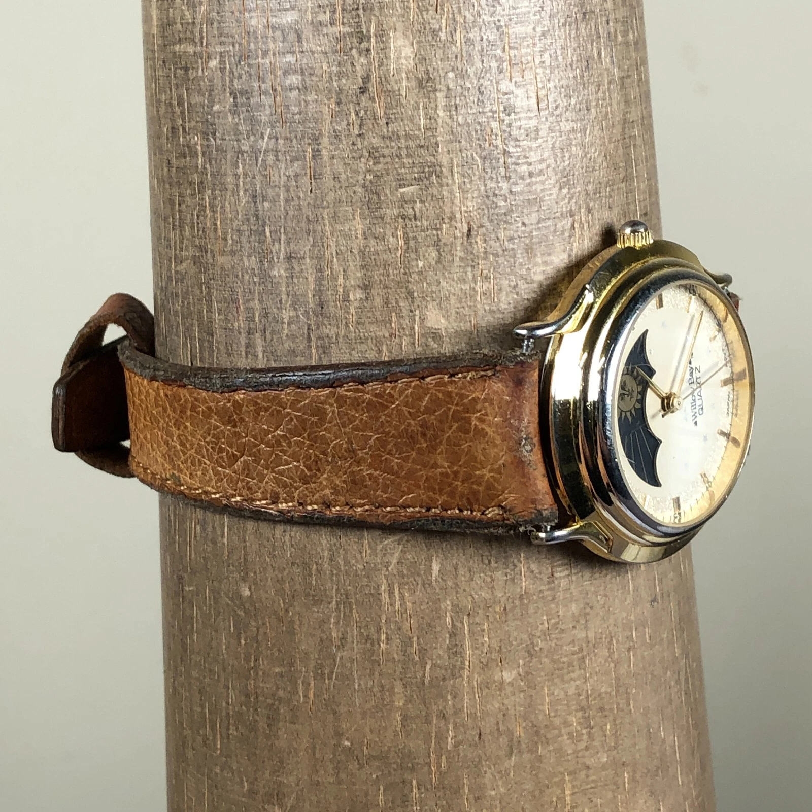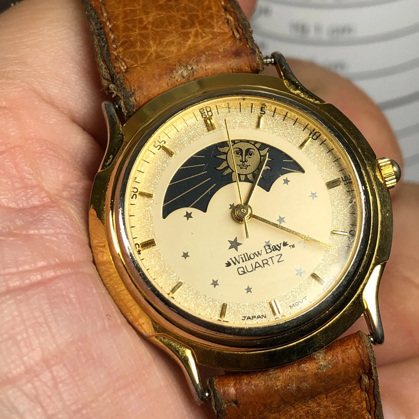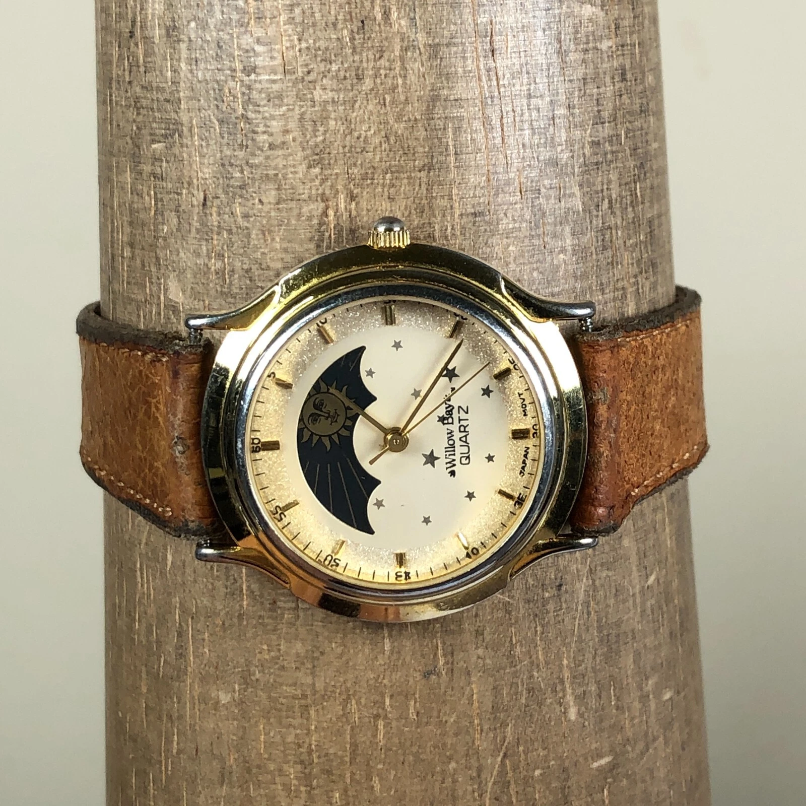 Willow Bay Women Gold Tone Moon Phase Brown Leather 32mm Quartz Watch 7 1/4"