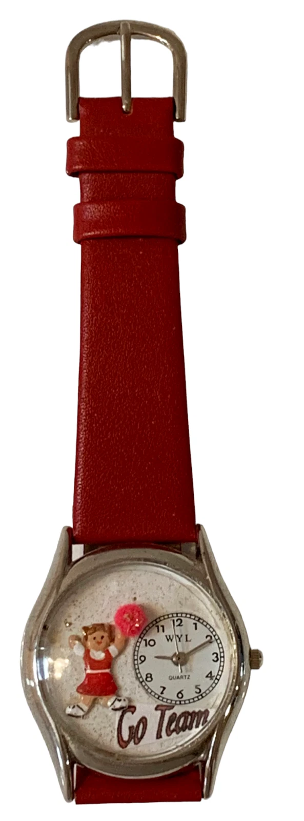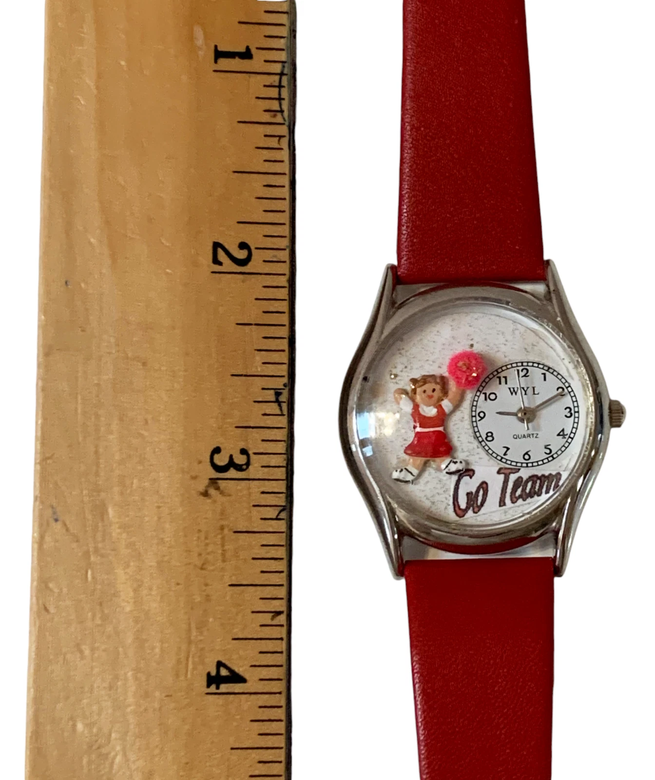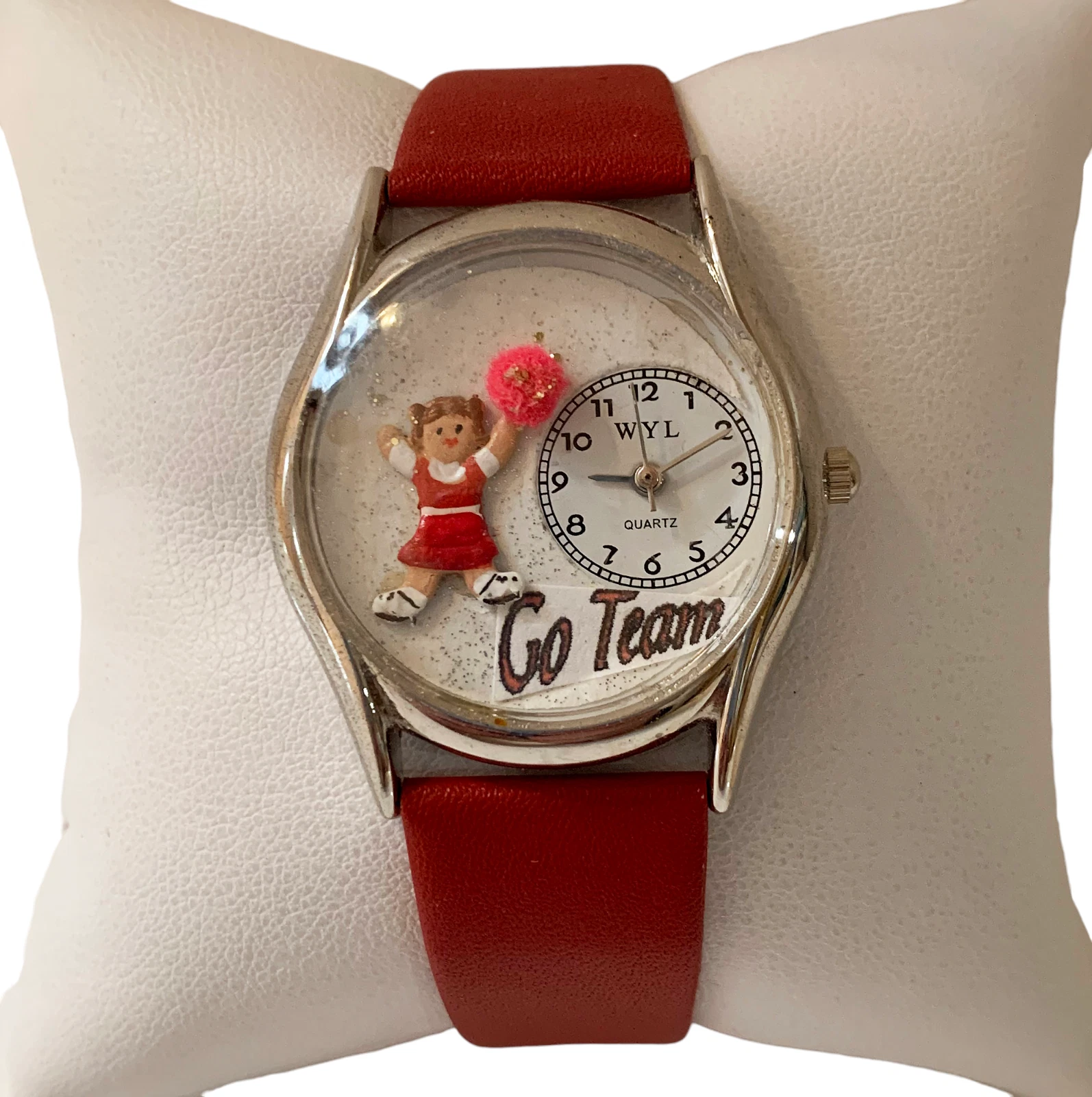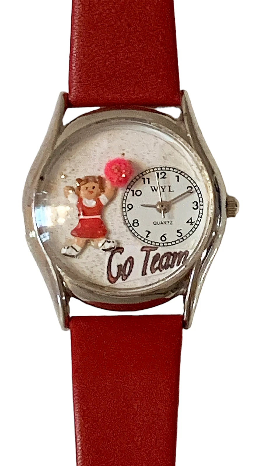 Vintage Whimsical Go Team Cheerleader-Themed Silver Finish Watch w/New Battery