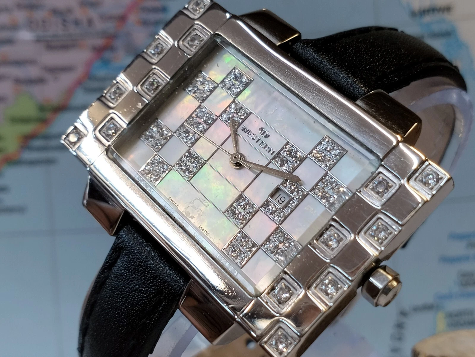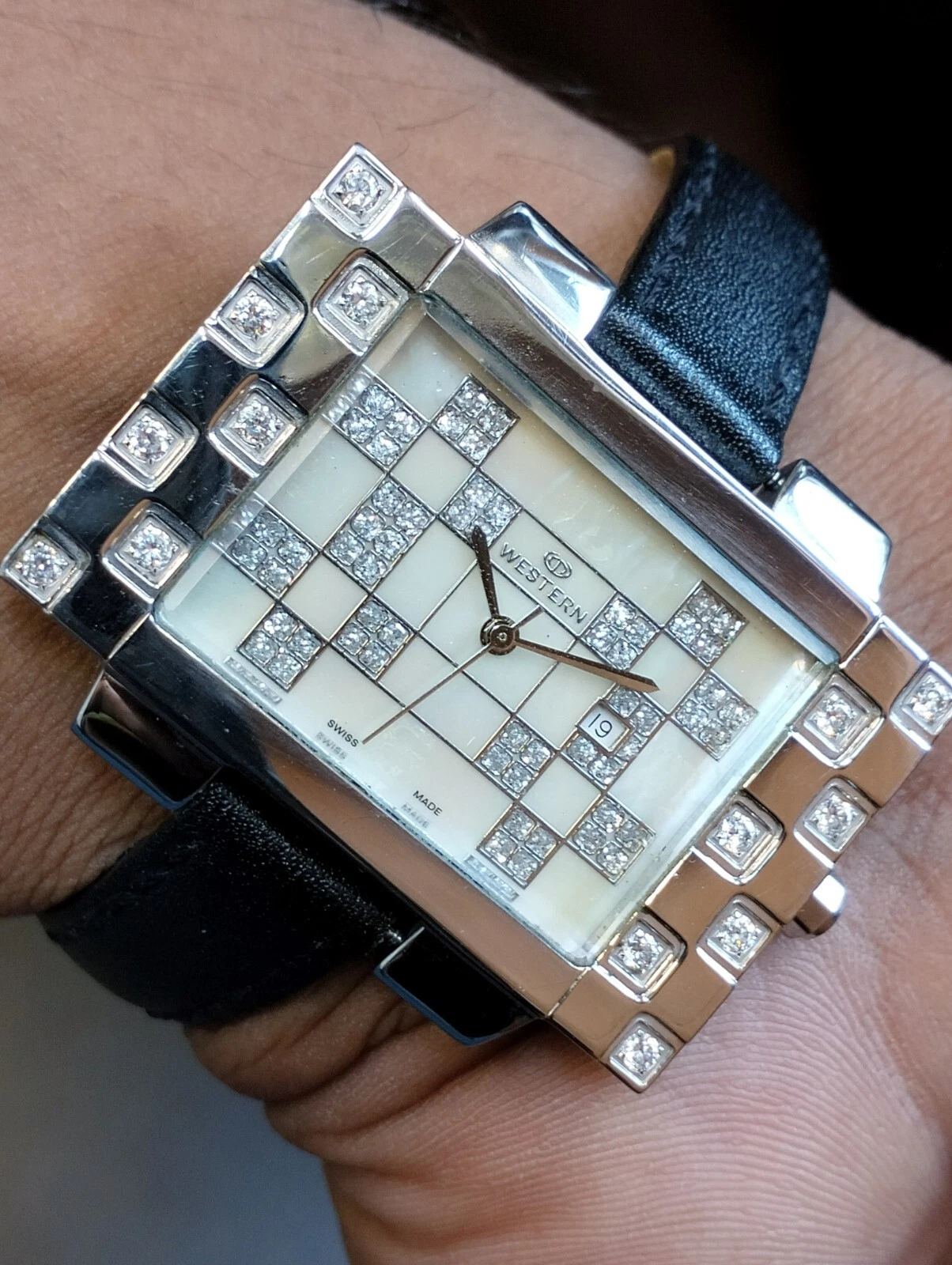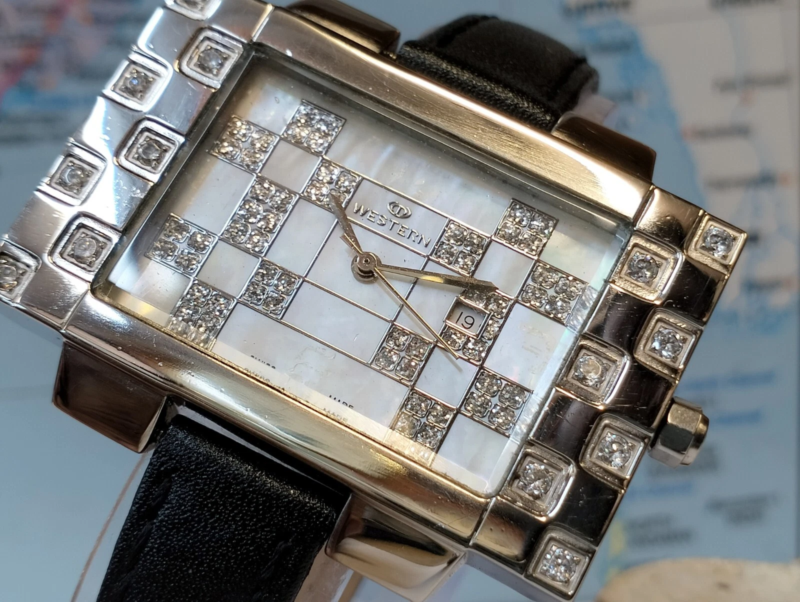 ORIGINAL WESTERN QUARTZ MOTHER OF PEARL DIAL 7303-0906 SWISS WOMEN FULL WORKING