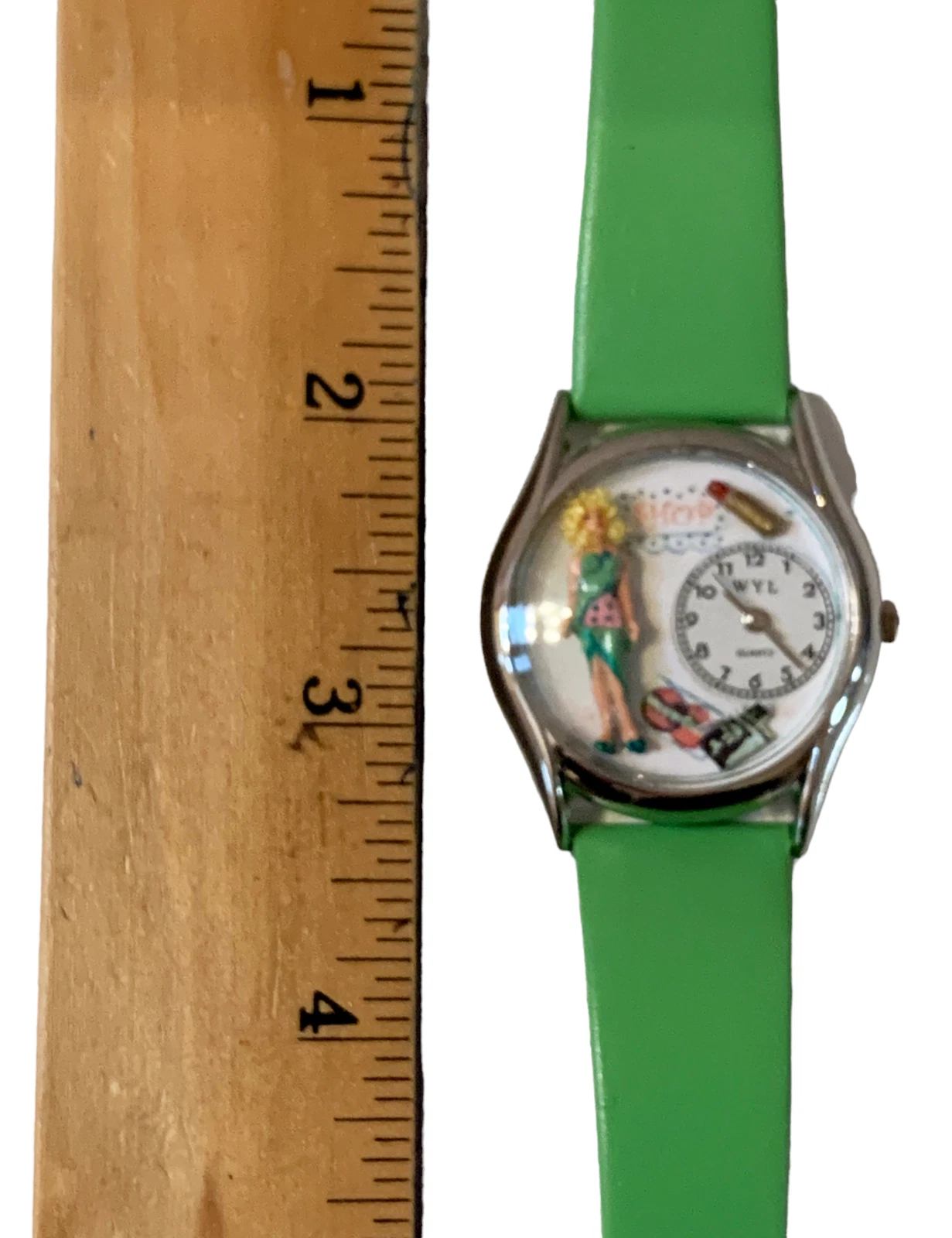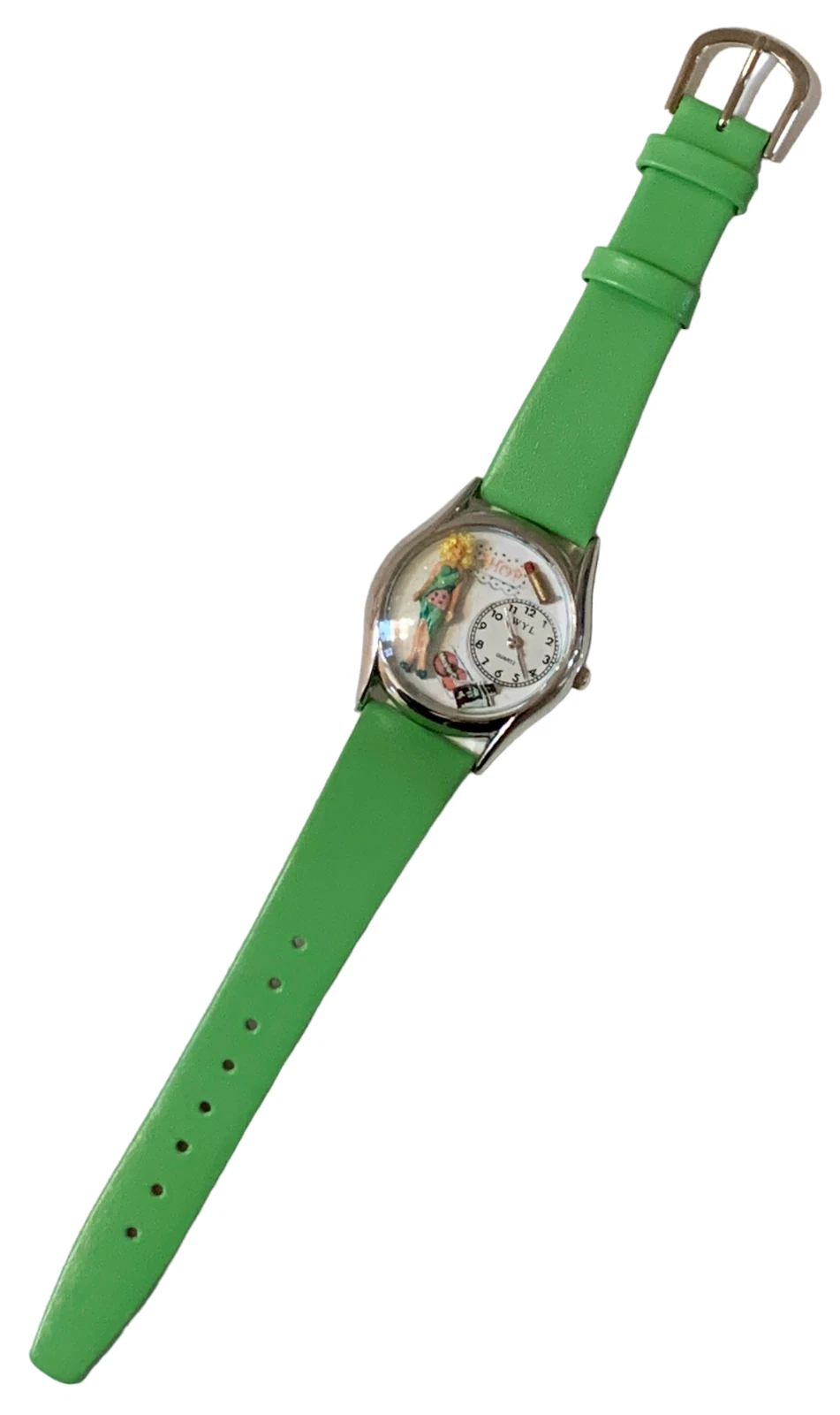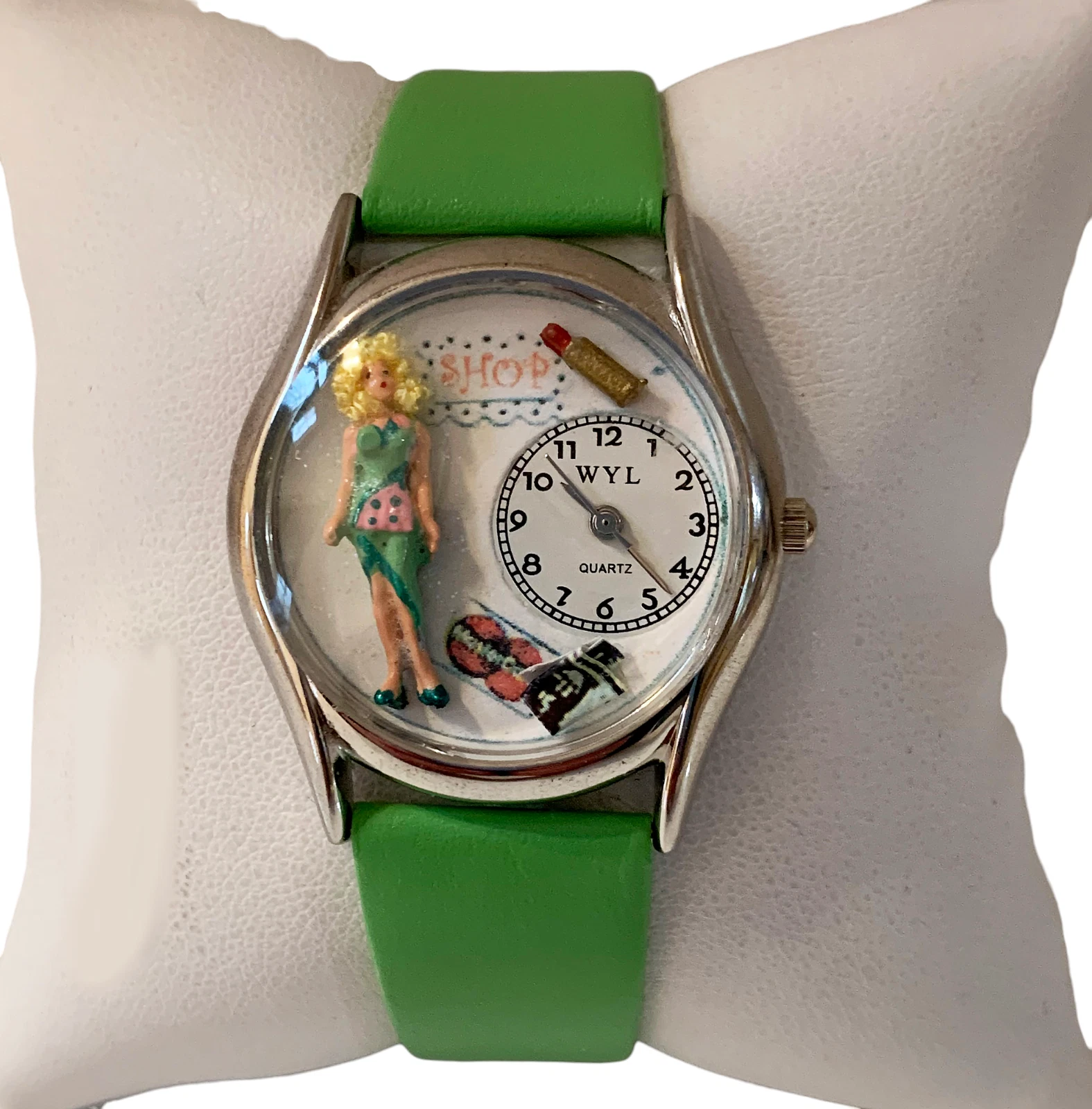 Vintage Whimsical "Shop 'Til You Drop"-Themed Silver Finish Watch w/New Battery