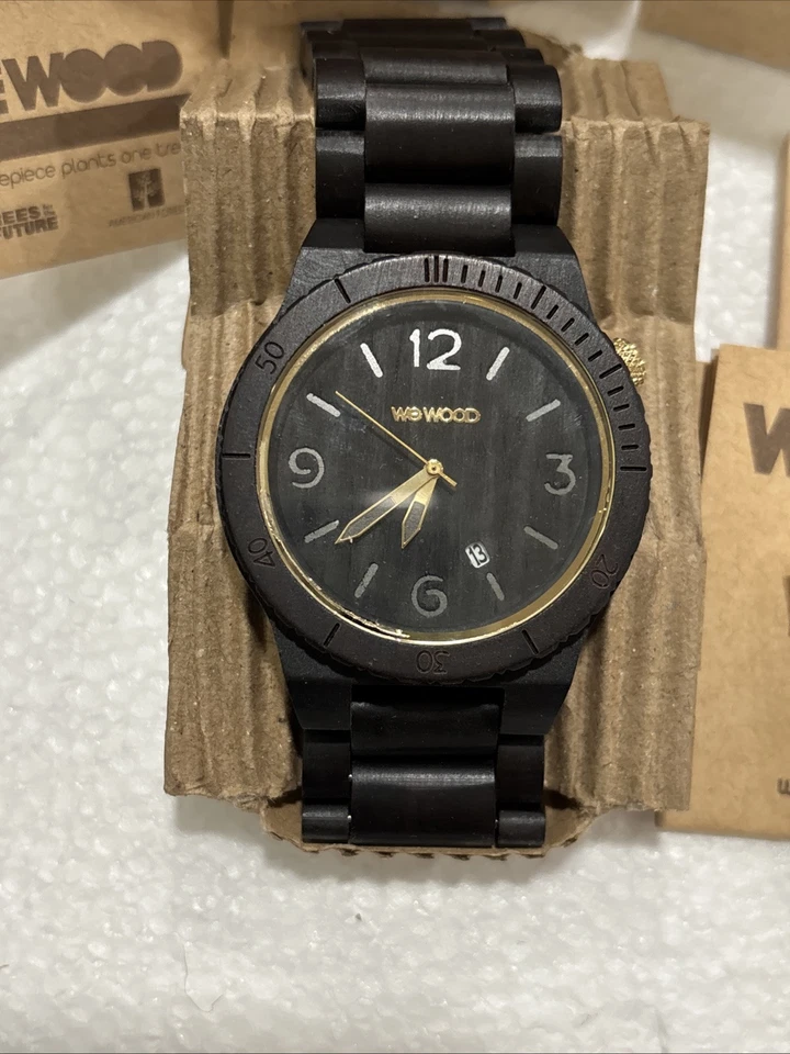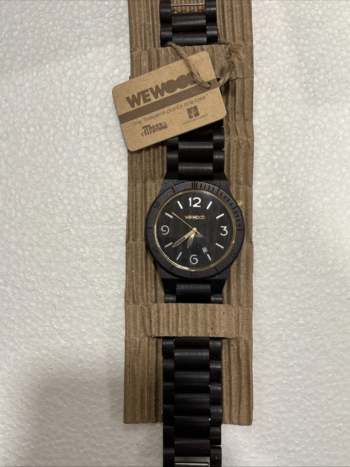 WeWood Alpha Black Gold Wooden We Wood Watch Brand New In Box
