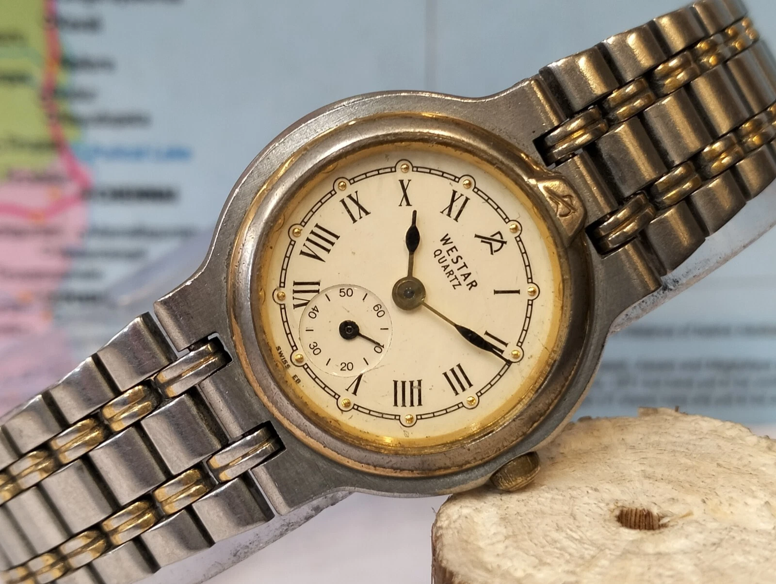 WESTAR SUB-SECOND QUARTZ CREAM DIAL 2600LCB SWISS WOMEN'S FULL WORKING ALL ORG.