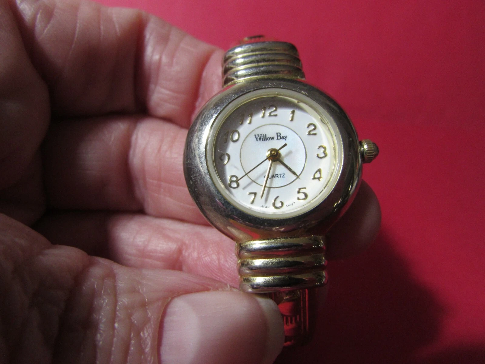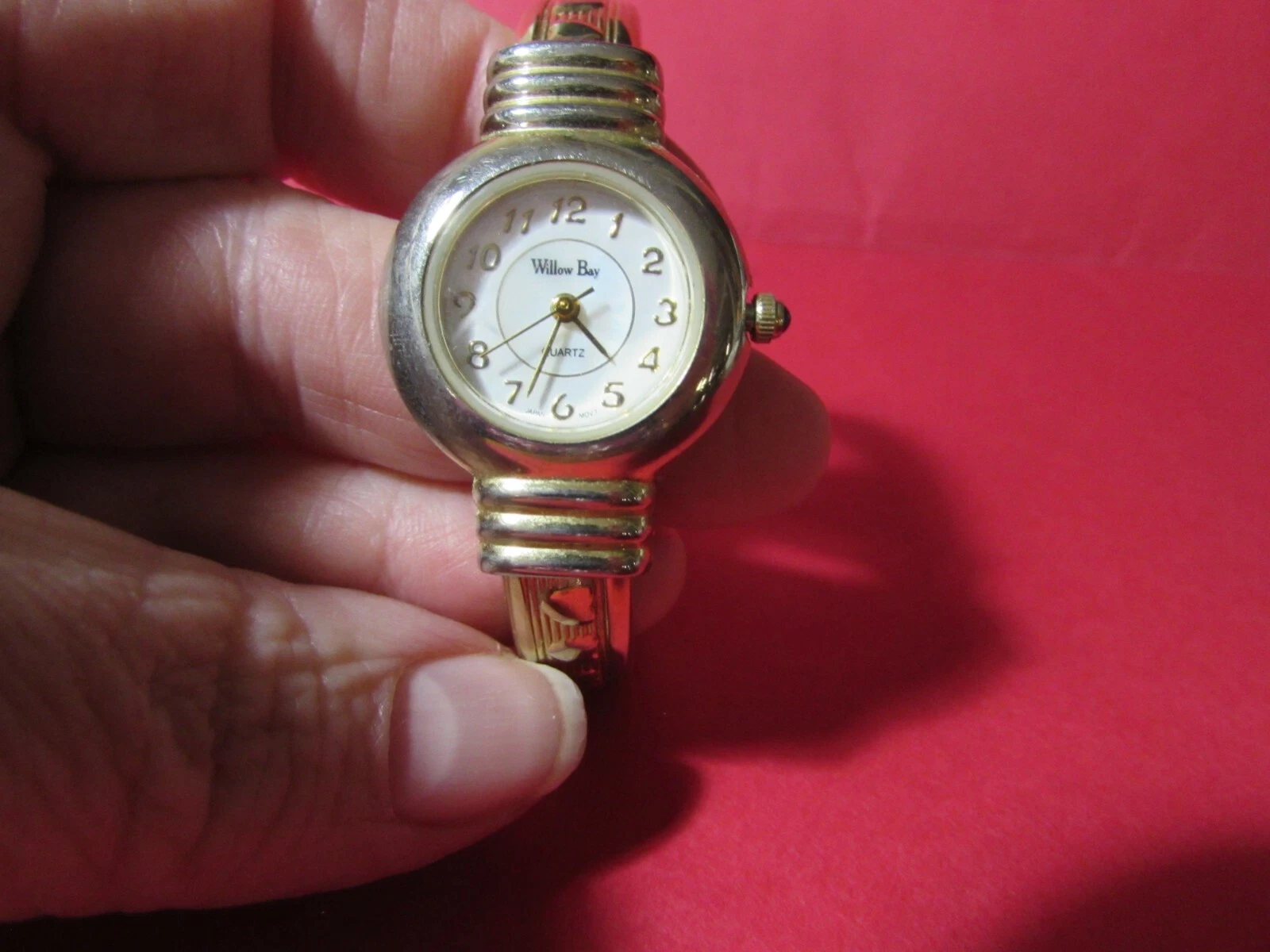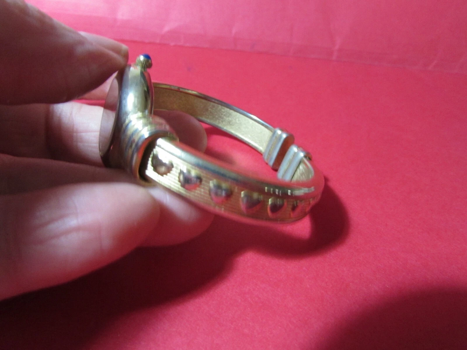 VINTAGE WILLOW BAY goldtone cuff Quartz wrist watch w/hearts - needs battery