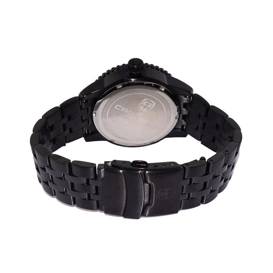 Torino Carrero Men's GrandMaster Automatic NH35 - 21 JEWELS, Maroon Date Dial, IP-Black tone. Black stainless steel case and bracelet. Fixed black stainless steel bezel. Brown dial with black hands and Arabic numeral & index hour markers. Minute markers around the outer rim. Dial Type: Analog. Luminescent hands and markers. Date display at the 3 o'clock position. TMI Caliber NH35 Automatic movement, containing 24 Jewels, bitting at 21600 vph, and has a power reserve of approximately 41 hours. Scratch resistant mineral crystal. Screw down crown. Solid case back. Round case shape, case size: 44 mm, case thickness: 13 mm. Band width: 22 mm, band length: 8.5 inches. Deployment with push button release clasp. Water resistant at 100 meters / 330 feet. Functions: date, hour, minute, second. Grandmaster Series. Casual watch style. Watch label: Japan Movt. Torino Carrero GrandMaster Automatic Brown Dial Men's Watch C1B4345BRJ.