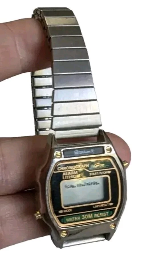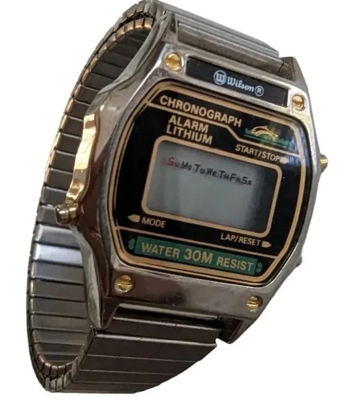Vtg Wilson Digital Watch Silver Tone Stretch Alarm Chronograph WR 30M Men