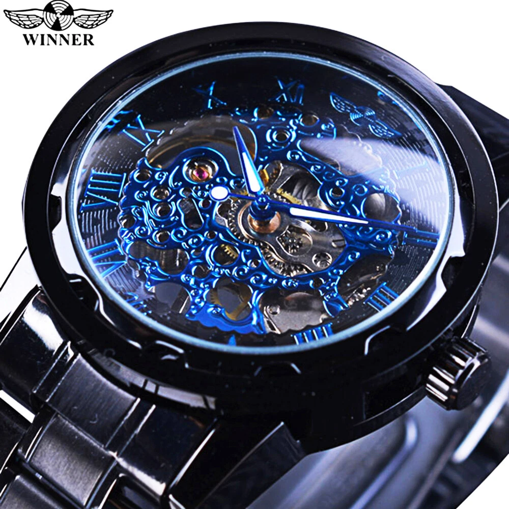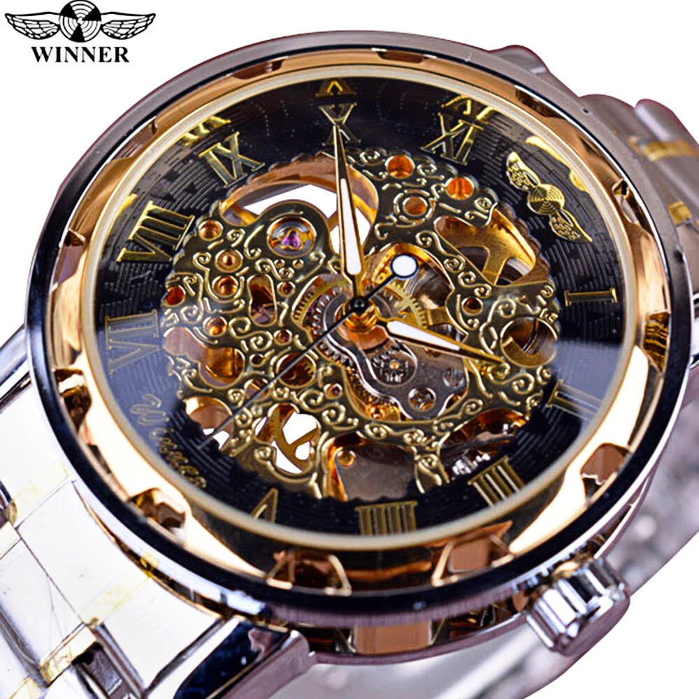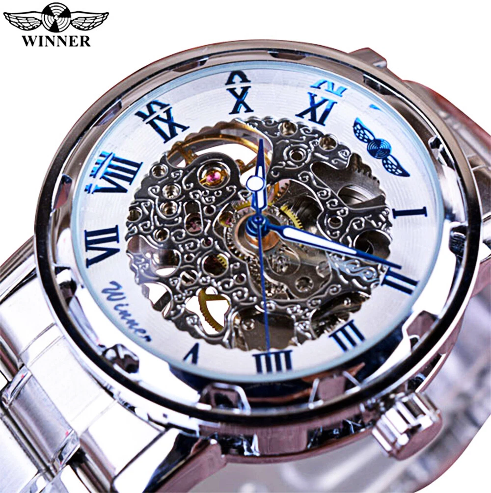 T-WINNER Men's Skeleton Watches Stainless Steel Automatic Mechanical Wrist Watch