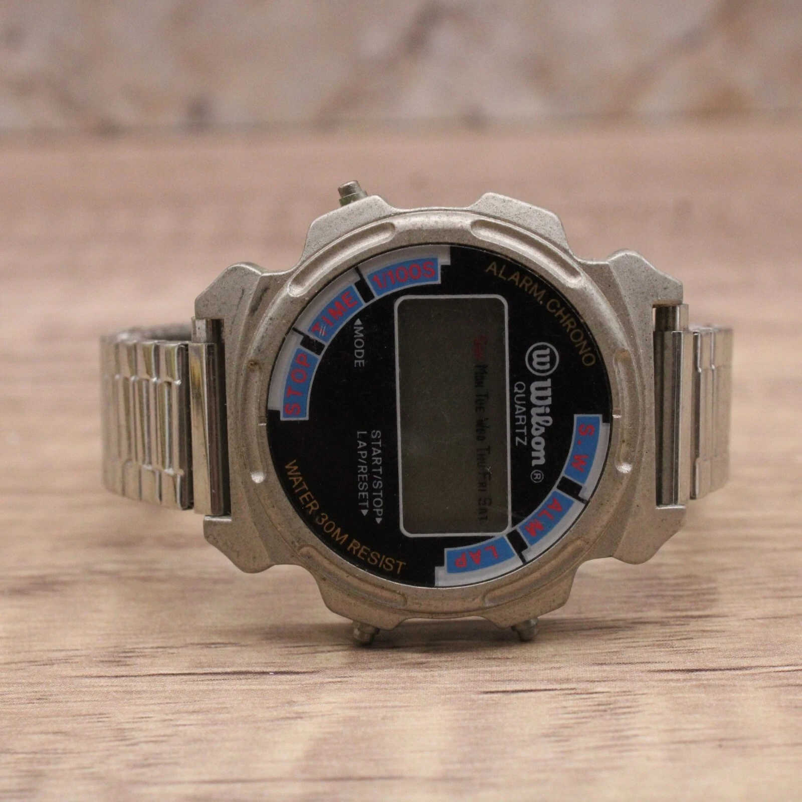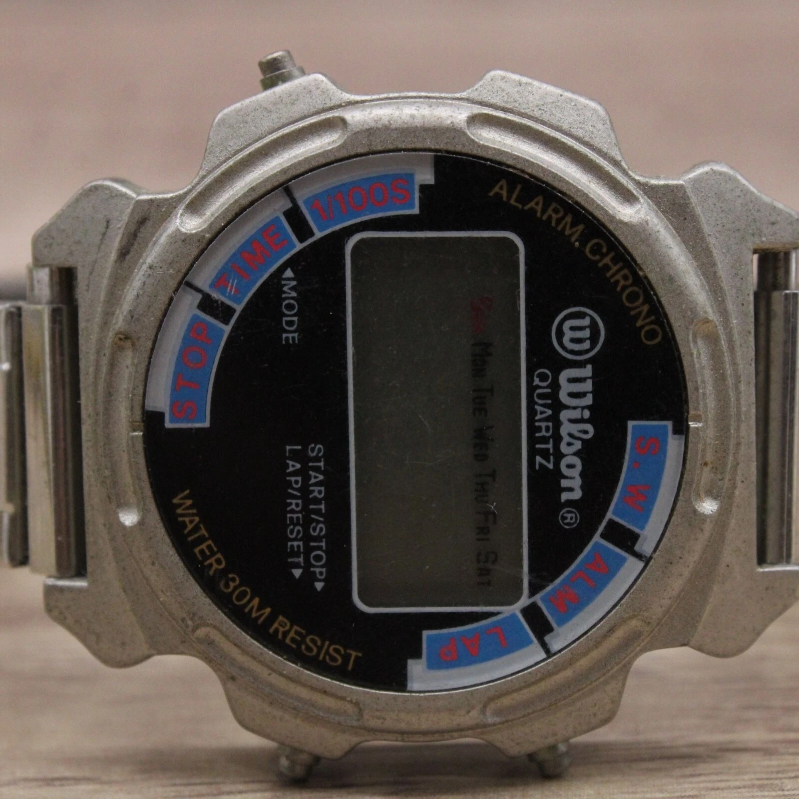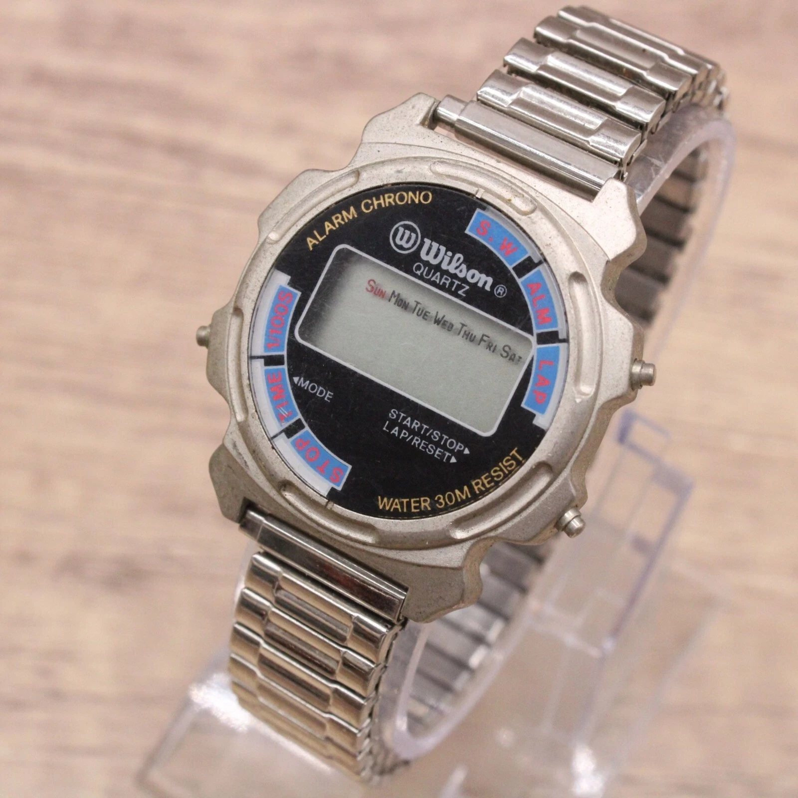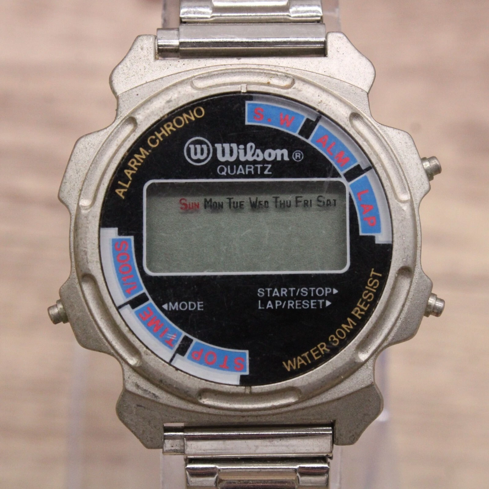 Vintage Wilson Digital Watch Mens Silver Tone Stainless Steel WR 30 m Y2k