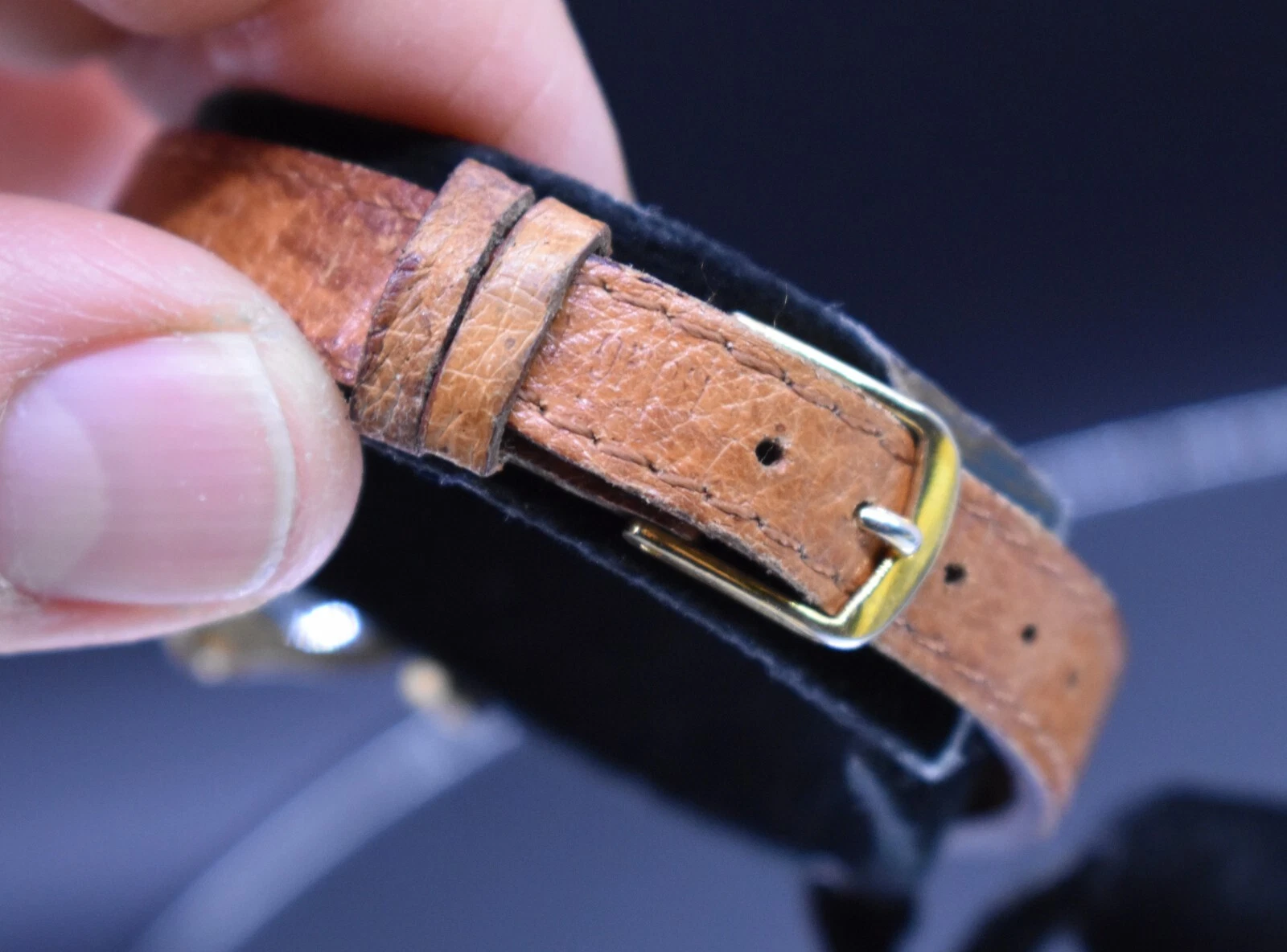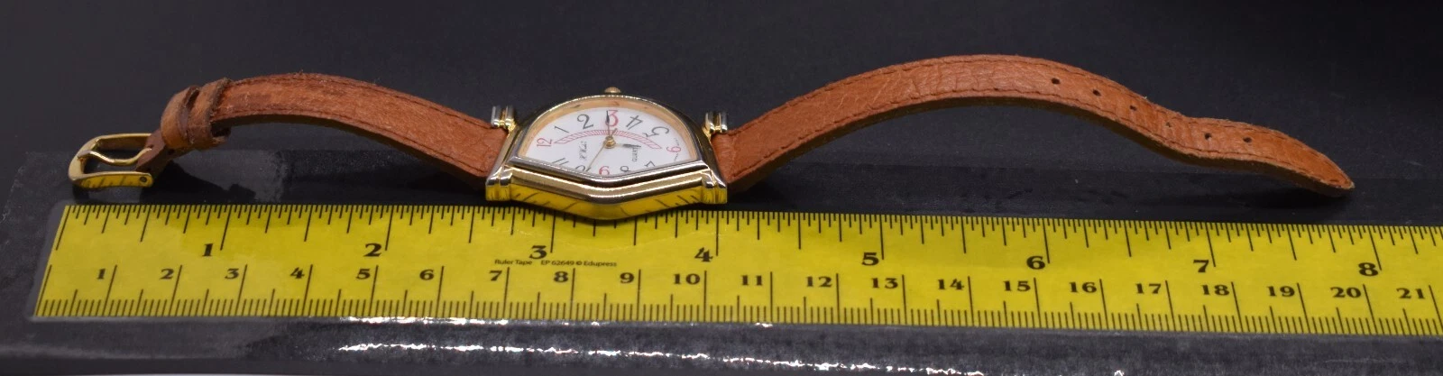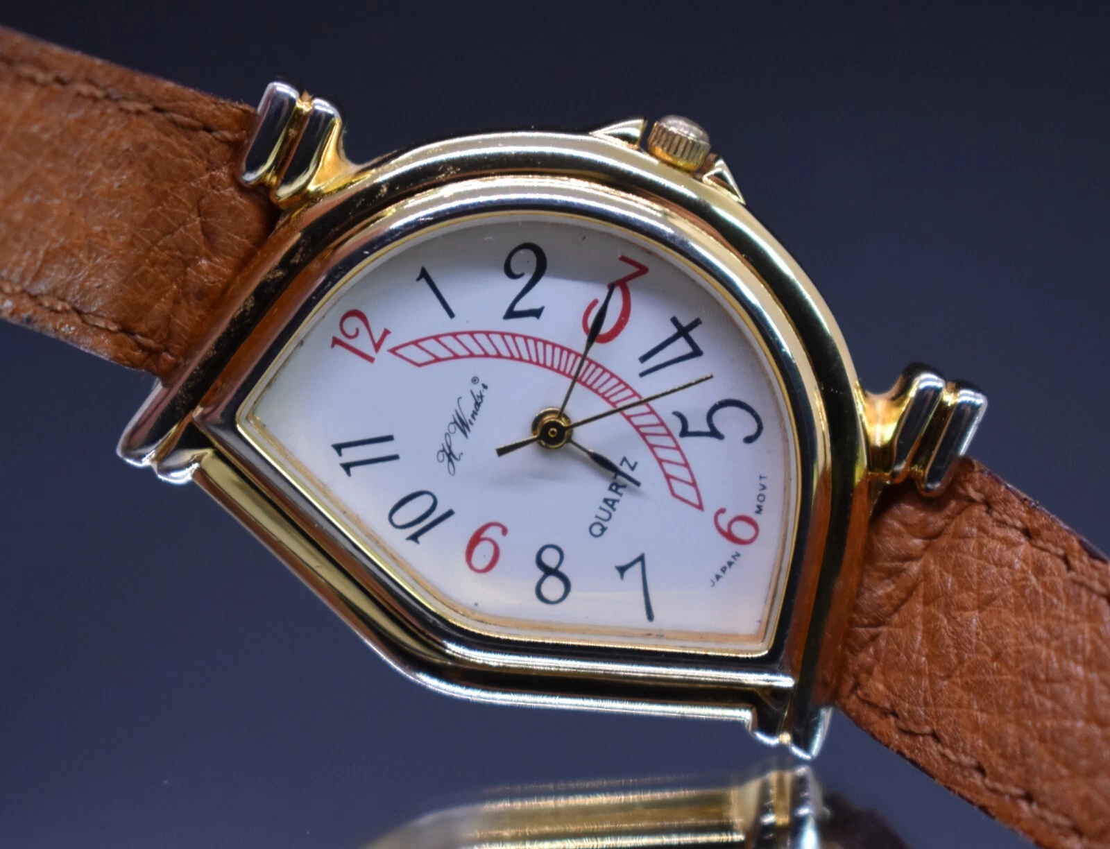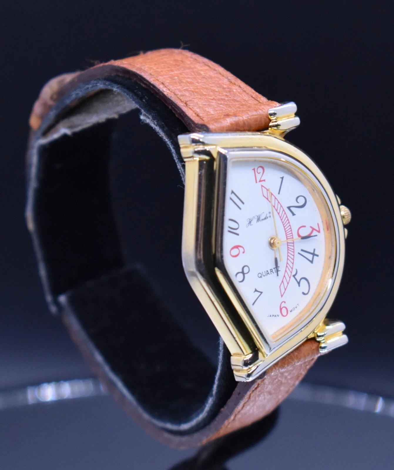 Vtg H WINDSOR Quartz Watch Women Half Moon Japan Leather NEW BATTERY