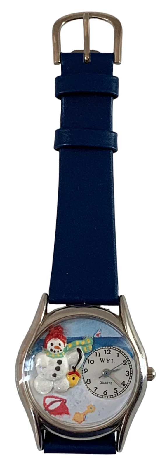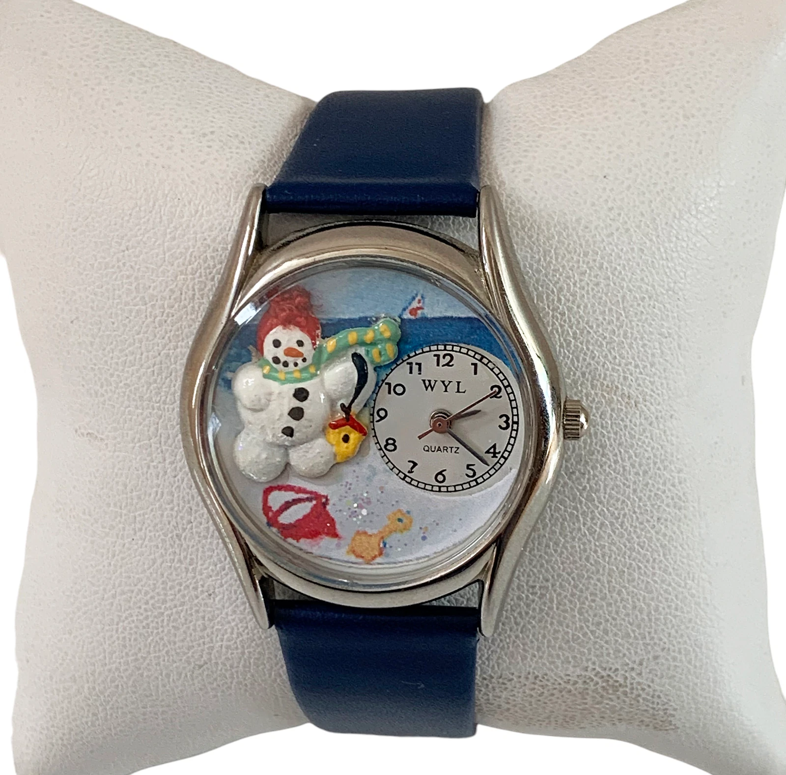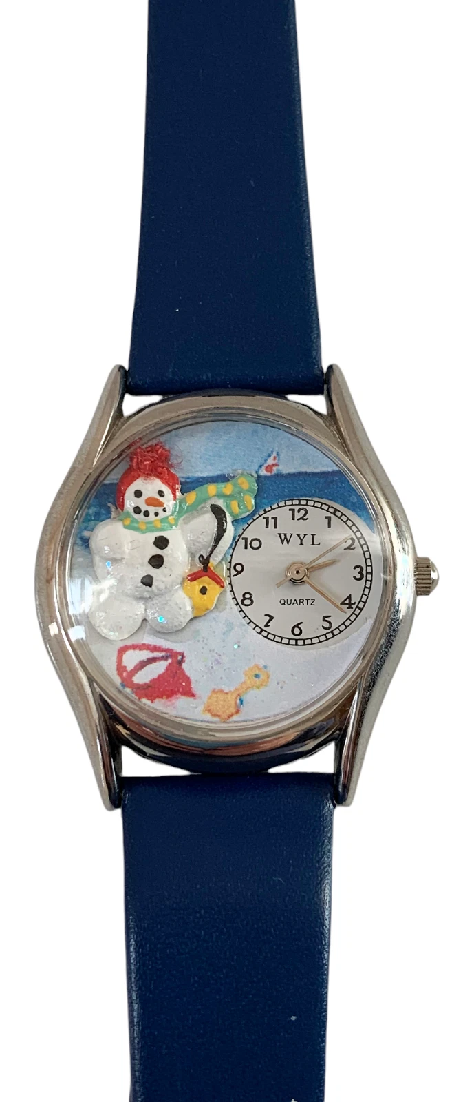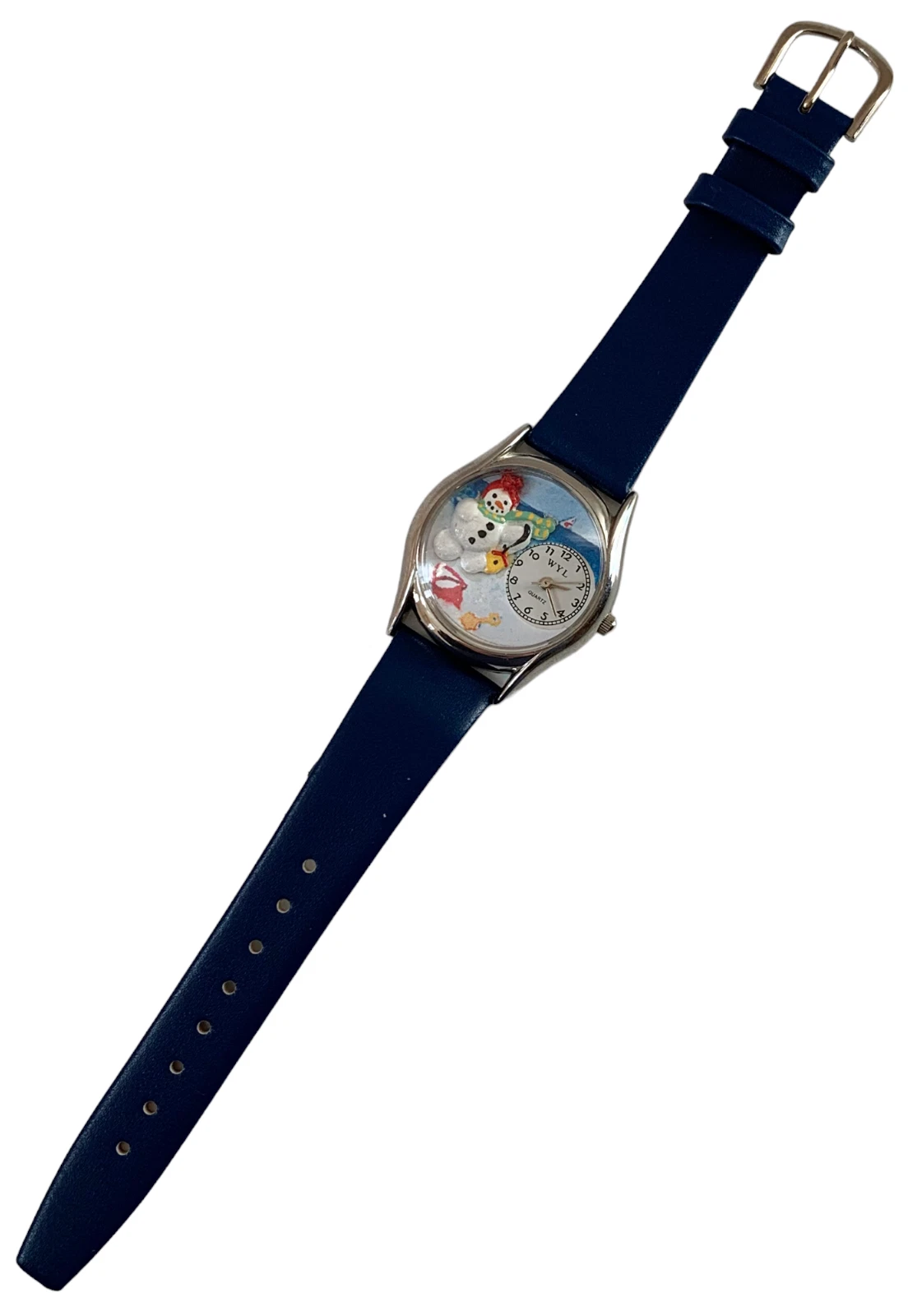 Vintage Whimsical Snowman-Themed Silver Finish Watch w/New Battery