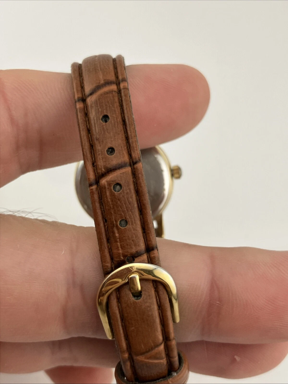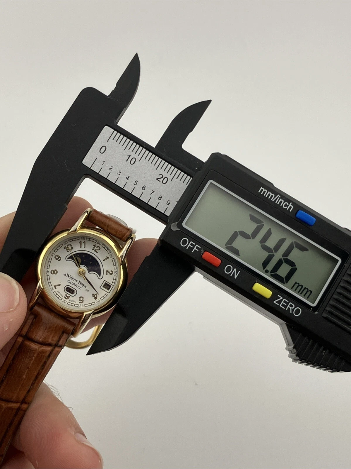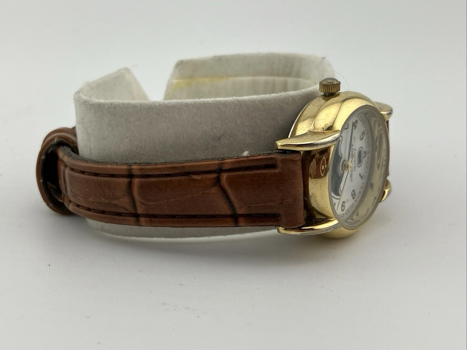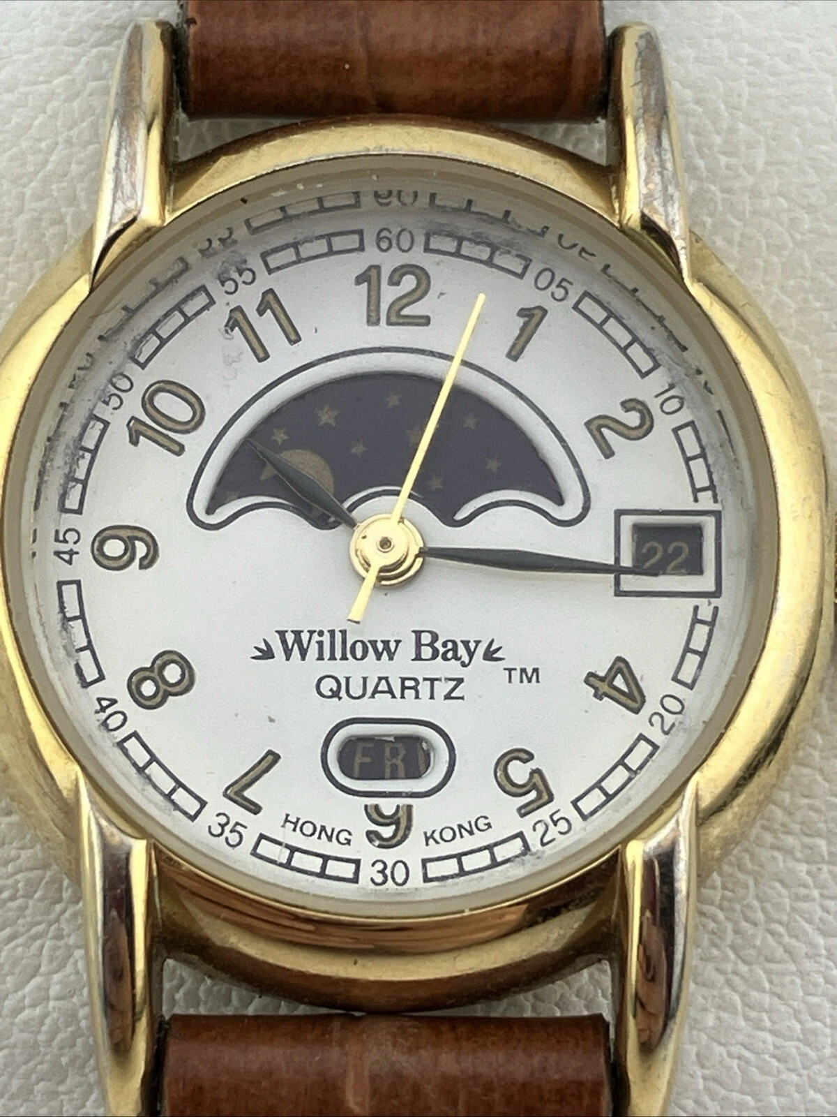 Vtg Willow Bay Ladies 25mm Watch Gold Tone Moonphase Day/Date - RUNS