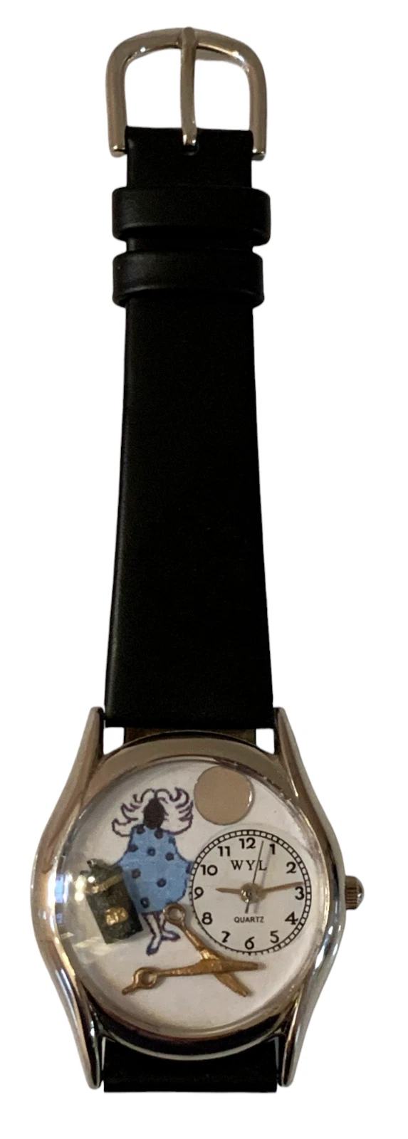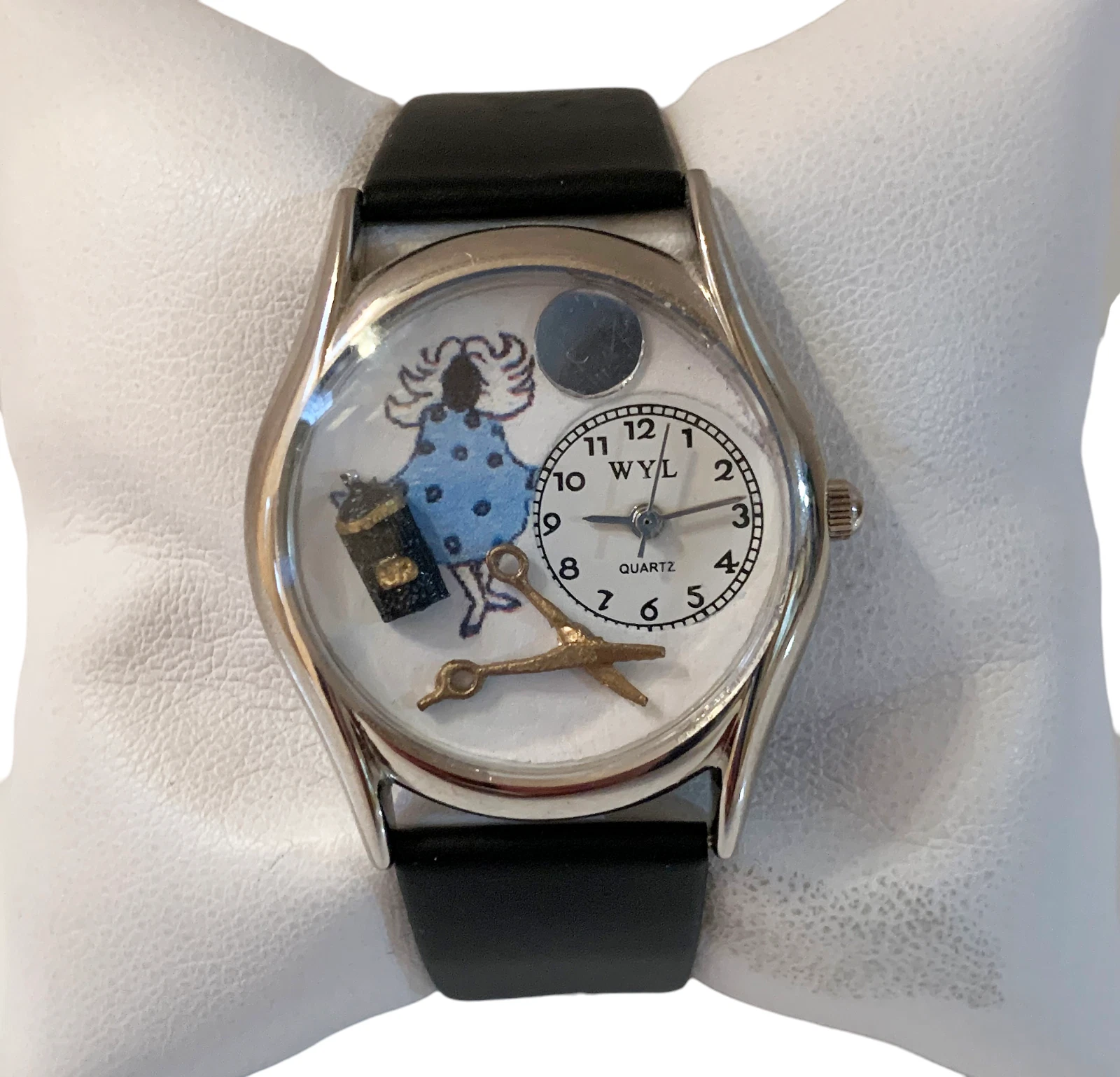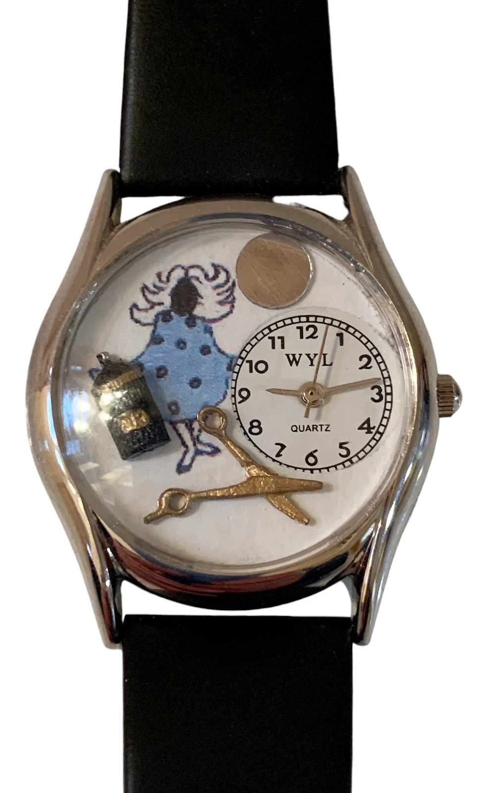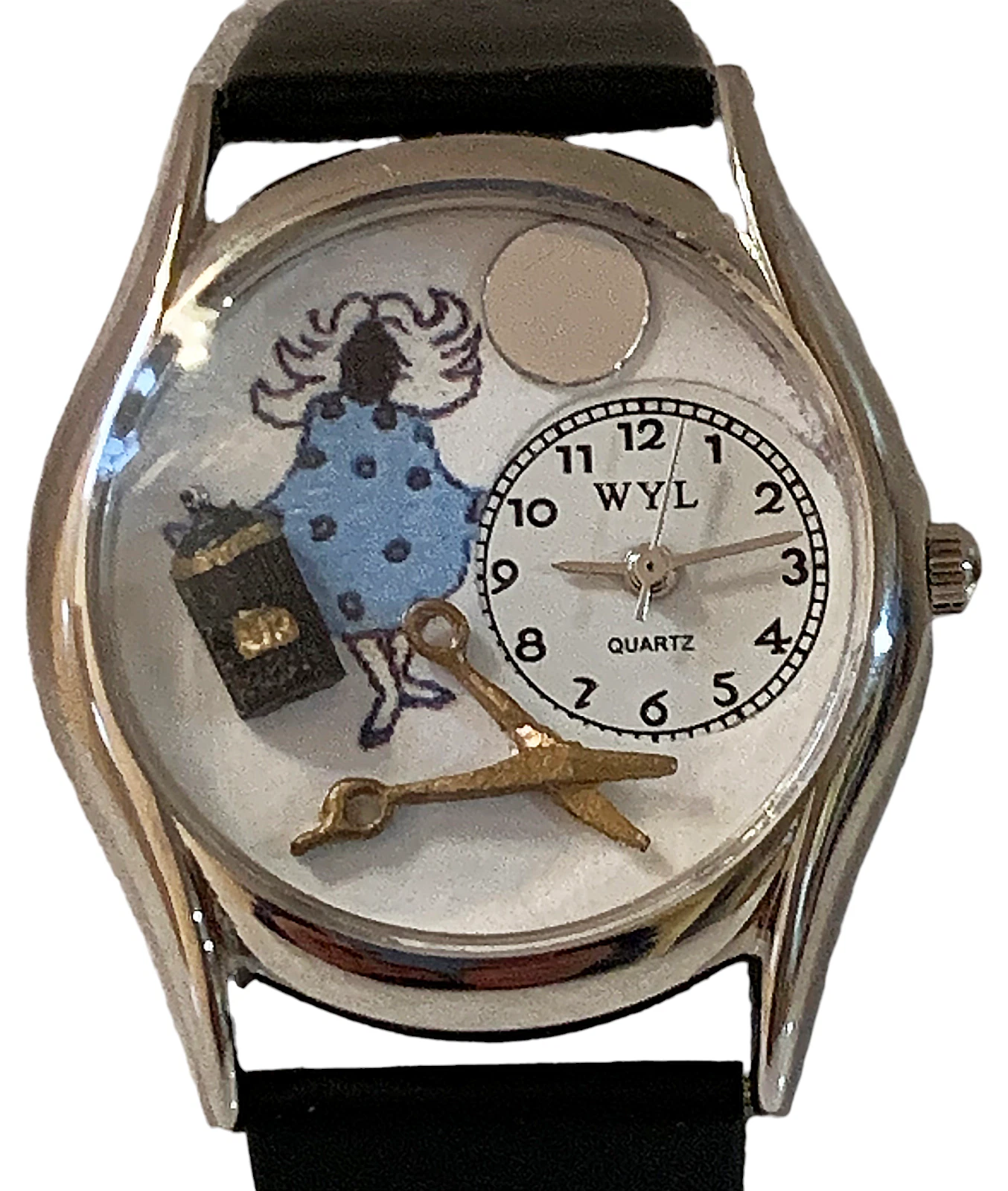 Vintage Whimsical Watches Hair Dresser-Themed Silver Finish Watch w/New Battery