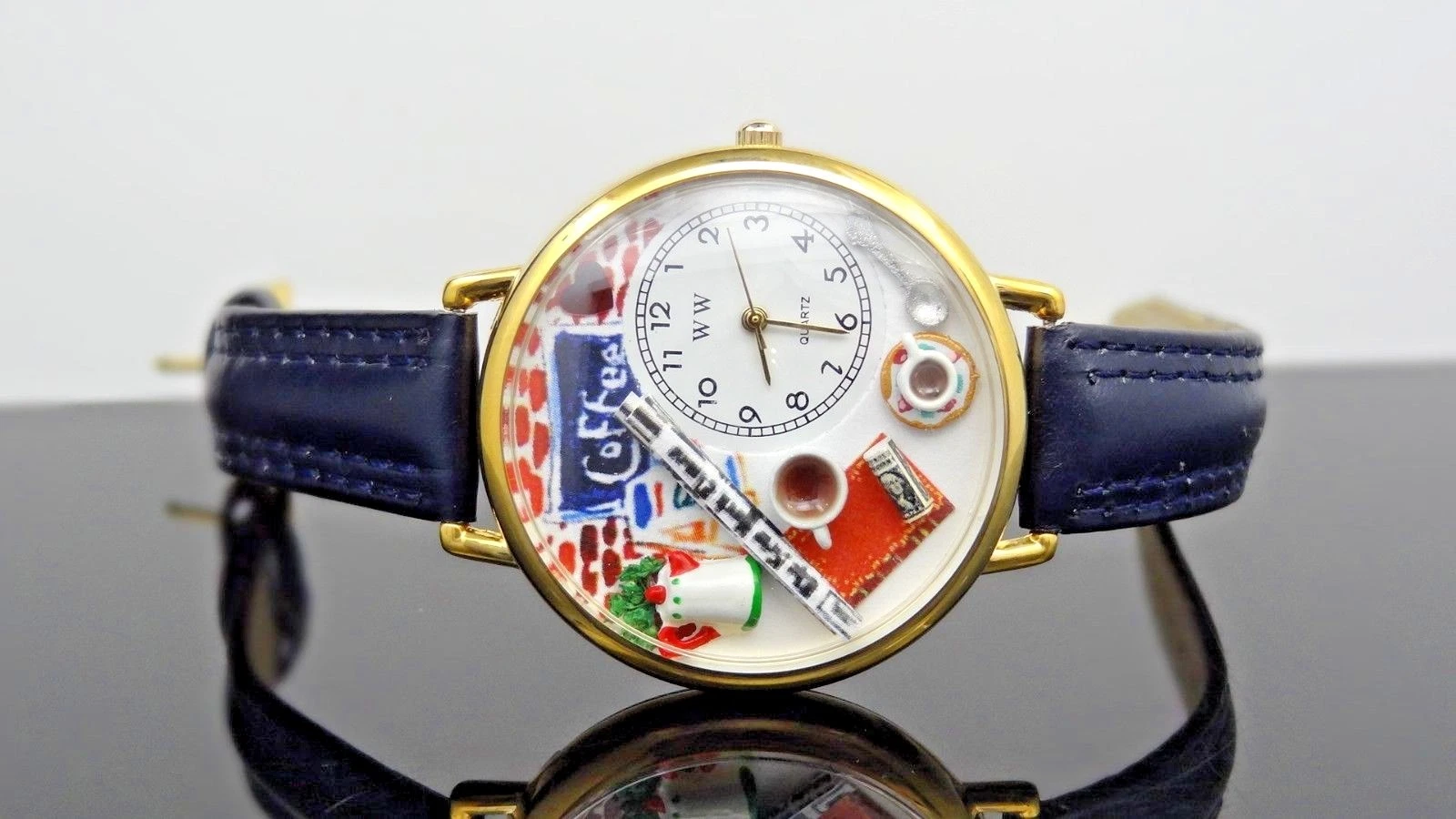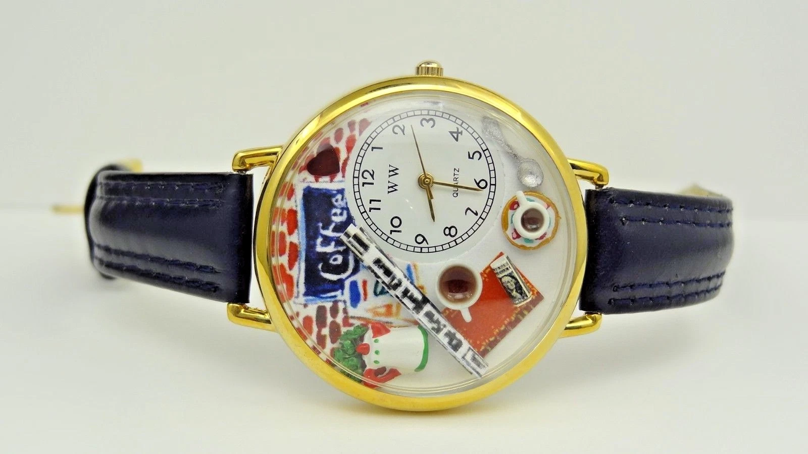 Whimsical WG0310006 Coffee Lover Blue Leather Band Unisex Watch - GREAT GIFT