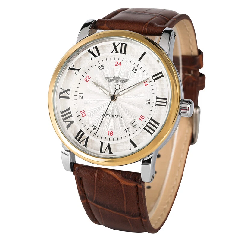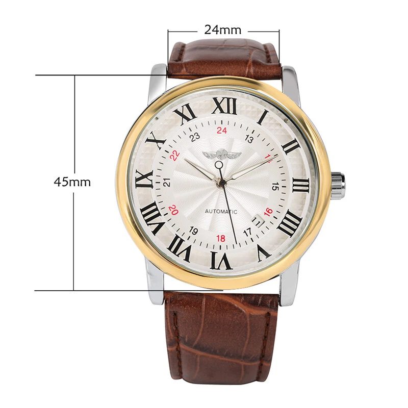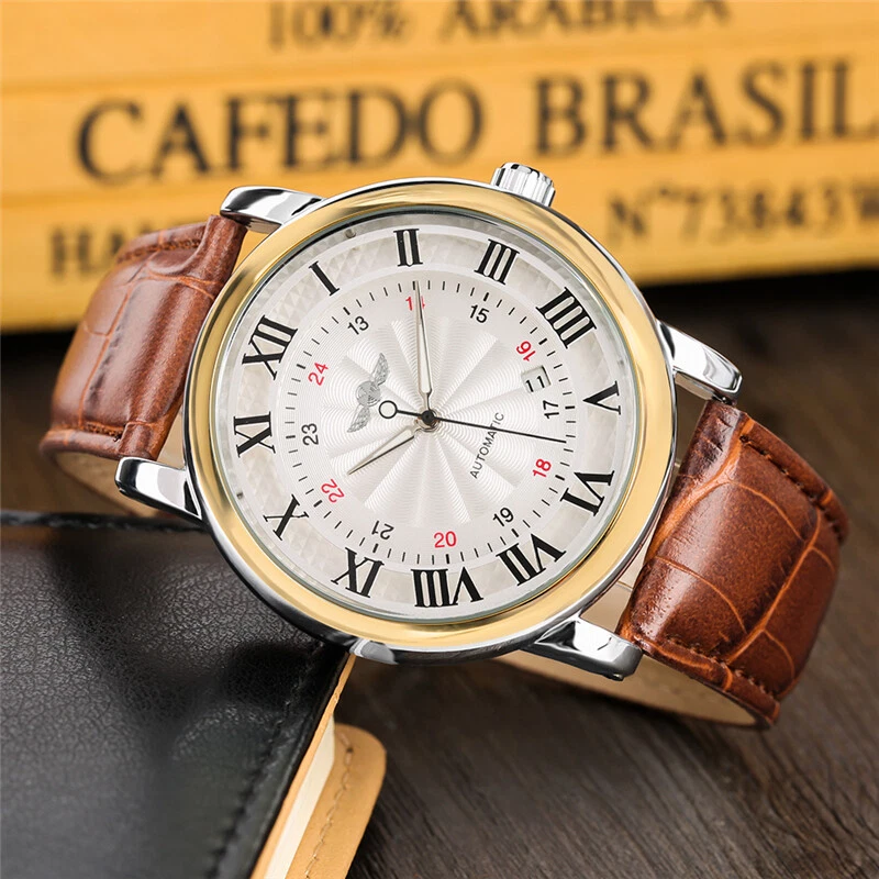 WINNER Luxury Men's Automatic Watch Roman Numerals Dial Brown Leather Wristwatch