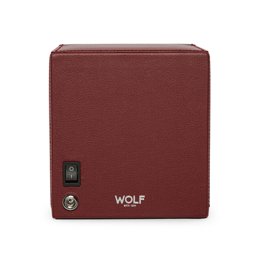 Eye-catching and fashionable, Cub winders are the perfect match for any watch aficionado's growing collection. Just stack together to suit your needs. Includes a bordeaux pebble finish, glass cover, bordeaux grosgrain faceplate, chrome finished hardware and a single winding module.