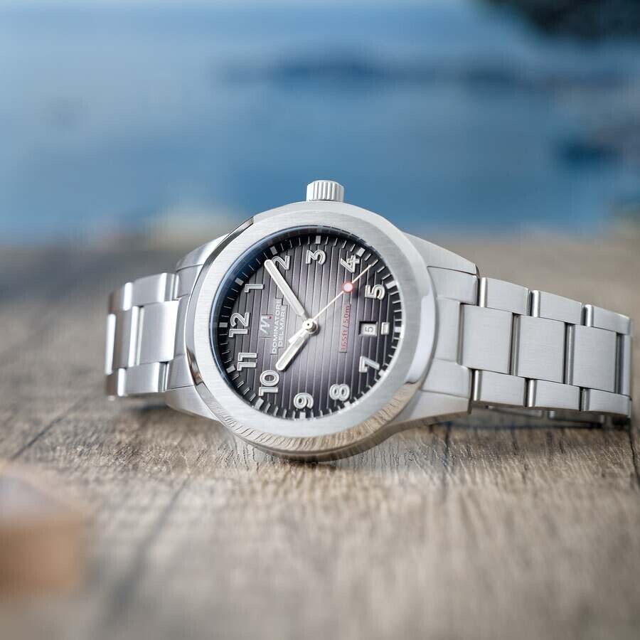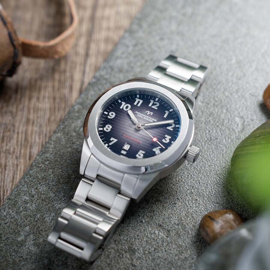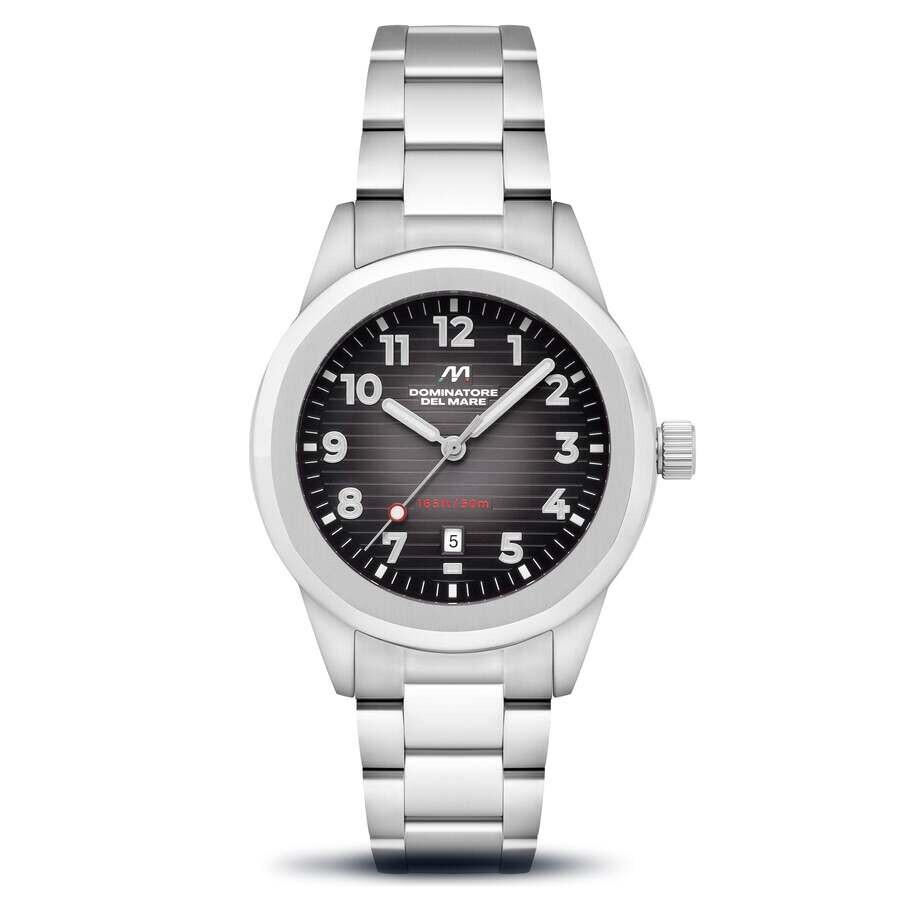 This is the perfect watch to accompany you on any occasion. Crafted with a stainless steel case and bezel and featuring a Japanese quartz movement and date display, the Aqua Sicura is both elegant and precise. The finely crafted dial ensures it looks just as good in a formal setting as it does during casual occasions. Silver-tone stainless steel case and bracelet. Fixed silver-tone stainless steel bezel. Black dial with silver-tone hands and Arabic numeral hour markers. Minute markers around the outer rim. Dial Type: Analog. Luminescent hands and markers. Date display at the 6 o'clock position. Seiko - VJ32 quartz movement. Pull / push crown. Solid case back. Round case shape, case size: 42 mm, case thickness: 11 mm. Band width: 20 mm, band length: 8 inches. Fold over clasp with a safety release. Water resistant at 50 meters / 165 feet. Functions: date, hour, minute, second. Aqua Sicura Series. Casual watch style. Dominatore Del Mare Aqua Sicura Quartz Black Dial Men's Watch DD-8022-44.