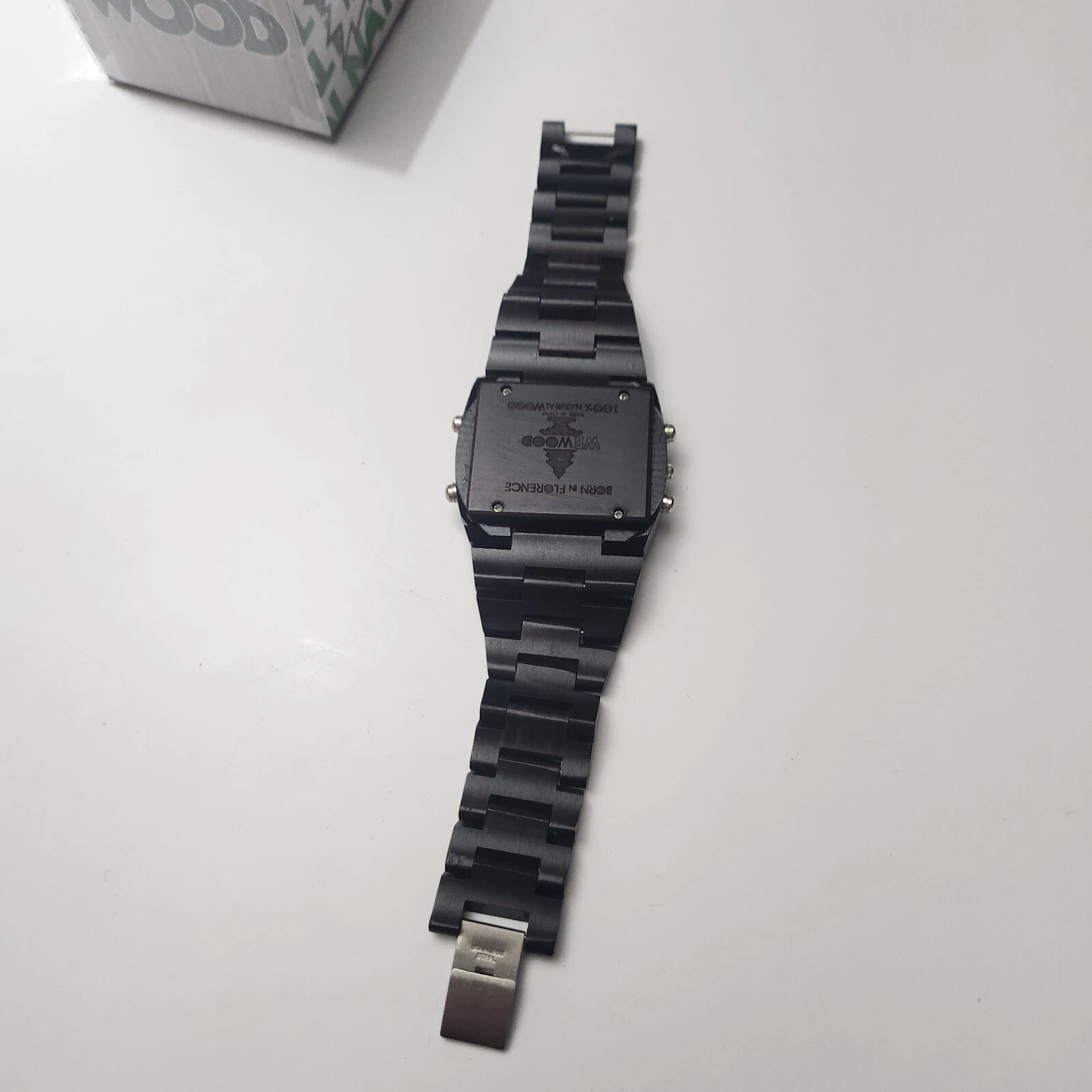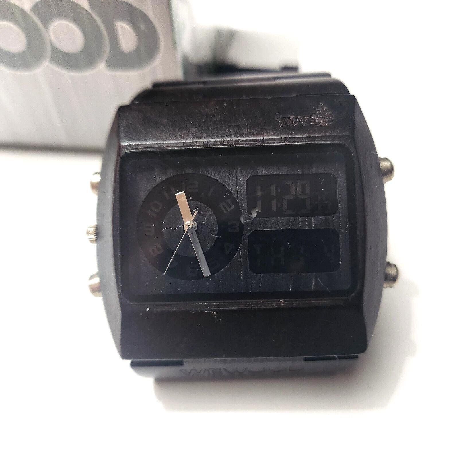 ULTRA RARE WEWOOD BLACK CHRONO HYBRID DIGITAL ANALOG DUAL FACE WOODEN WATCH