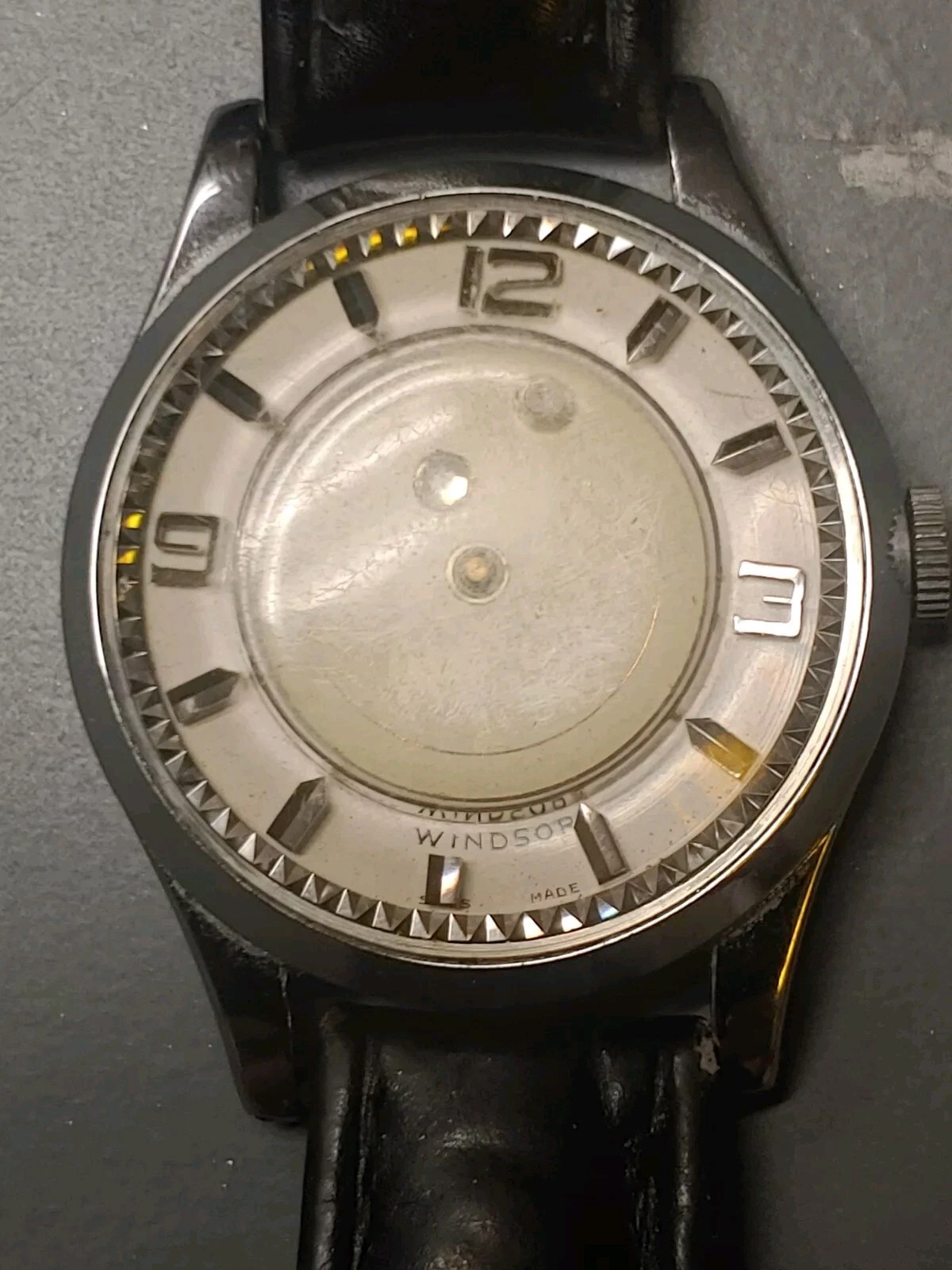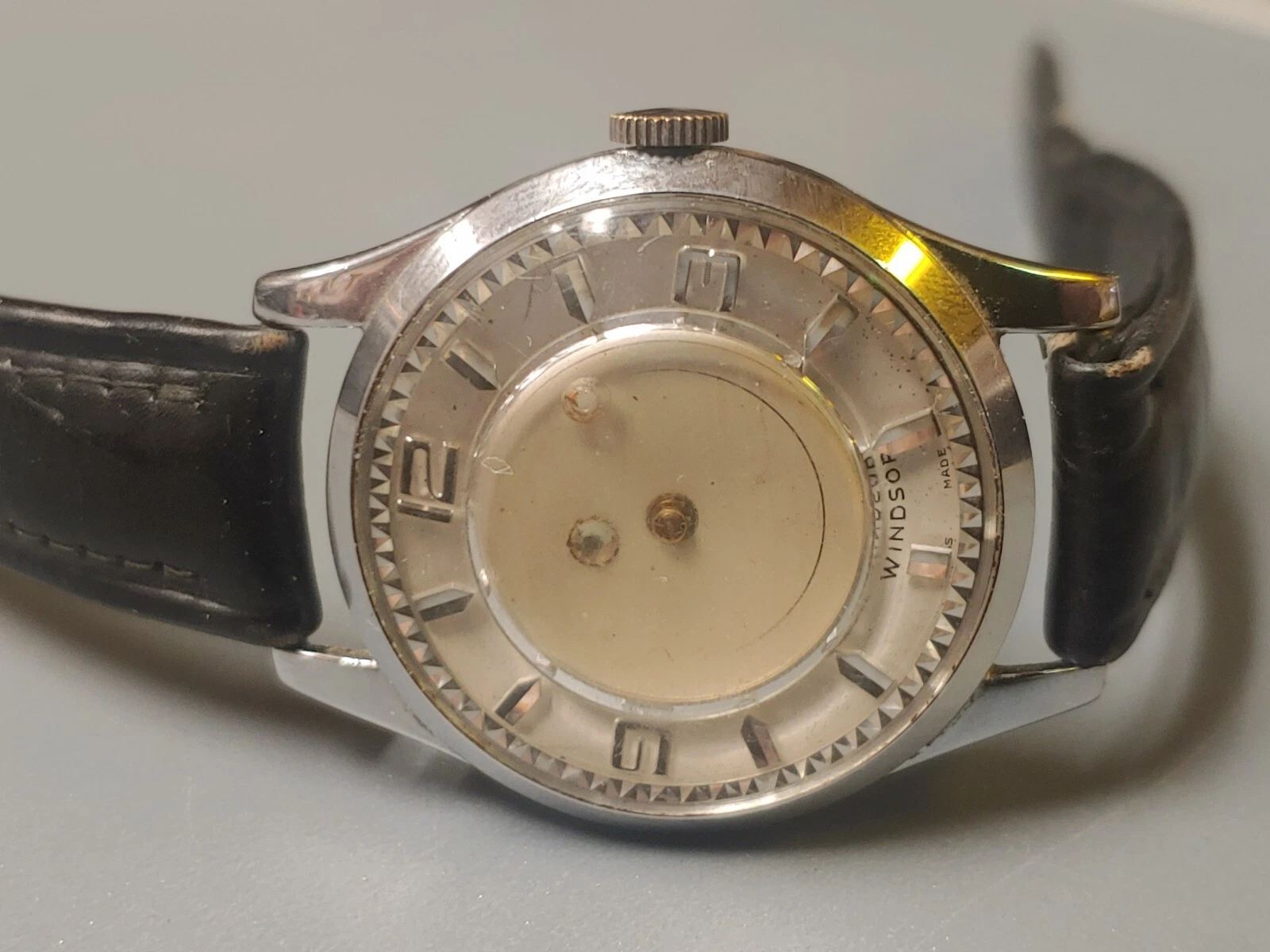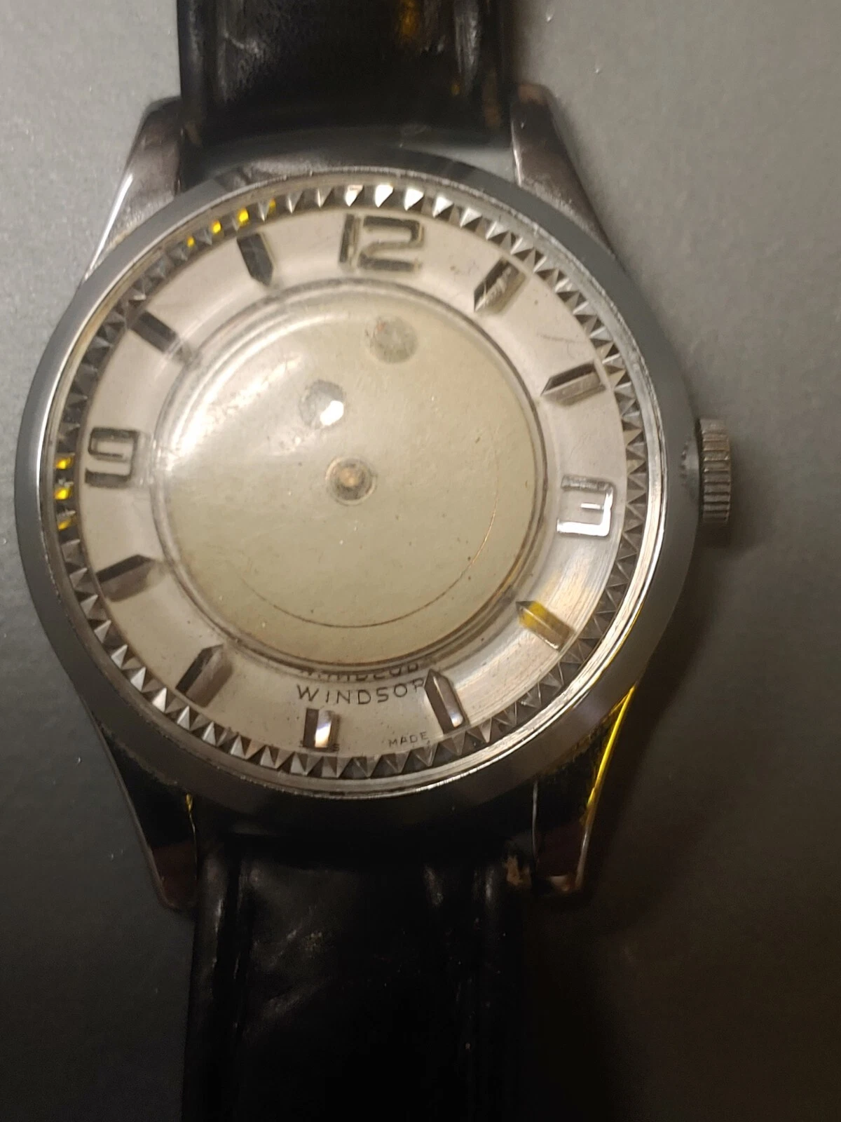 Vintage Windsor Mens 34mm Mystery Dial Manual Wind BROKEN FOR PARTS OR REPAIR.
