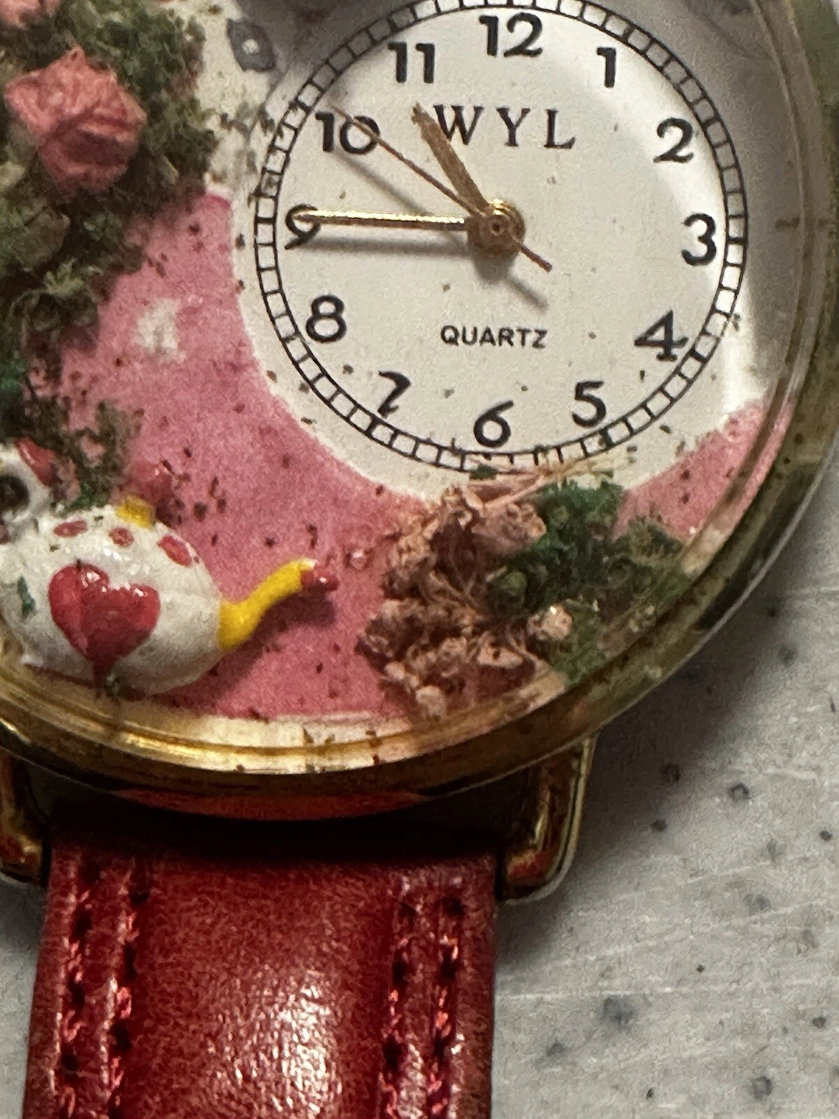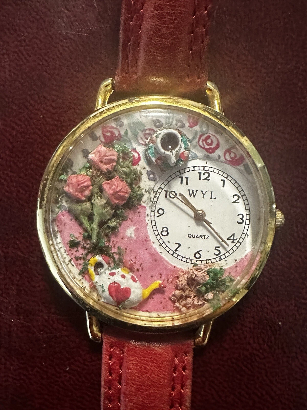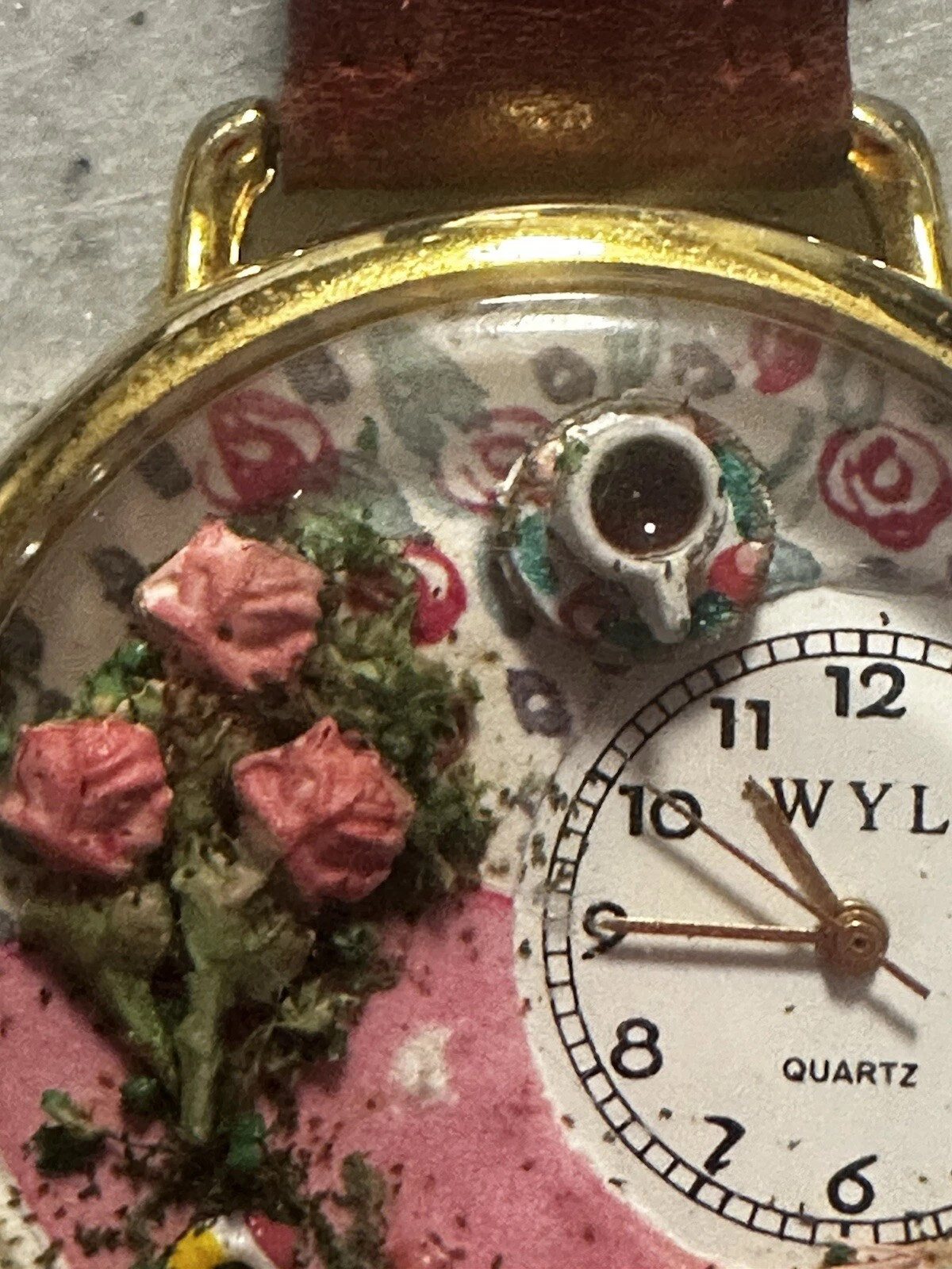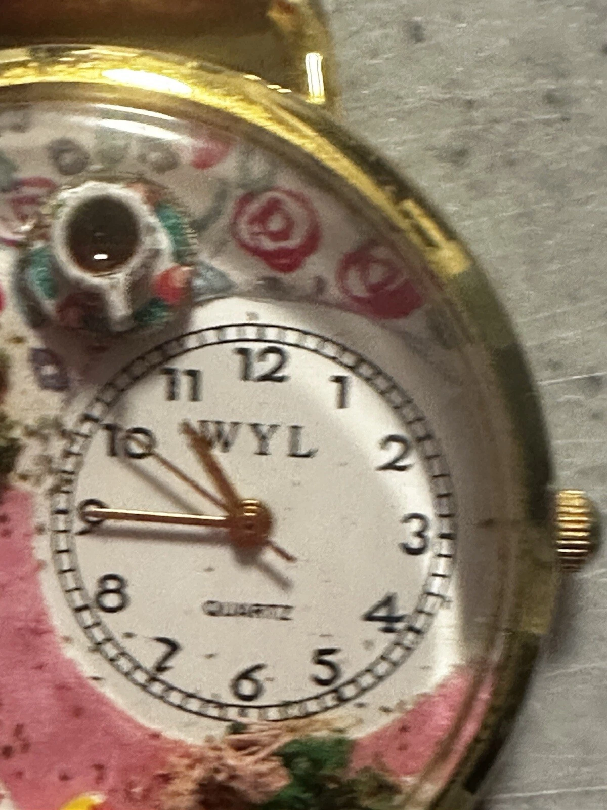 VTG Whimsical Watches Pink Teapot and Cup Roses Watch - Needs Battery