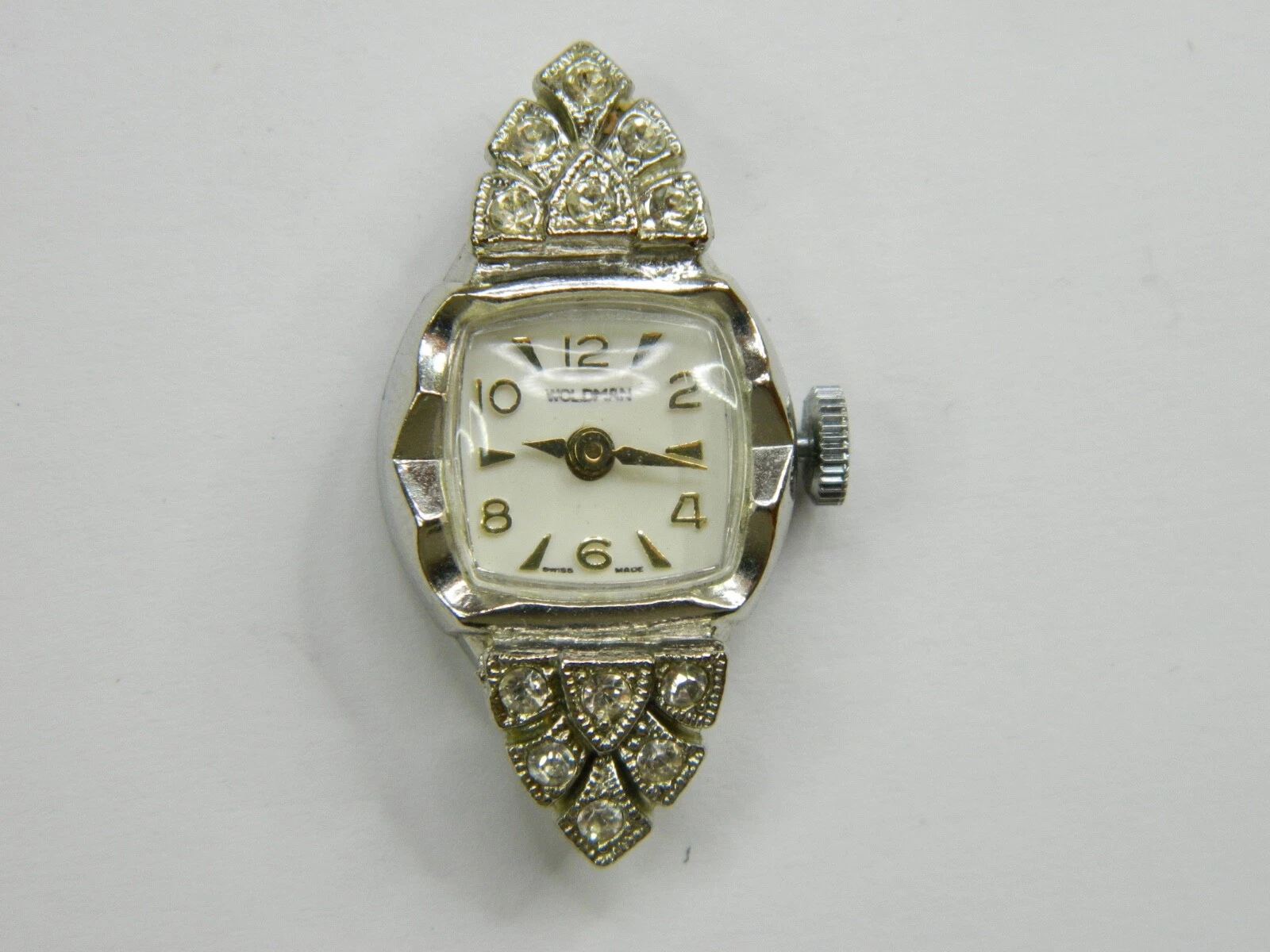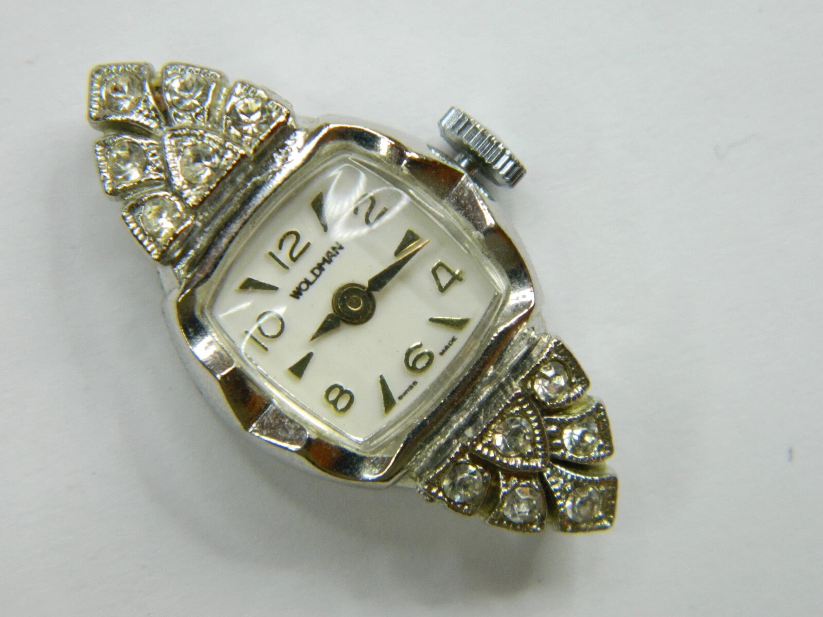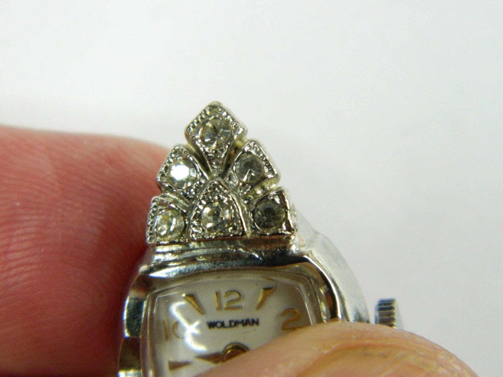FINE VINTAGE WOLDMAN 12 RHINESTONE LADIES WATCH - RUNS GOOD TIMEKEEPER