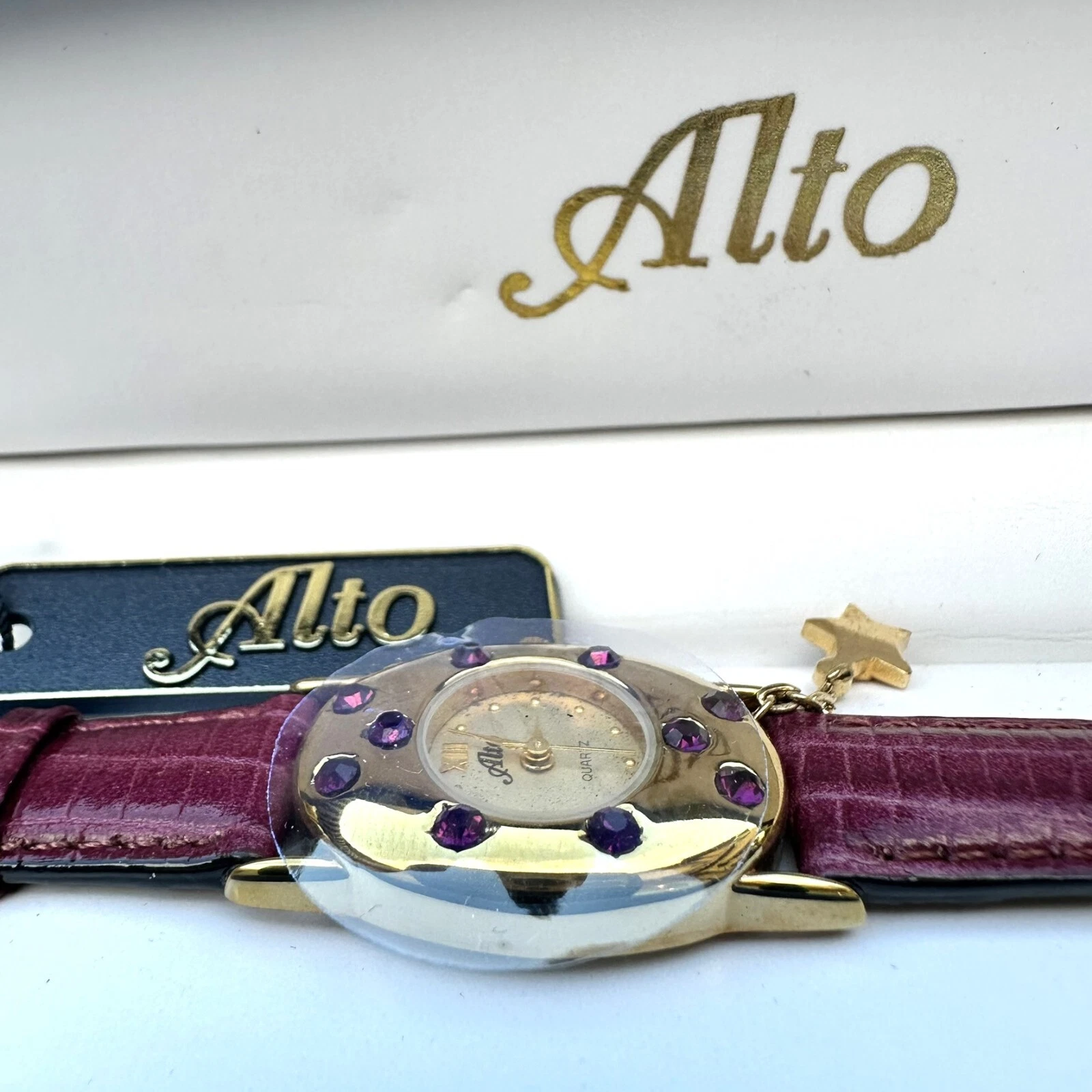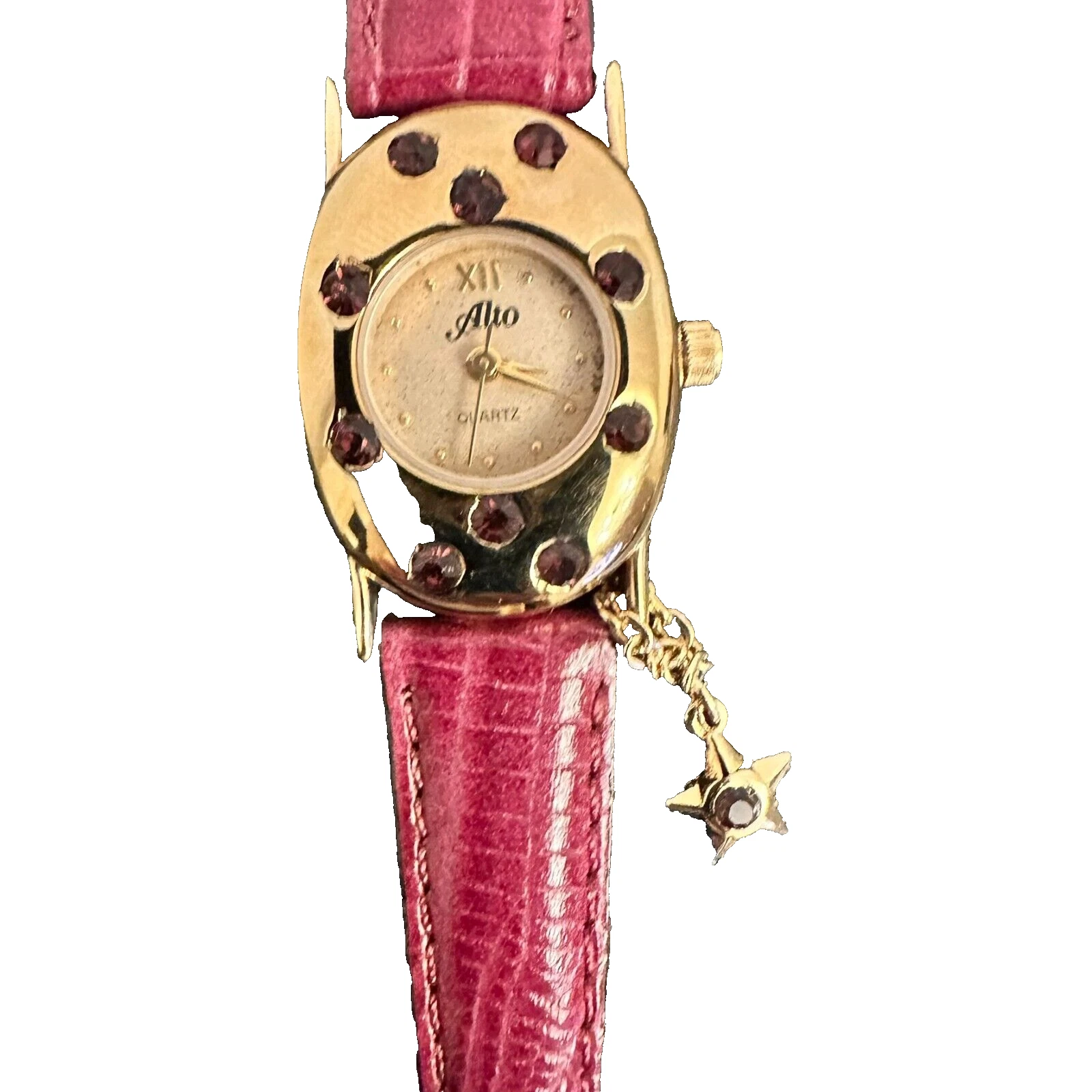 Alto Quartz Gold Tone Watch Burgundy Band with Charms