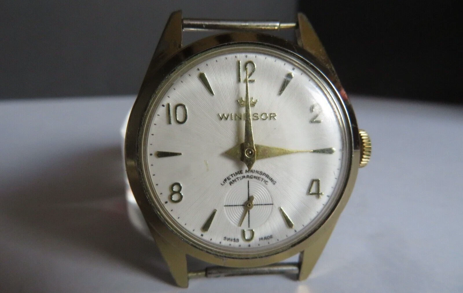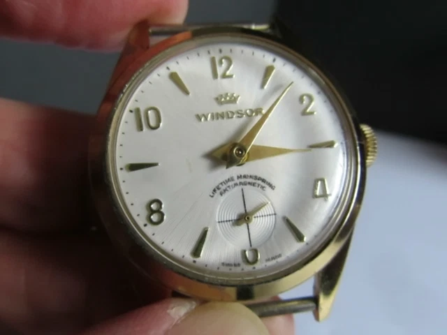 VINTAGE Windsor® Men's *VIDEO* Watch Anti-Magnetic 34mm Gold Tone Diamond Tooled