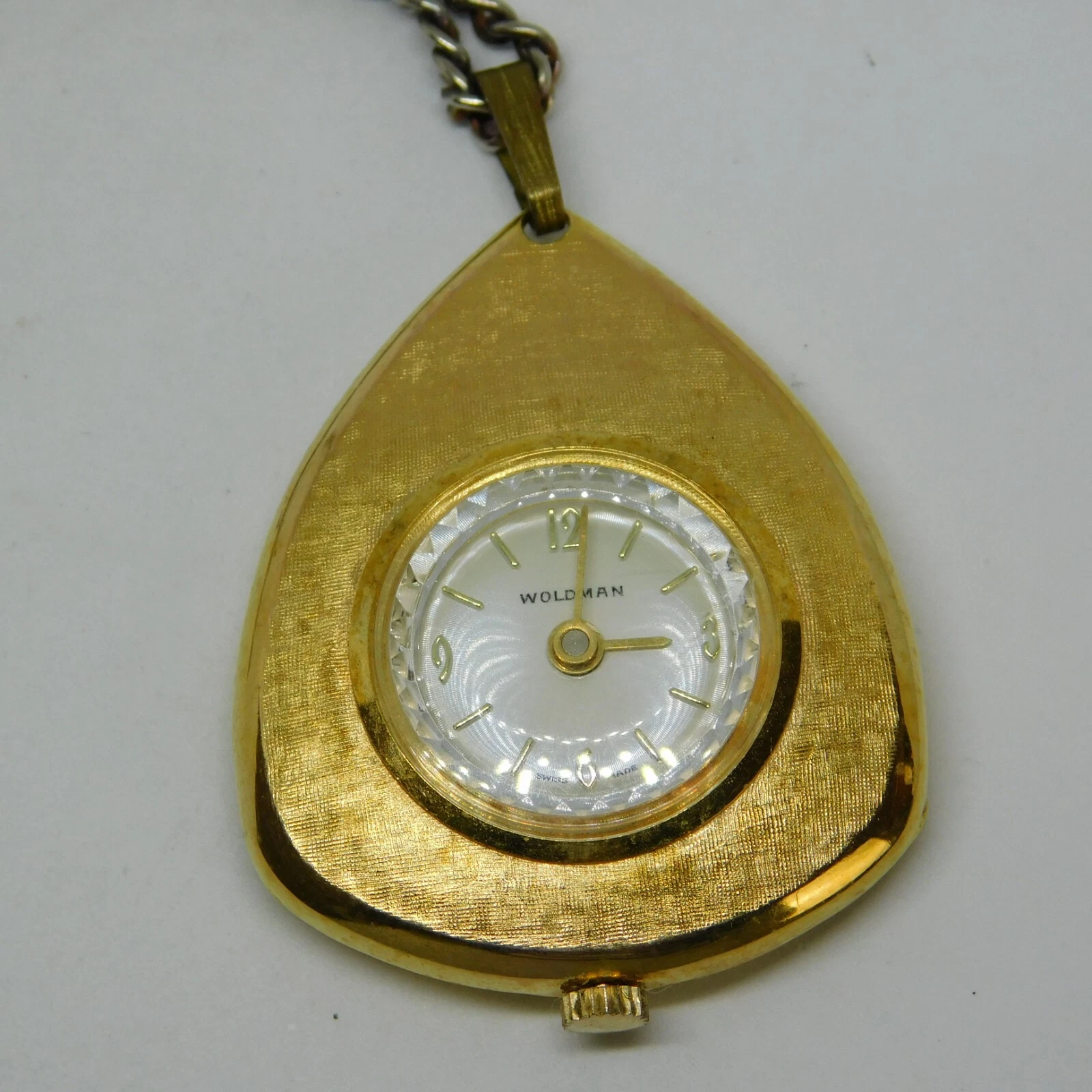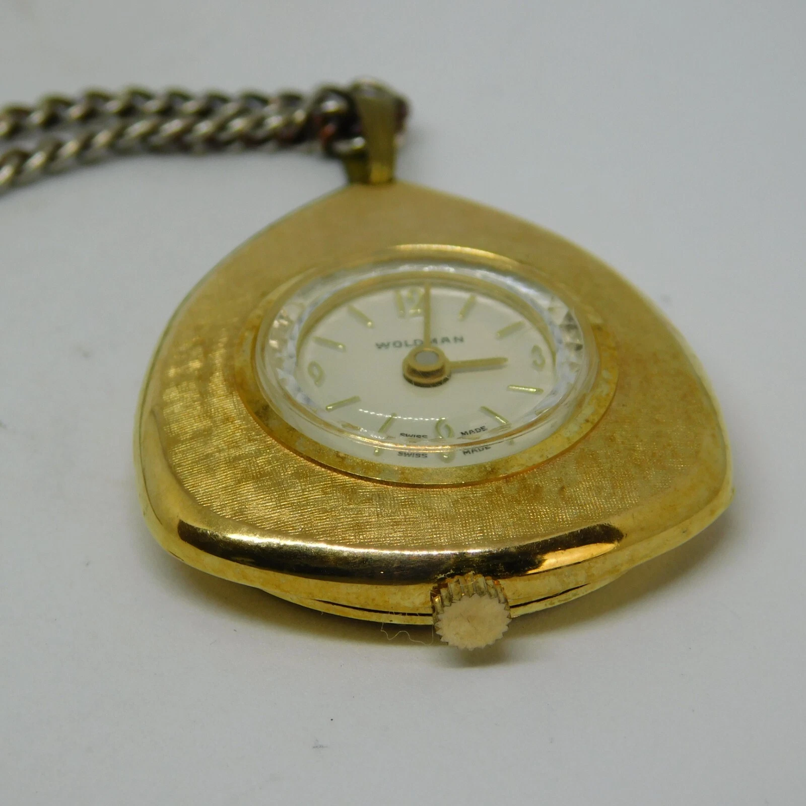 Vintage WOLDMAN Swiss Made Wind-up Analog Women's Pendant Watch on Chain