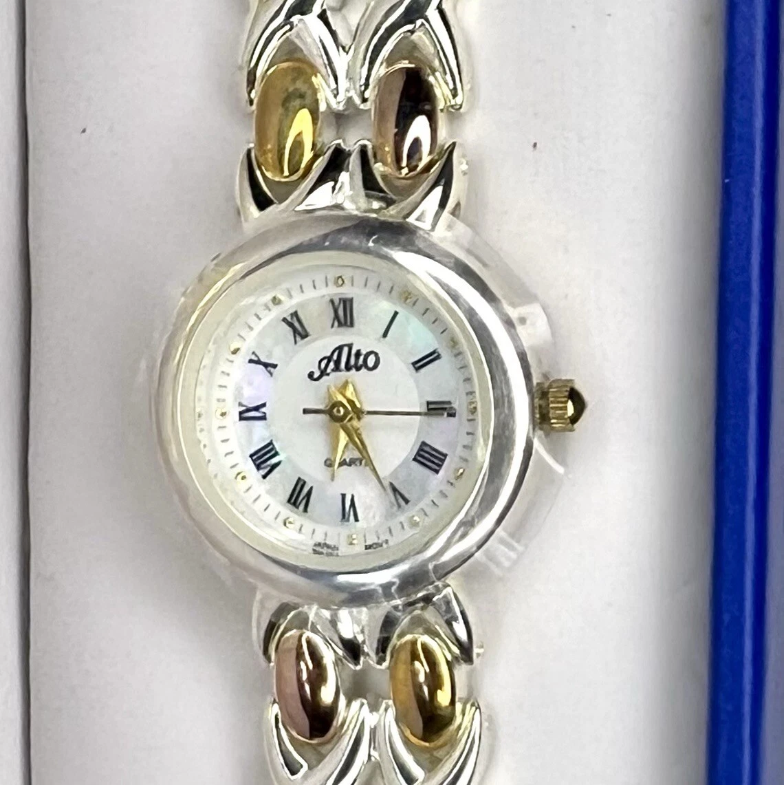 ALTO Quartz MOTHER Of PEARL Womens WATCH Gold Silver Tone Braided Band Orig Box