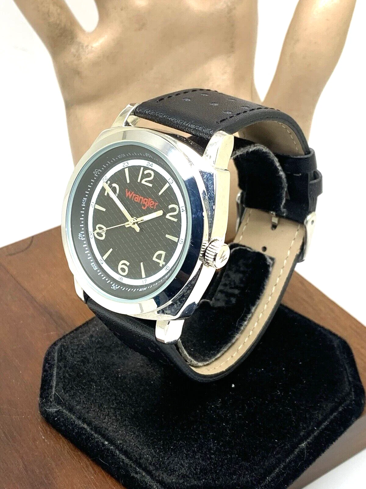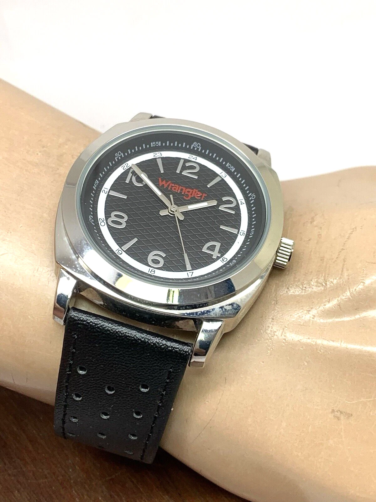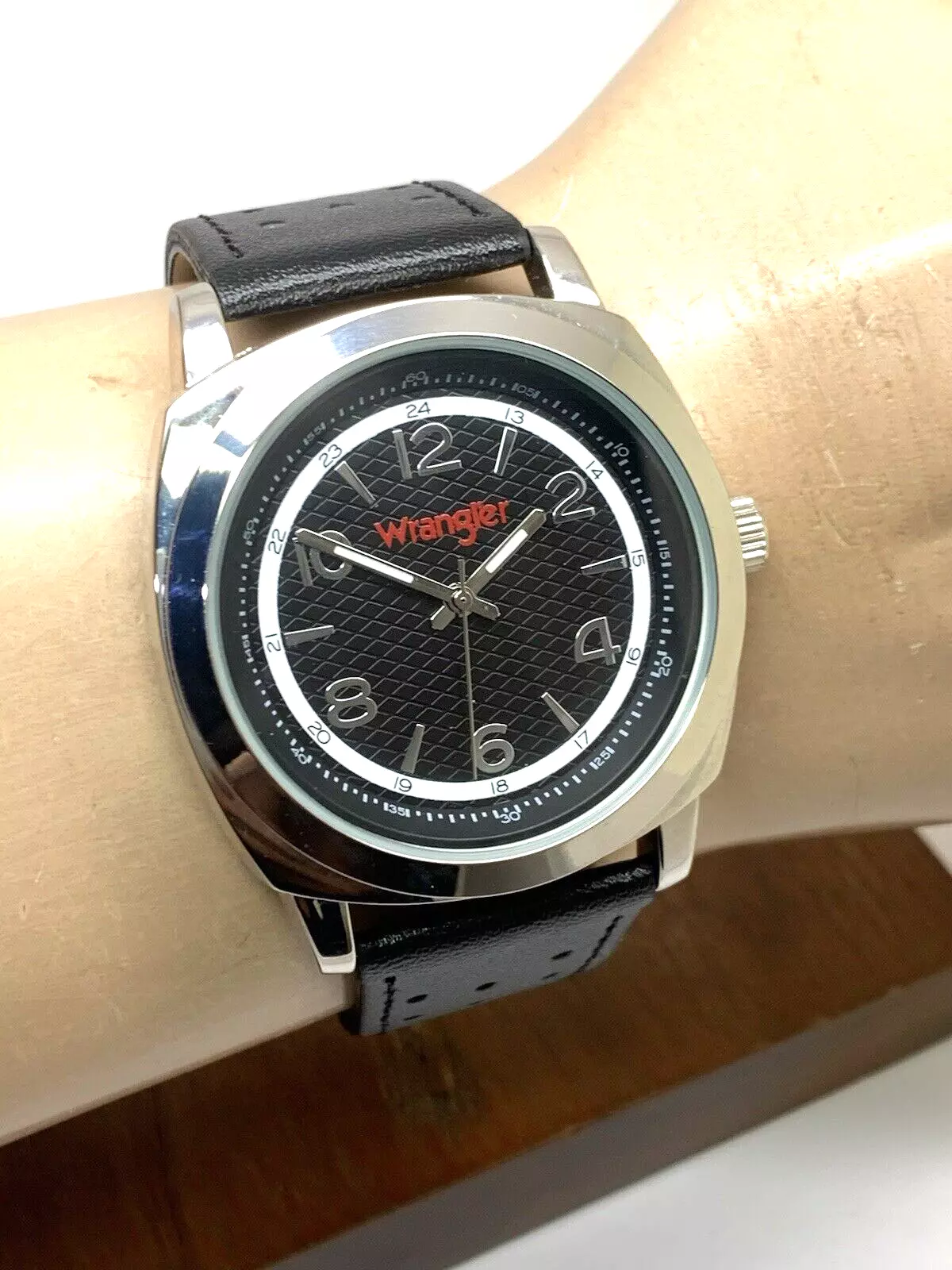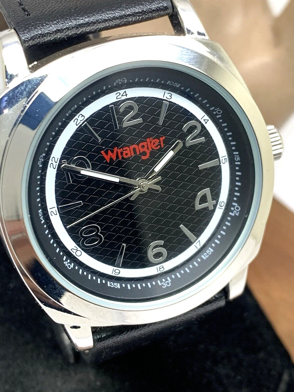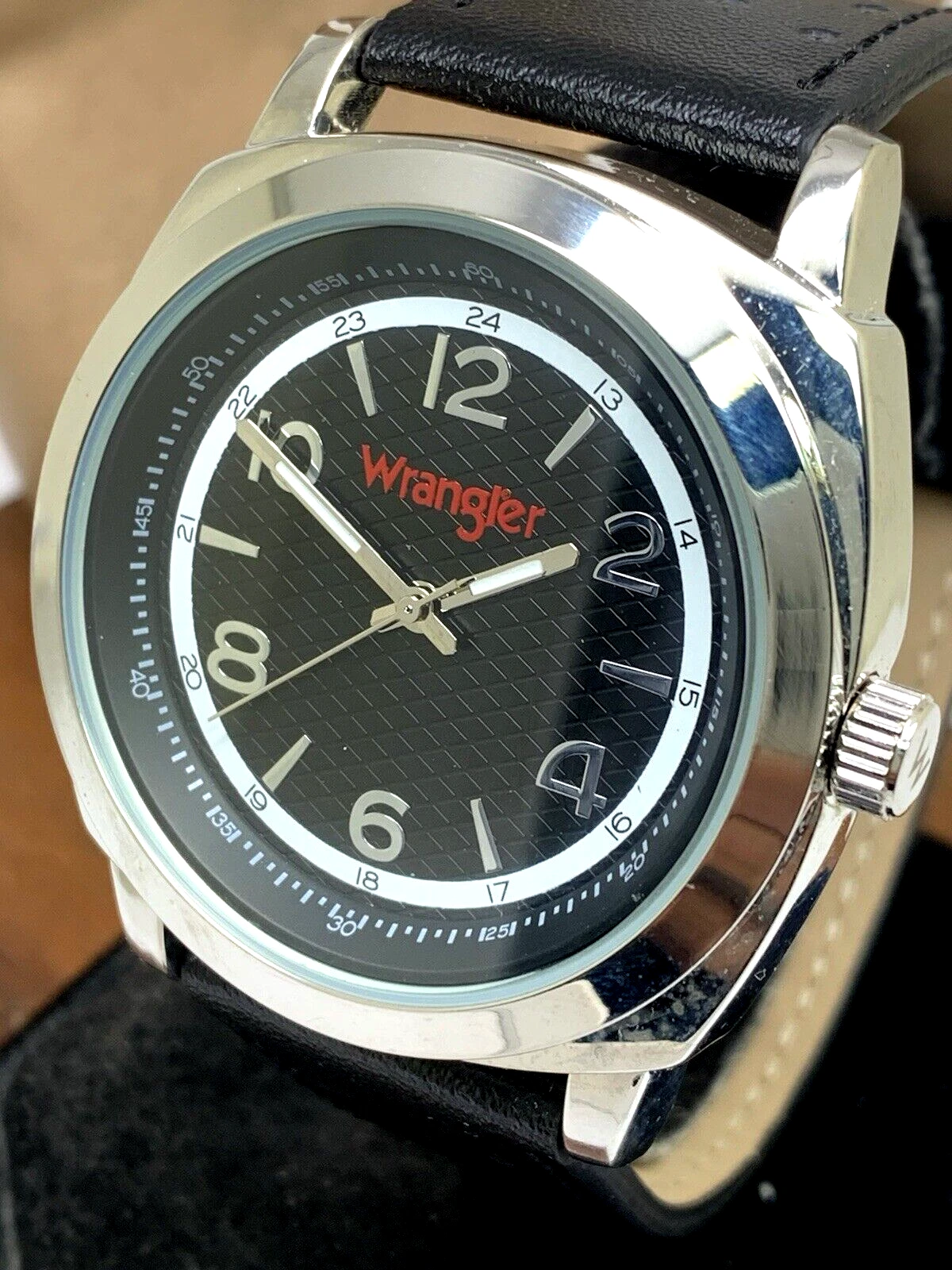 Wrangler Men's Watch WRT2501-1B Quartz Black Dial Leather Band 44mm